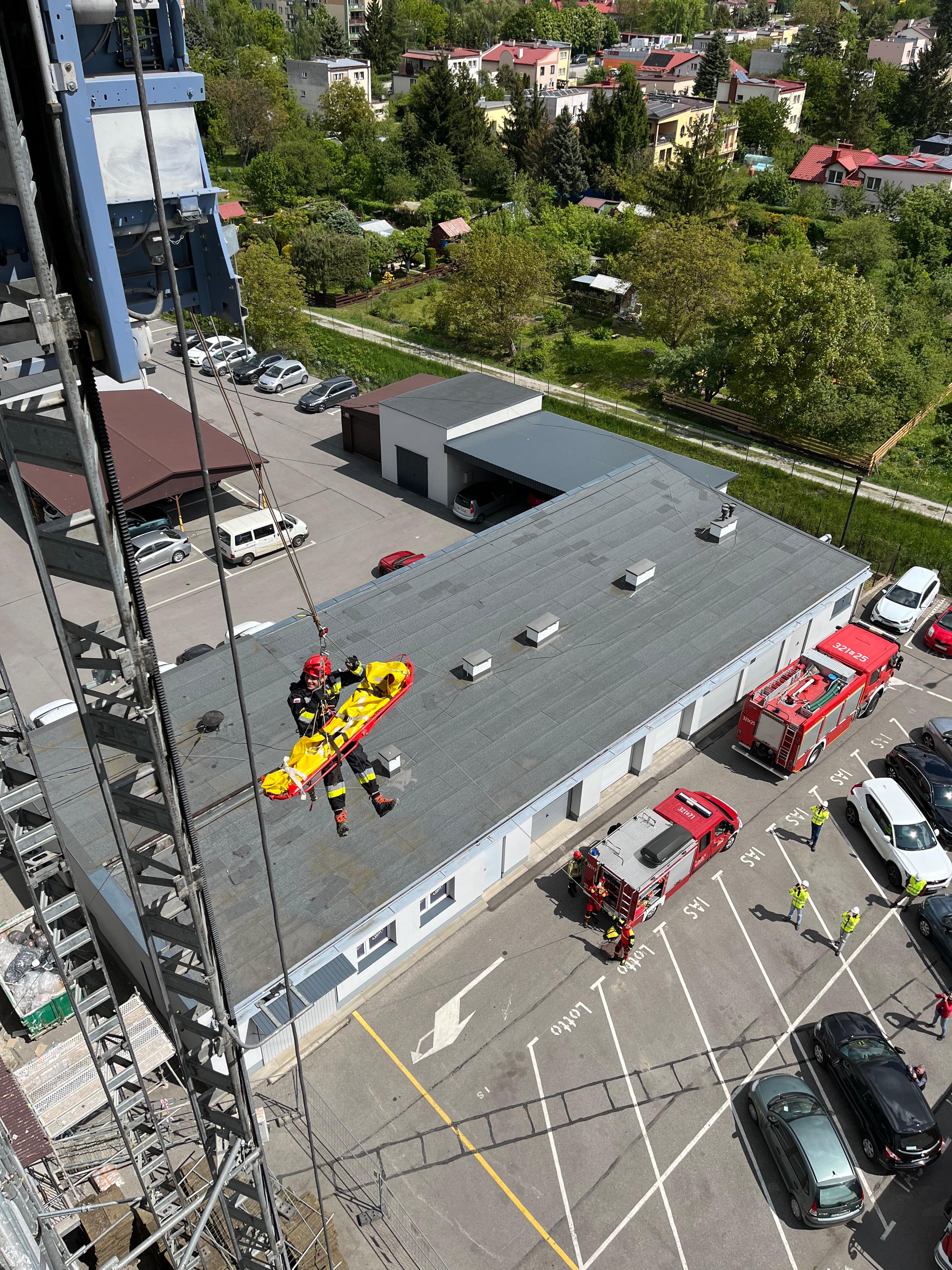 Celem ćwiczeń było doskonalenie umiejętności prowadzenia działań ratowniczych w trudno dostępnych miejscach oraz sprawdzenie współdziałania zespołu w sytuacji zagrożenia życia na dużej wysokości.