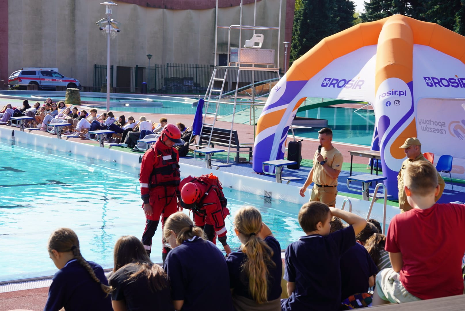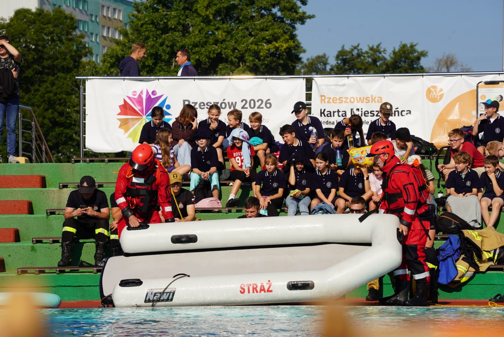 12 września funkcjonariusze Komendy Miejskiej Państwowej Straży Pożarnej w Rzeszowie przeprowadzili pokazy ratownictwa wodnego na Basenach Otwartych Rzeszowskiego Ośrodka Sportu i Rekreacji – ROSiR.