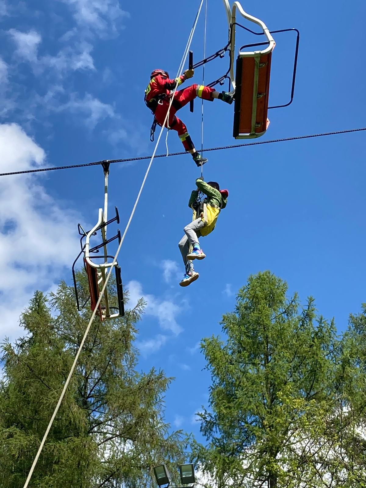 Dodatkowo dzisiejszy dzień jest bardzo intensywny dla ratowników wysokościowych z Rzeszowa, ponieważ również w Przemyślu realizują ewakuację osób z kolei linowej za pomocą technik alpinistycznych.