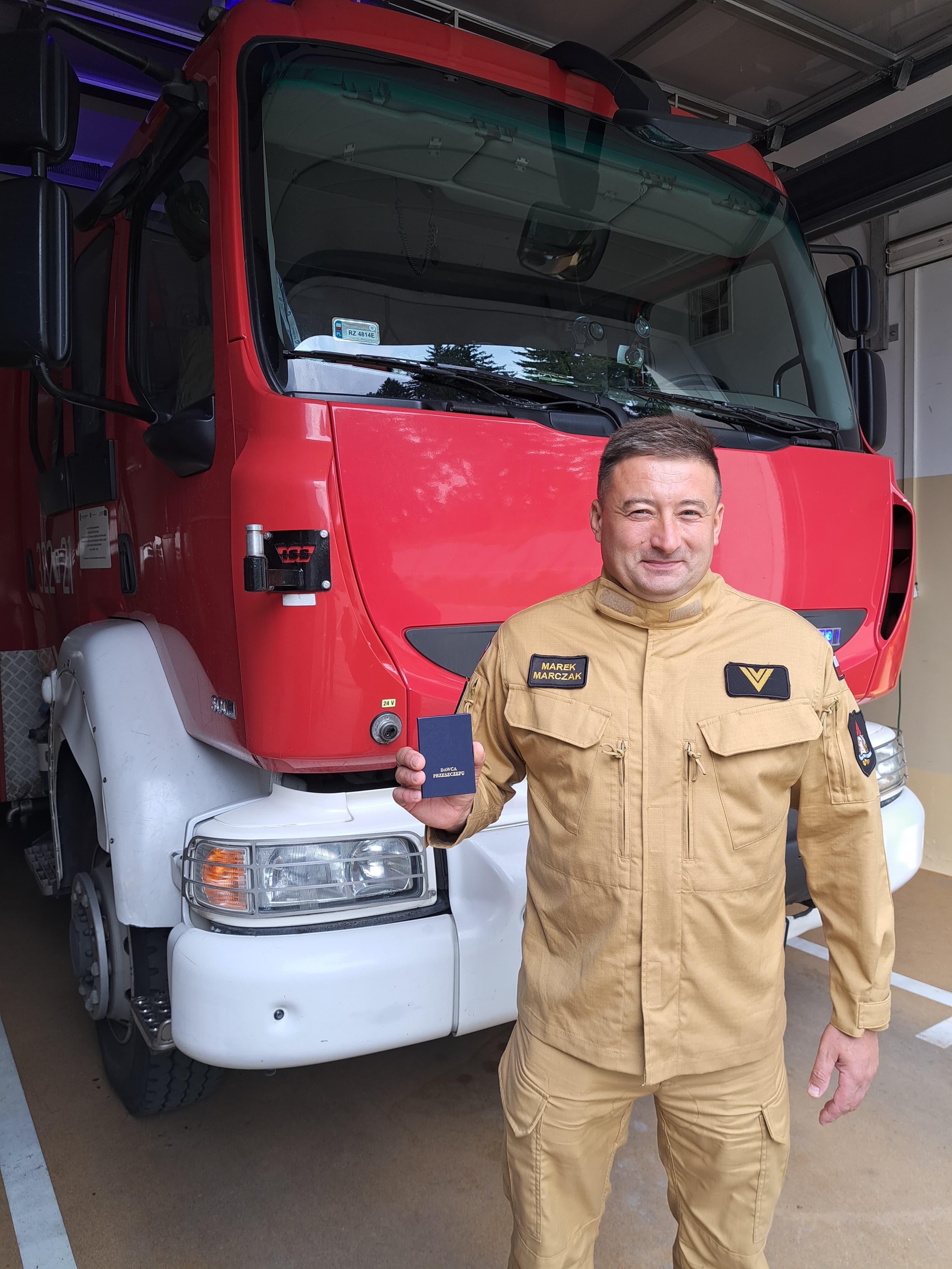 st. ogn. Marek Marczak to strażak z Jednostki Ratowniczo-Gaśniczej nr 2 w Rzeszowie. Zawsze chętny by pomagać innym i stawiać czoła trudnym wyzwaniom. Nasz strażak zarejestrował się jako dawca szpiku i komórek macierzystych w Fundacji DKMS 9 lat temu. W ostatnim czasie otrzymał informacje, że gdzieś na świecie jest osoba „brat bliźniak genetyczny”, której może uratować życie.