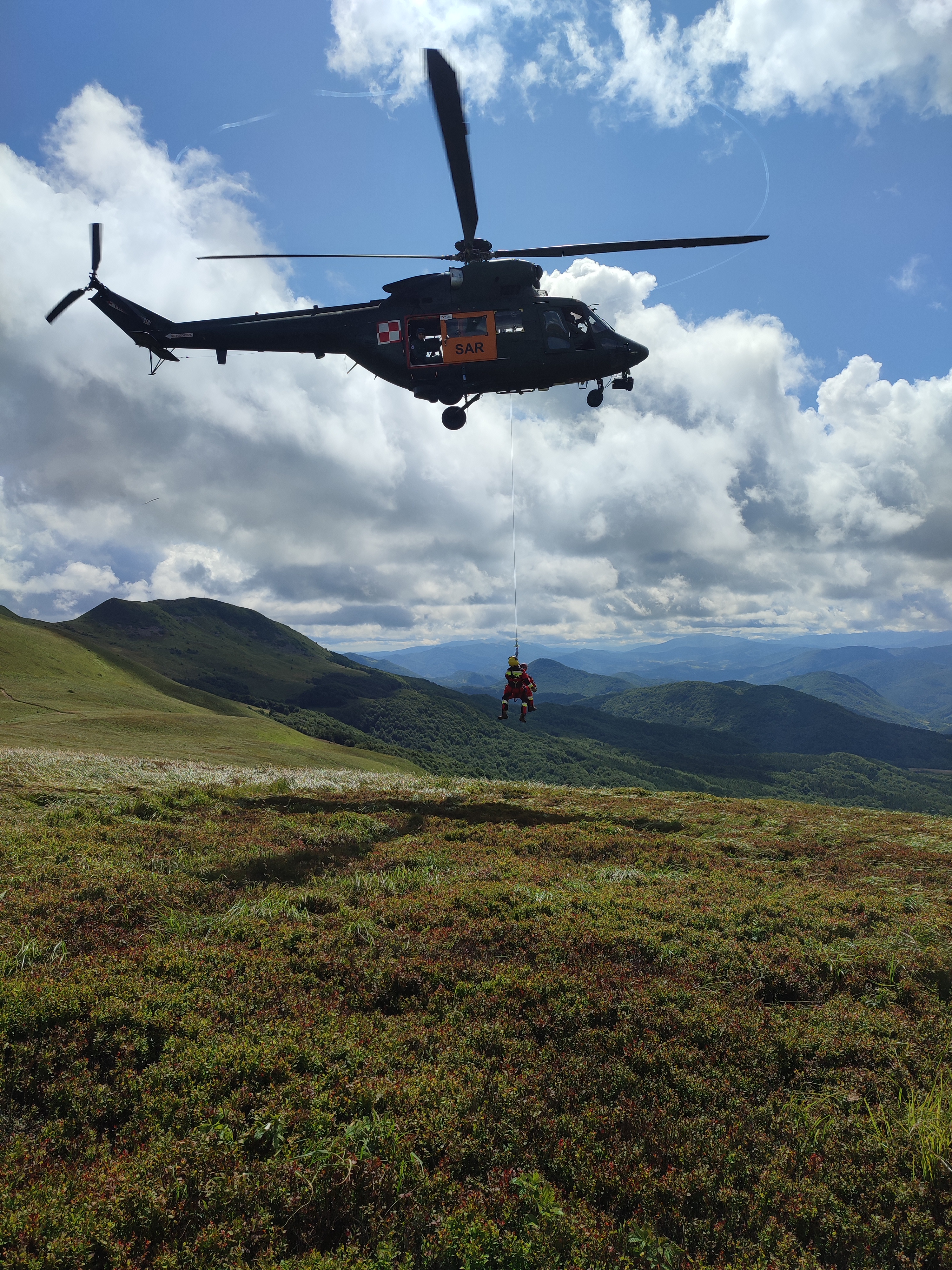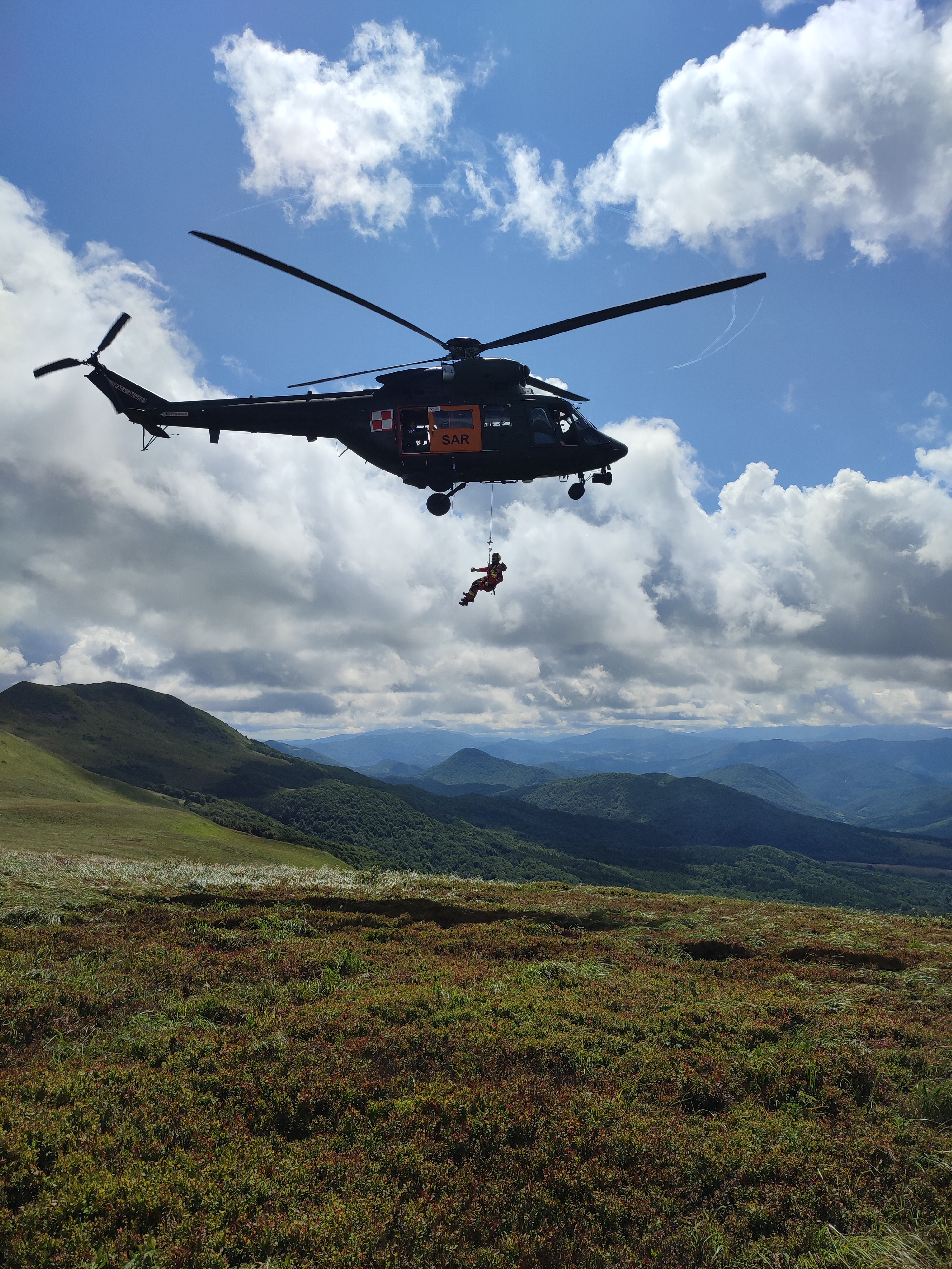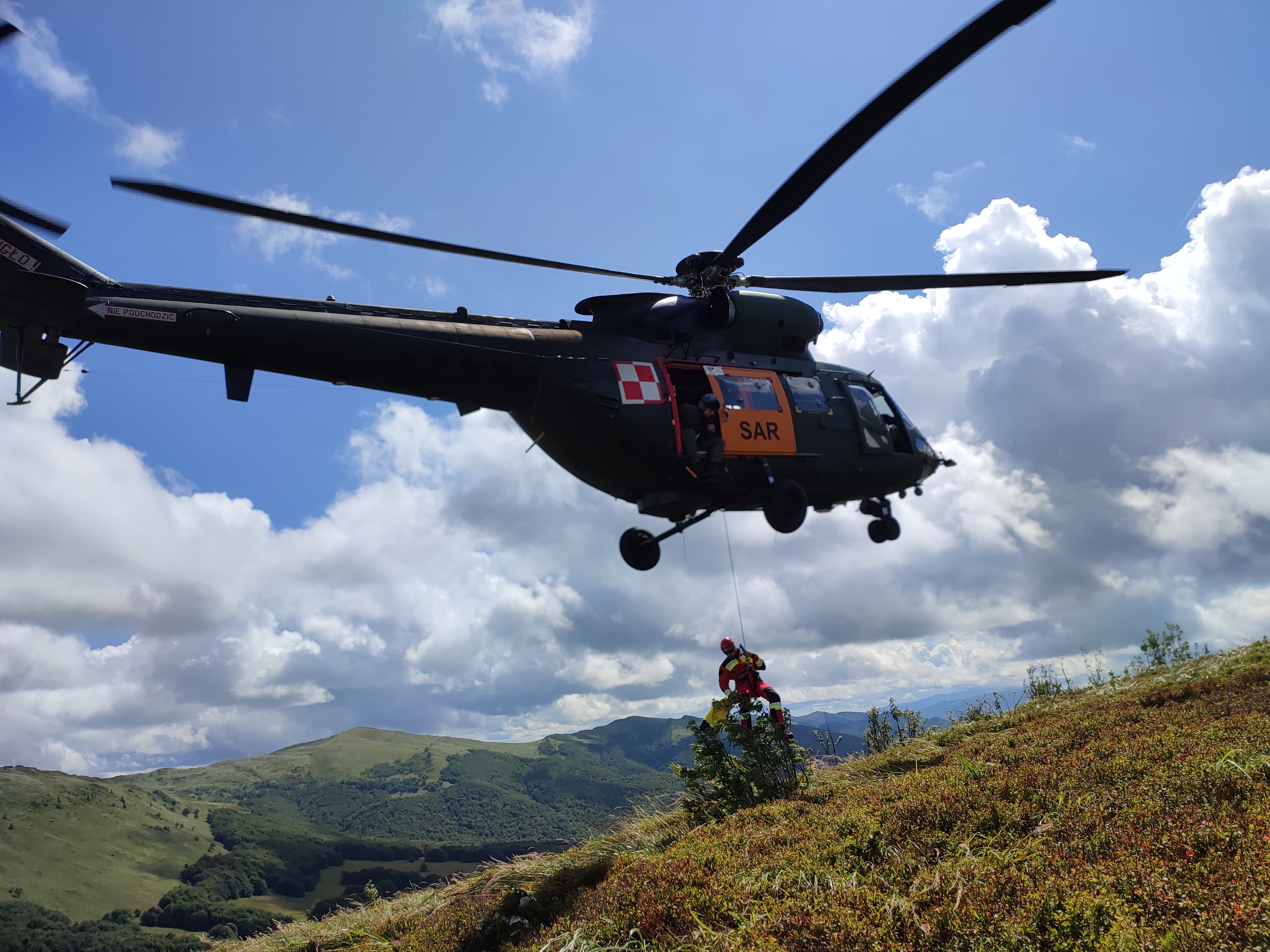 Kolejne zgrywanie Specjalistycznej Grupy Ratownictwa Wysokościowego „Rzeszów 1” z Lotniczym Zespołem Poszukiwawczo Ratowniczym nr 8 miało miejsce 2 sierpnia 2023 roku. Zajęcia odbywały się z użyciem śmigłowca W-3 „Sokół” na terenie IV Wydziału Lotniczego Biura Lotnictwa Komendy Głównej SG w Huwnikach oraz w Bieszczadach. Wzięło w nich udział 3 ratowników z SGRW „Rzeszów 1”, posiadających dopuszczenia P1 oraz P2 . Głównym celem zgrywania było doskonalenie technik ratowniczych z wykorzystaniem dźwigu pokładowego oraz technik linowych stosowanych do ewakuacji poszkodowanych z miejsc trudno dostępnych. Dziękujemy zespołowi za wzorową współpracę i do następnego...