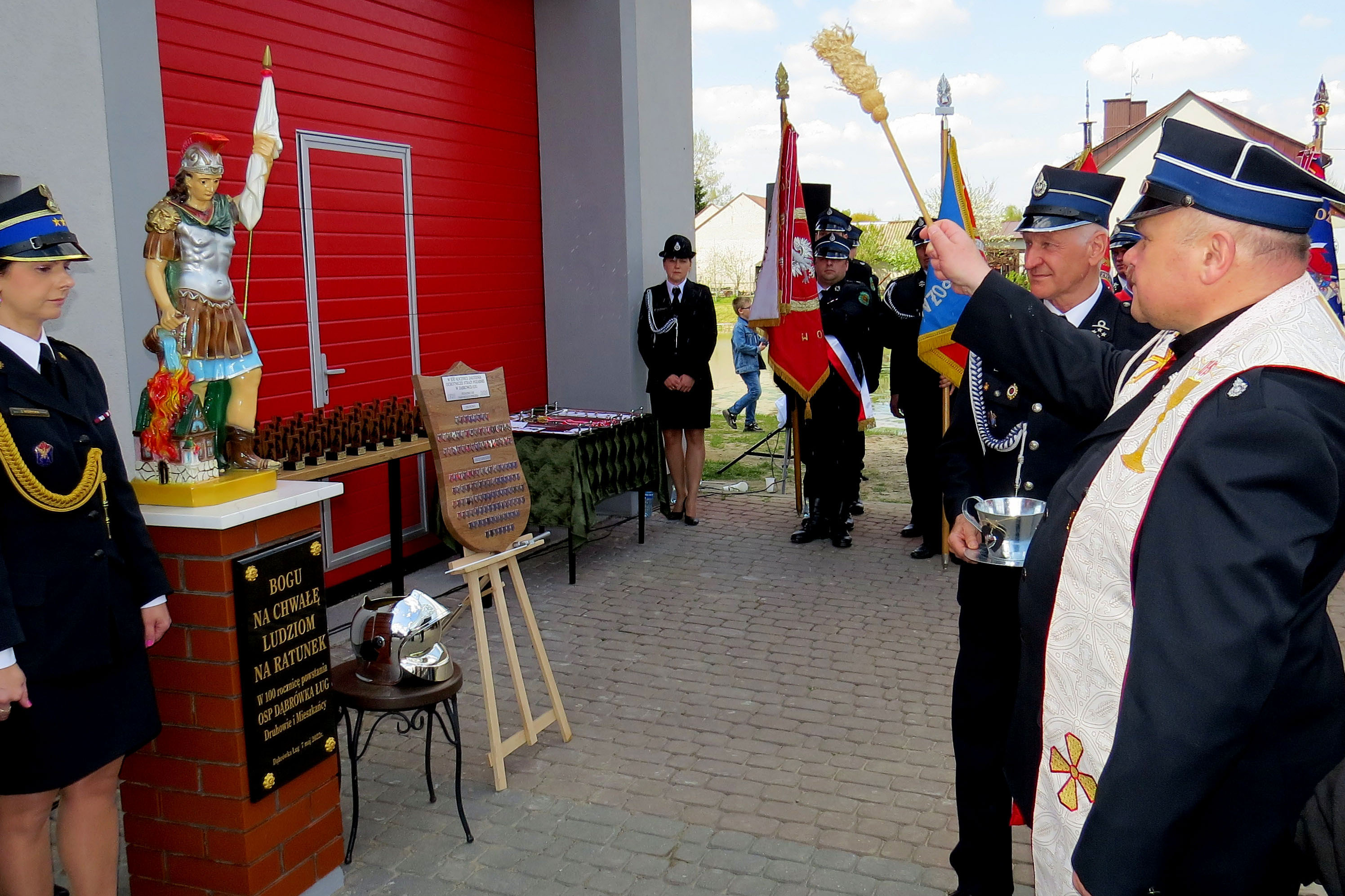 Podczas uroczystego apelu nastąpiło również odsłonięcie i poświęcenie Figury św. Floriana, której darczyńcami byli mieszkańcy i druhowie Dąbrówki Ług.