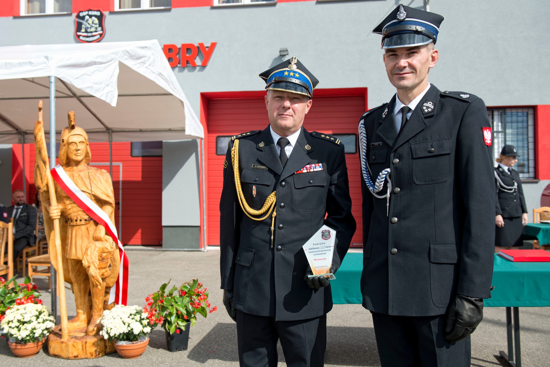 Ważnym momentem było przekazanie jednostce OSP w Suchożebrach nowego sztandaru, ufundowanego przez Państwa Monikę i Wiesława Sarnowskich, a następnie odznaczenie jednostki Złotym Znakiem Związku Ochotniczych Straży Pożarnych Rzeczypospolitej Polskiej za 100 lat działalności. Jest to najważniejsze odznaczenie Związku OSP RP.