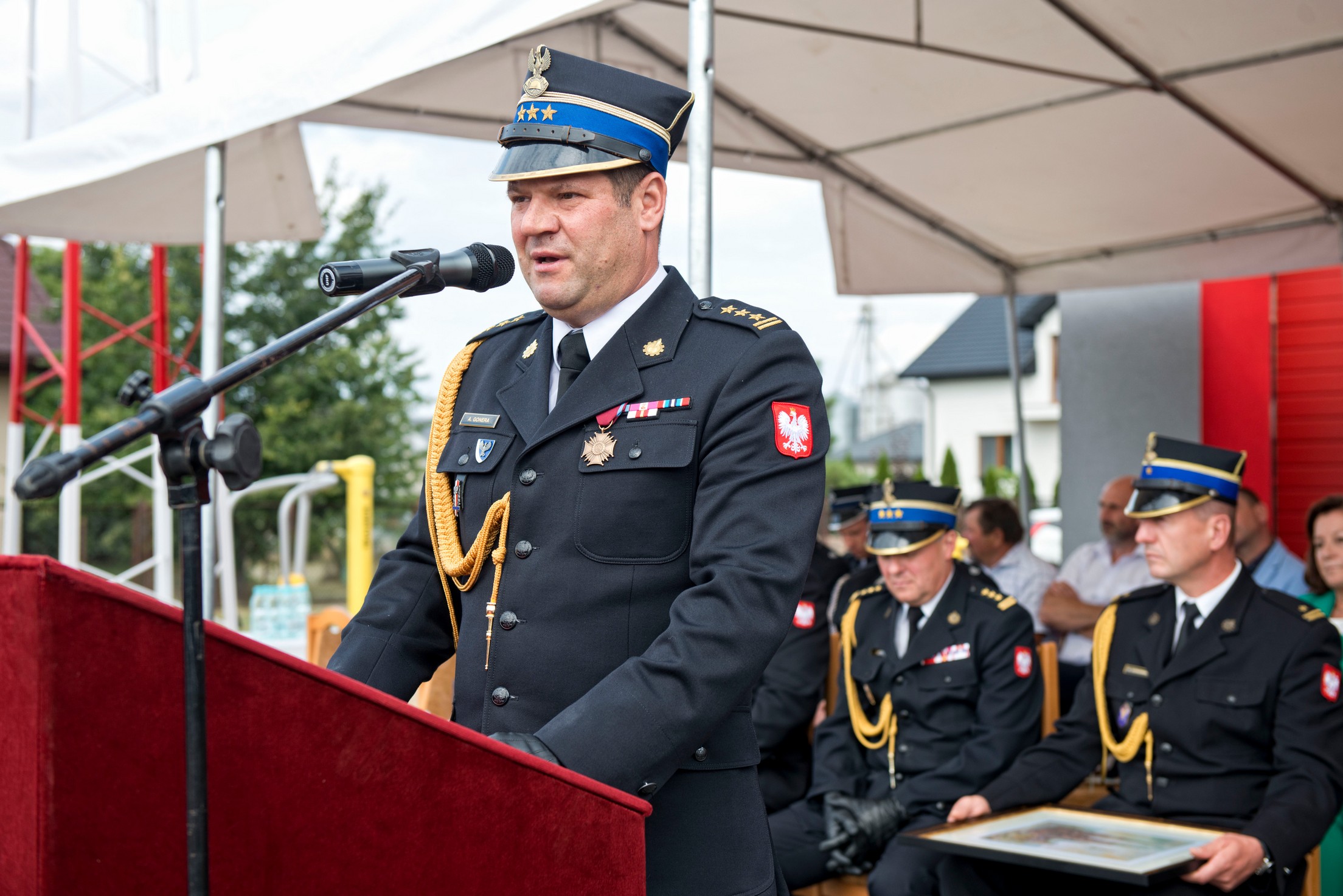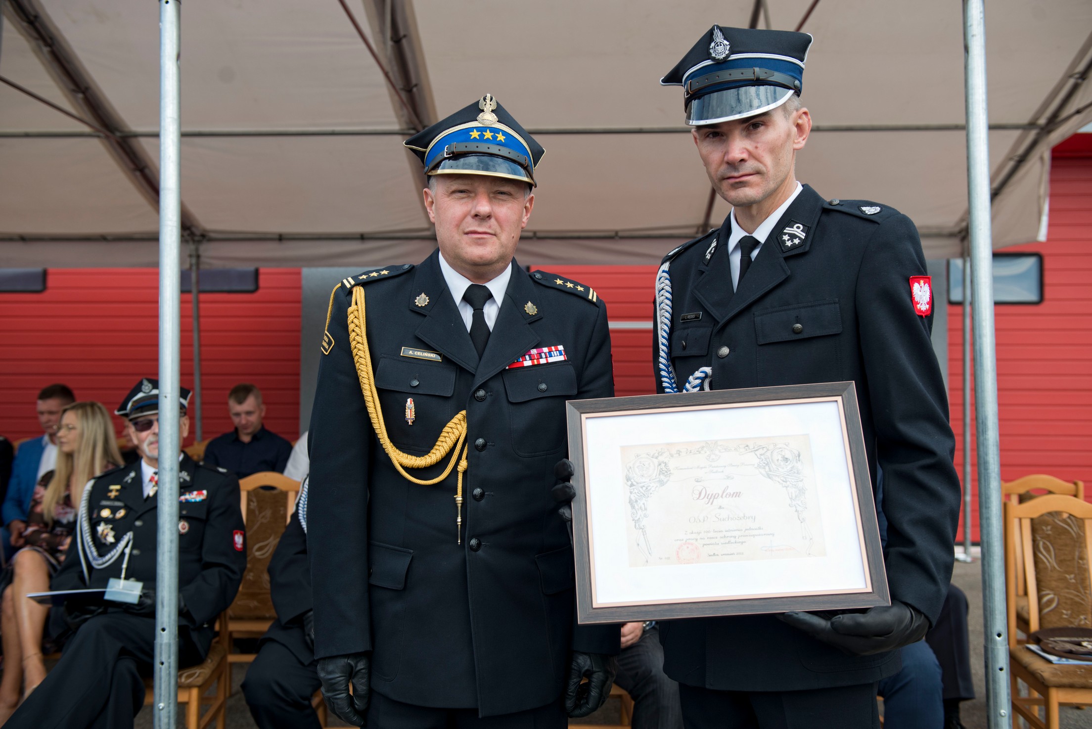 W uroczystości wzięli udział m. in.: st. bryg. Artur Gonera, Zastępca Mazowieckiego Komendanta Wojewódzkiego PSP, st. bryg. Andrzej Celiński, Komendant Miejski PSP w Siedlcach, druh Wojciech Wicherski, członek Prezydium Zarządu Oddziału Wojewódzkiego Związku Ochotniczych Straży Pożarnych Województwa Mazowieckiego, druh Wojciech Grzegorczyk, Prezes Zarządu Oddziału Powiatowego Związku OSP RP w Siedlcach, Dariusz Stopa, dyrektor Delegatury Urzędu Marszałkowskiego w Siedlcach, Małgorzata Sierakowska-Stolarzewska, radna powiatu siedleckiego.