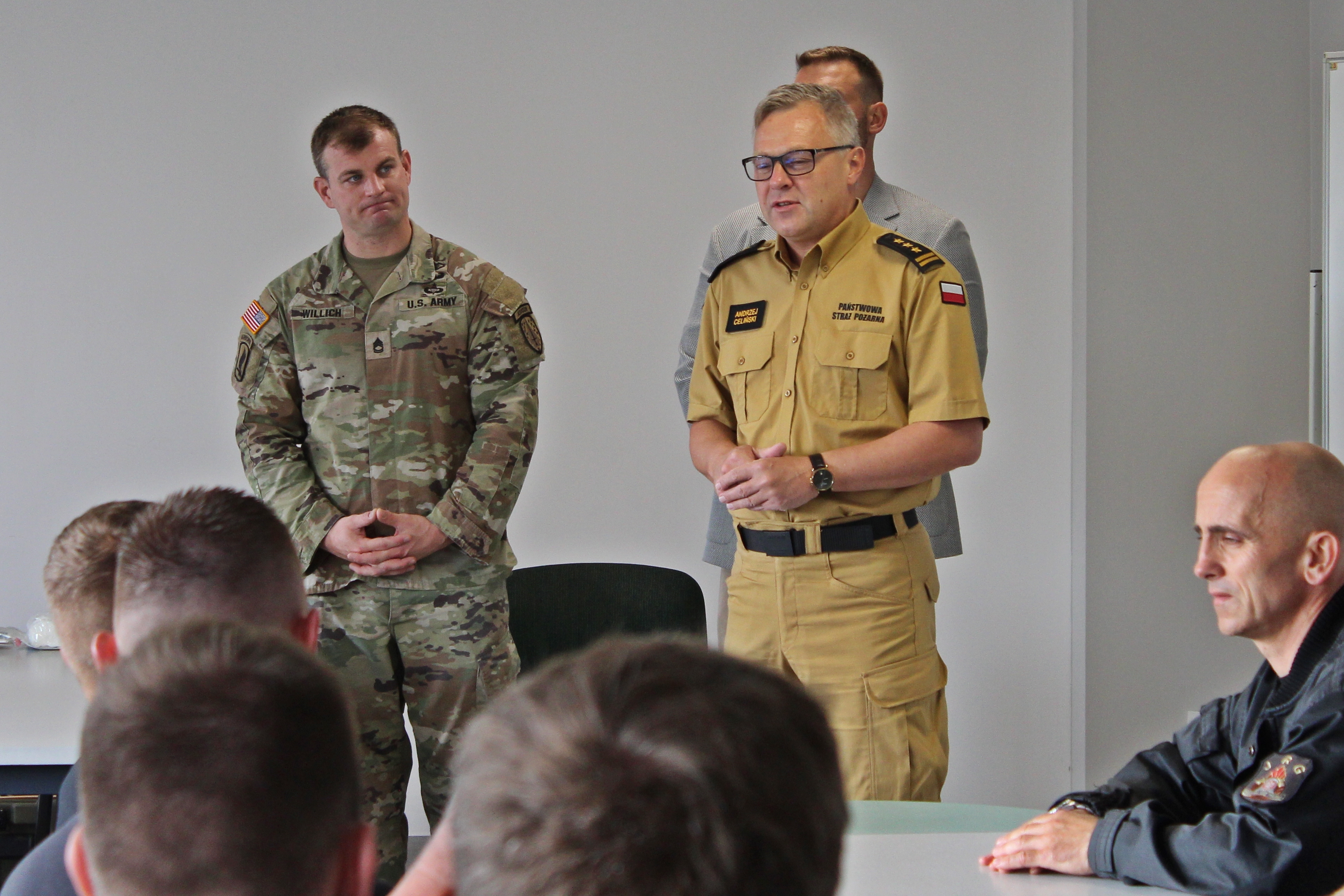 Stacjonujący w Siedlcach amerykańscy żołnierze gościli 2 sierpnia 2023 roku w Komendzie Miejskiej Państwowej Straży Pożarnej w Siedlcach.
