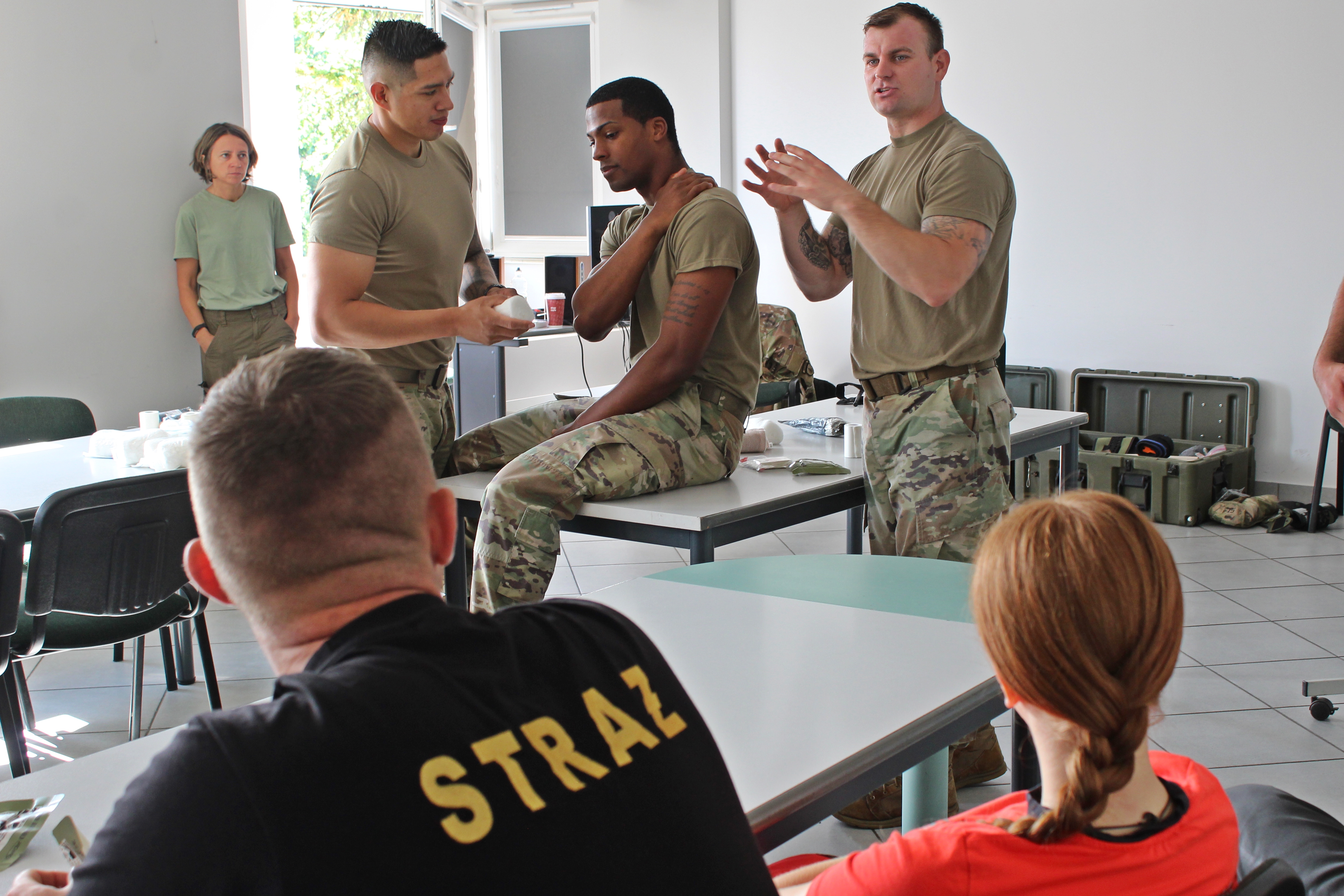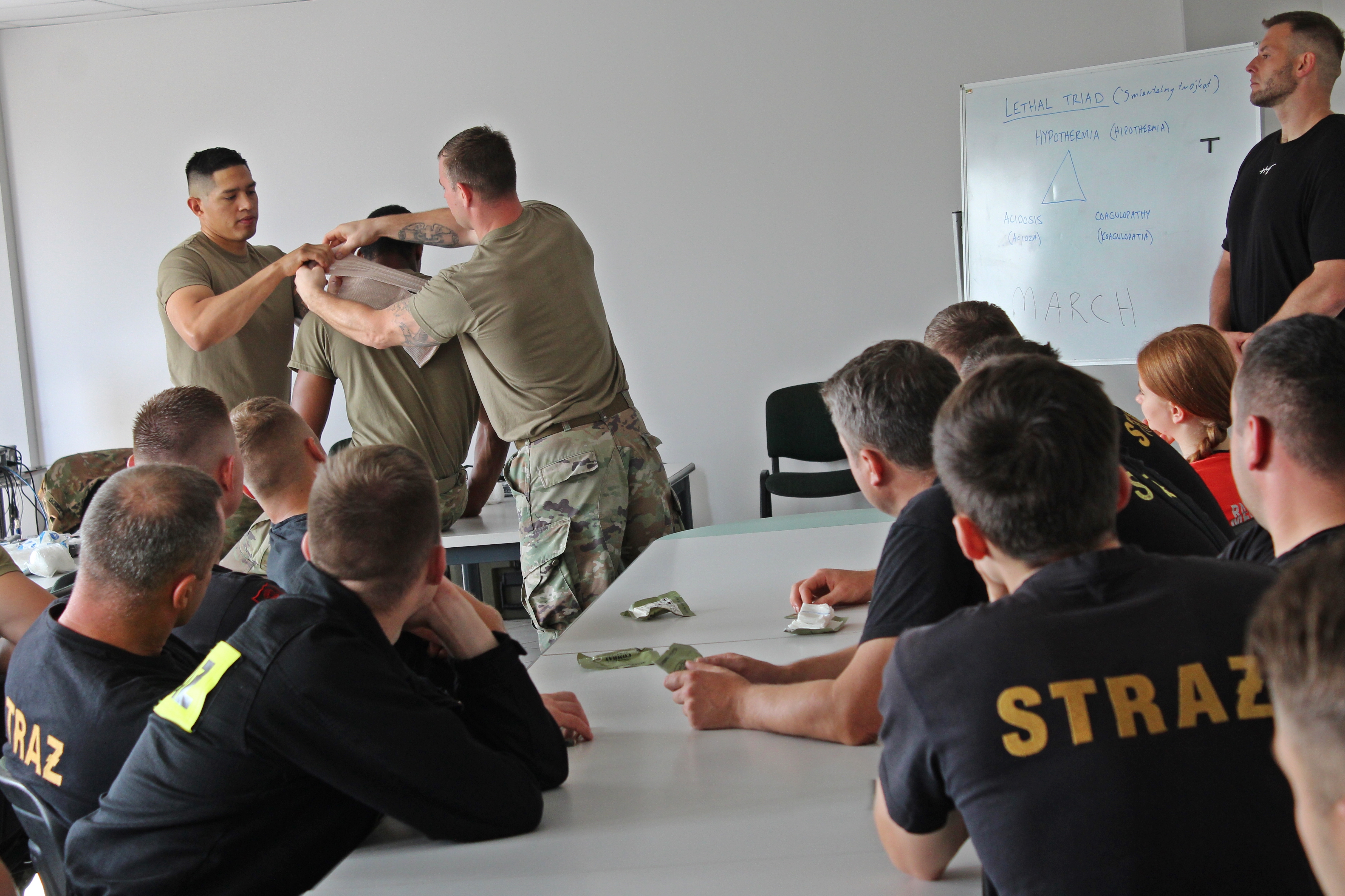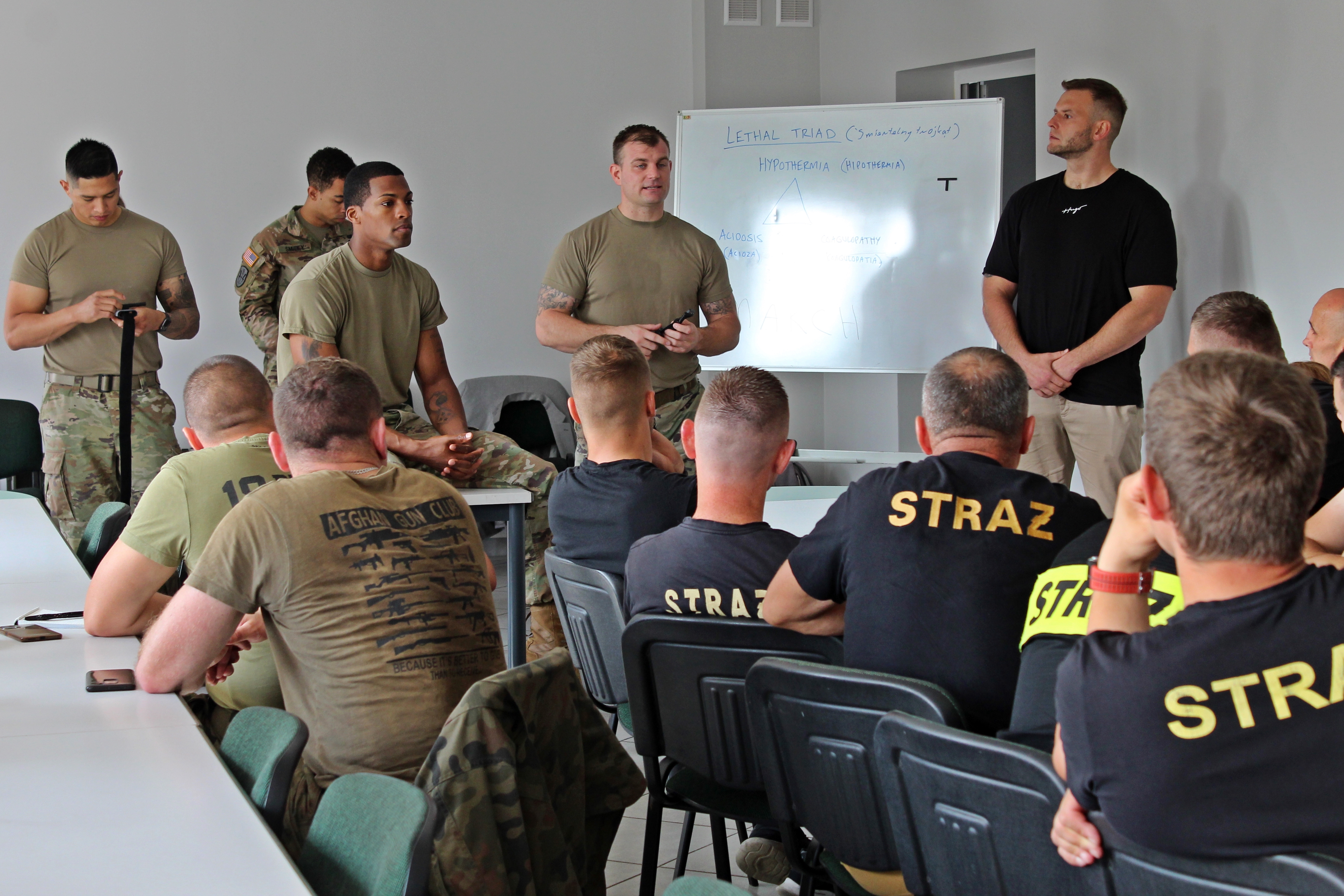 Głównym tematem spotkania były najczęściej występujące urazy pola walki oraz ratownictwo taktyczne, nastawione w szczególności na tamowanie krwawienia, zaopatrywanie ran, udrażnianie dróg oddechowych, opiekę i transport osoby poszkodowanej. Z uwagi na to, iż na polu walki zdarzenia zachodzą niespodziewanie, system ratownictwa taktycznego skupia się na szybkim i skutecznym udzieleniu pomocy osobie poszkodowanej, a następnie ewakuowaniu jej z miejsca zagrożenia. Przedstawiony został również asortyment (m.in. stazy taktyczne czy opatrunki uciskowe) przeznaczony do udzielania doraźnej pomocy na polach bitwy, w szpitalach polowych ale także podczas wypadków masowych i katastrof. Najważniejszym zadaniem sprzętu taktycznego jest tamowanie krwi, dzięki czemu poszkodowani zyskują cenny czas do momentu otrzymania profesjonalnej pomocy medycznej.