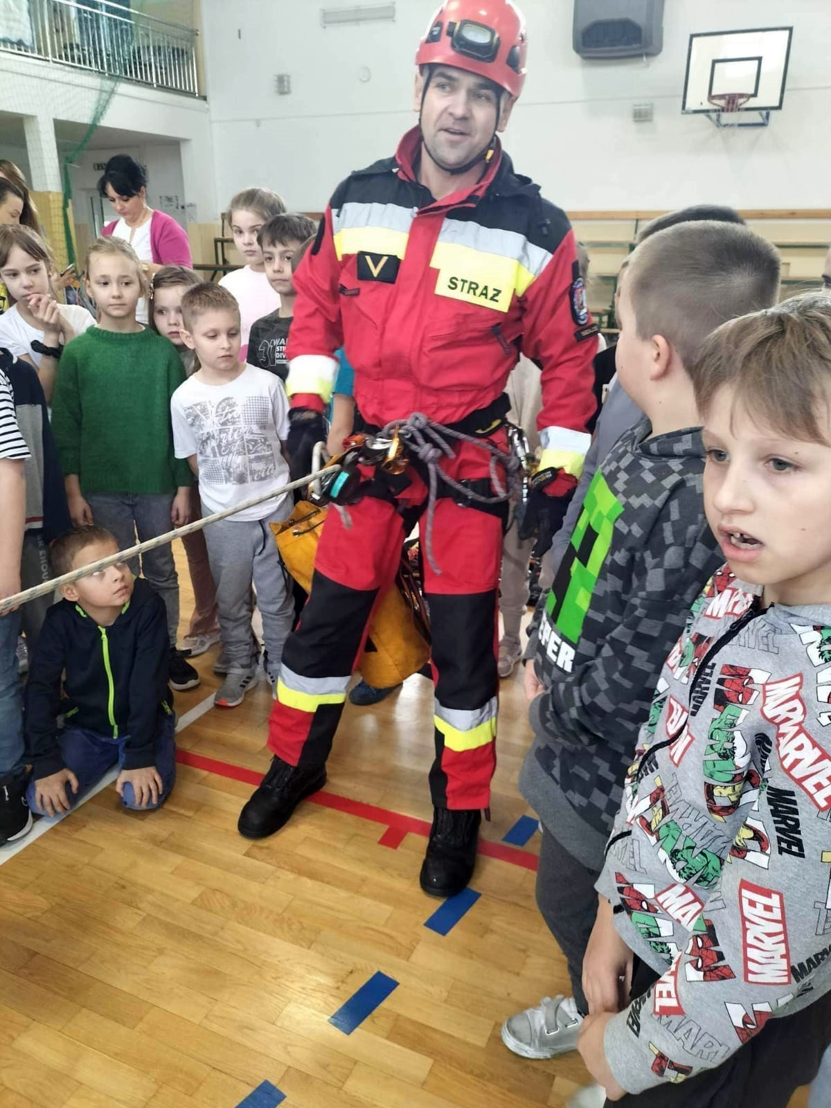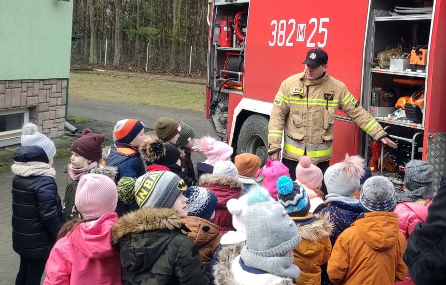 Strażacy omówili zagrożenia na jakie mogą być narażone dzieci podczas zabawy w okresie zimowego wypoczynku, przypomnieli podstawowe zasady bezpieczeństwa oraz zasady pierwszej pomocy, a także zaprezentowali sprzęt wykorzystywany podczas działań ratowniczo-gaśniczych.