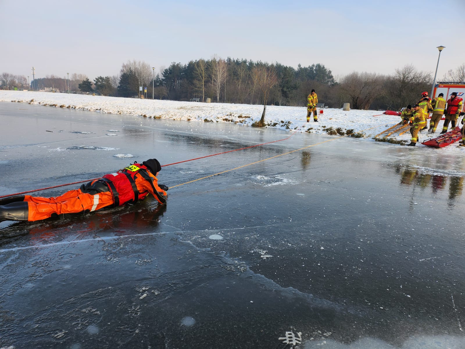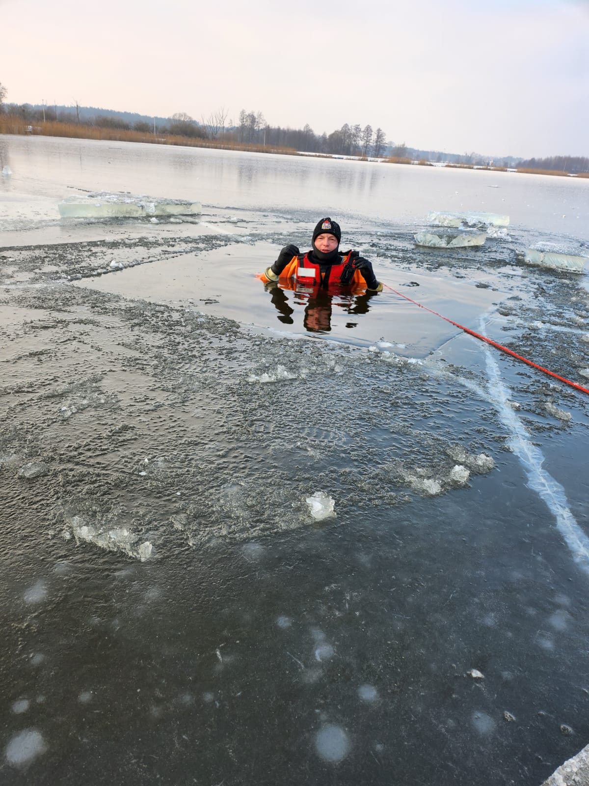 - Pamiętaj! Najważniejsze jest własne bezpieczeństwo. Jeśli lód załamał się pod osobą poszkodowaną, może załamać się również pod Tobą. Dlatego tak ważne jest wezwanie pomocy profesjonalistów. Ratownik bez odpowiedniego zabezpieczenia może przebywać w zimnej wodzie krótko. Po 3 minutach dochodzi do wyziębienia organizmu.