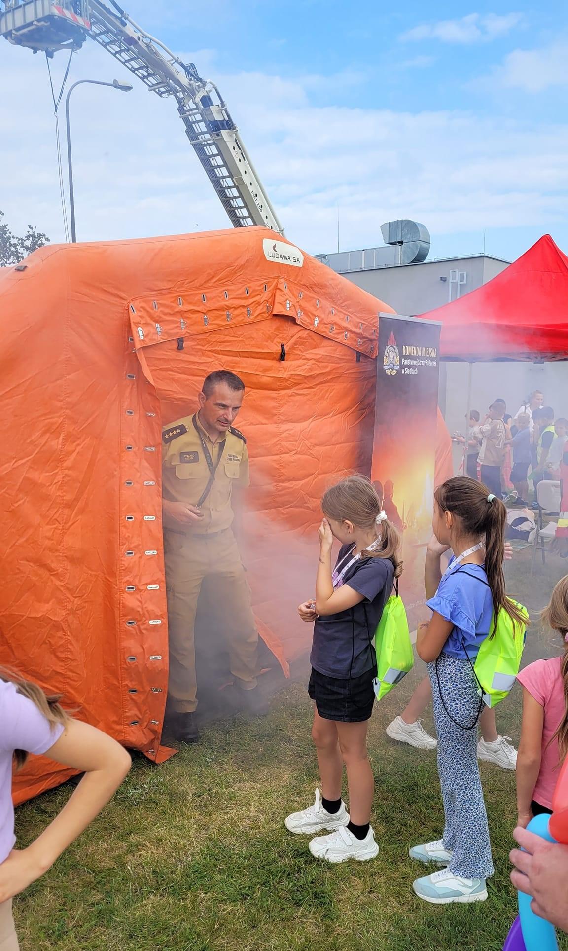 Na pikniku zaprezentowano zawód strażaka, umundurowanie oraz sprzęt strażacki wykorzystywany w działaniach ratowniczo-gaśniczych. Dzieci mogły podszkolić swoje umiejętności z zakresu udzielania pierwszej pomocy. Najodważniejsi mieli okazje wspinać się na samodzielnie ułożoną konstrukcje ze skrzynek w asekuracji specjalistycznego sprzętu wysokościowego. Natomiast ciekawym doświadczeniem okazał się namiot, w którym dzieci zapoznały się z zasadami poruszania się w zadymionym pomieszczeniu, gdzie występowały warunki symulowanego pożaru poprzez zadymiarkę, bezpieczne dla uczestników. Symulacja taka dała możliwość wyobrażenia sobie, jak ograniczoną widoczność mają strażacy, pracujący przy tego typu zdarzeniach. Jak zawsze dużym zainteresowaniem cieszyło się stanowisko z użyciem strumienia wody, gdzie trzeba było trafiać do celu.