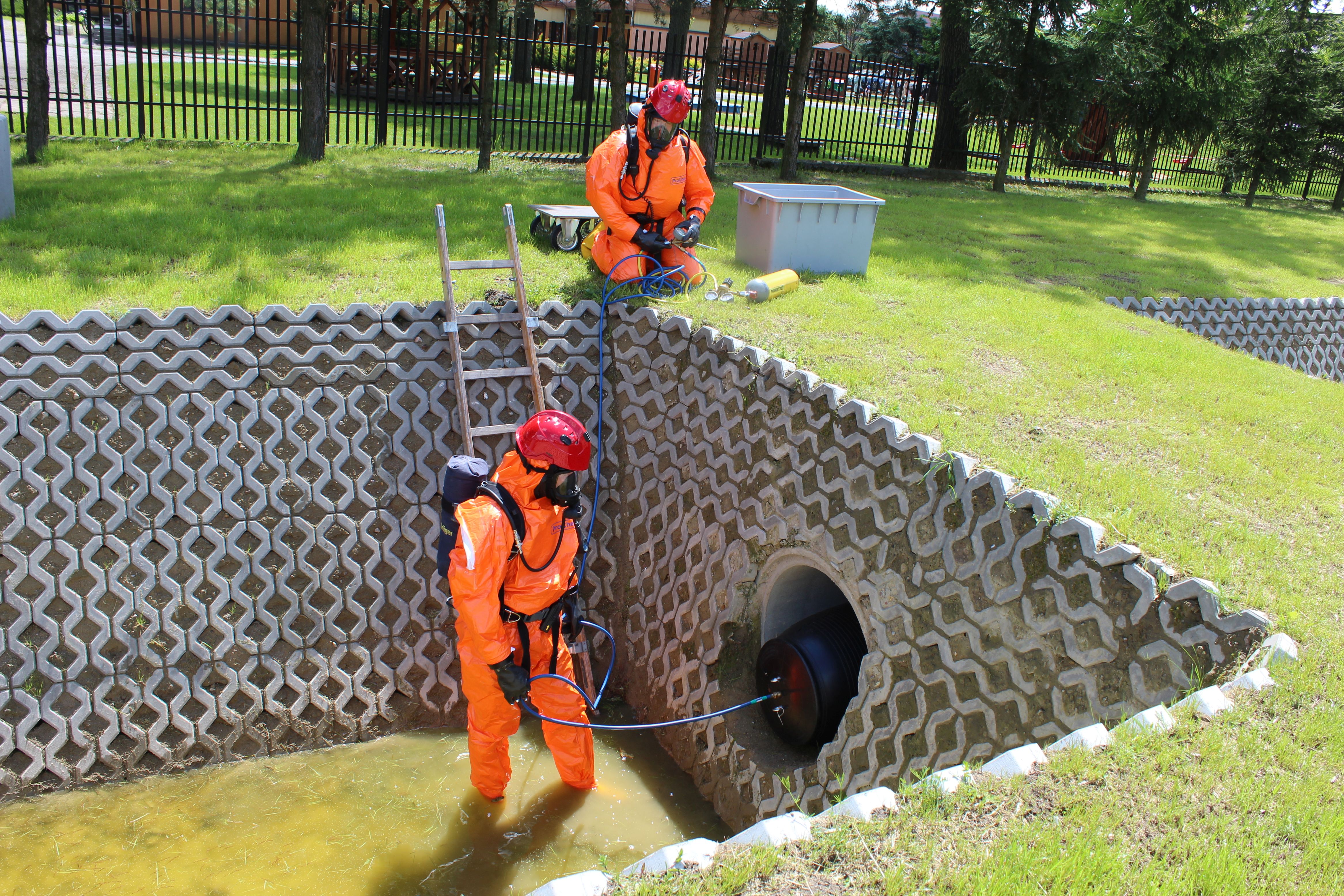 Ponadto ograniczone zostało rozprzestrzenianie się kwasu solnego na zbiorniku wodnym poprzez uszczelnienie przepustu między zbiornikami przy pomocy korka pneumatycznego.