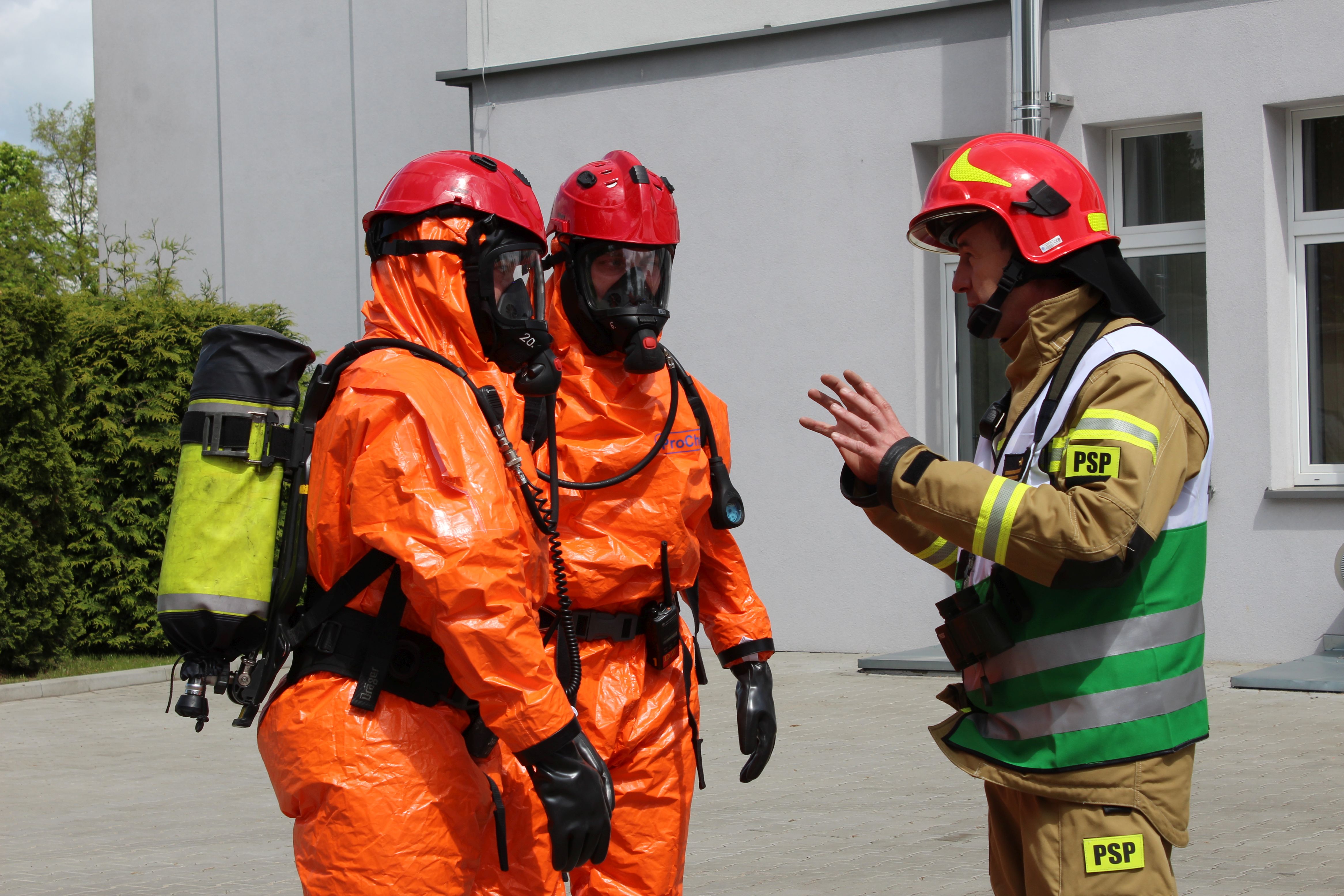 Zadaniem strażaków było wyznaczenie strefy gorącej oraz miejsca wejścia i wyjścia ze strefy; wyznaczenie miejsca dekontaminacji; wyznaczenie roty asekuracyjnej; bieżący monitoring strefy zagrożenia oraz intensywności wycieku; monitoring czasu przebywania ratowników w strefie zagrożenia.