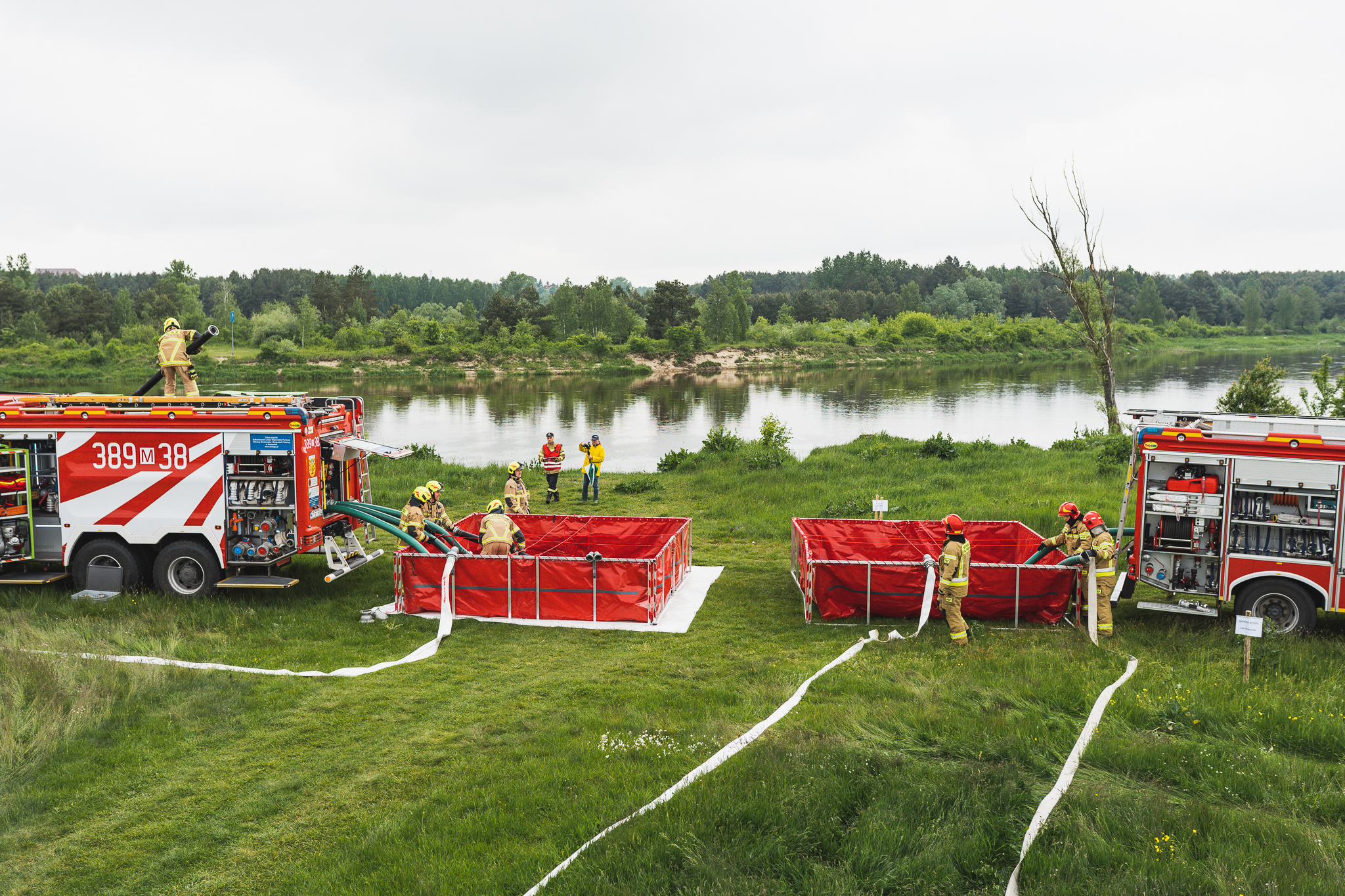Głównym założeniem ćwiczeń było dostarczenie około 5500 litrów wody na minutę na odległość około 500 metrów.