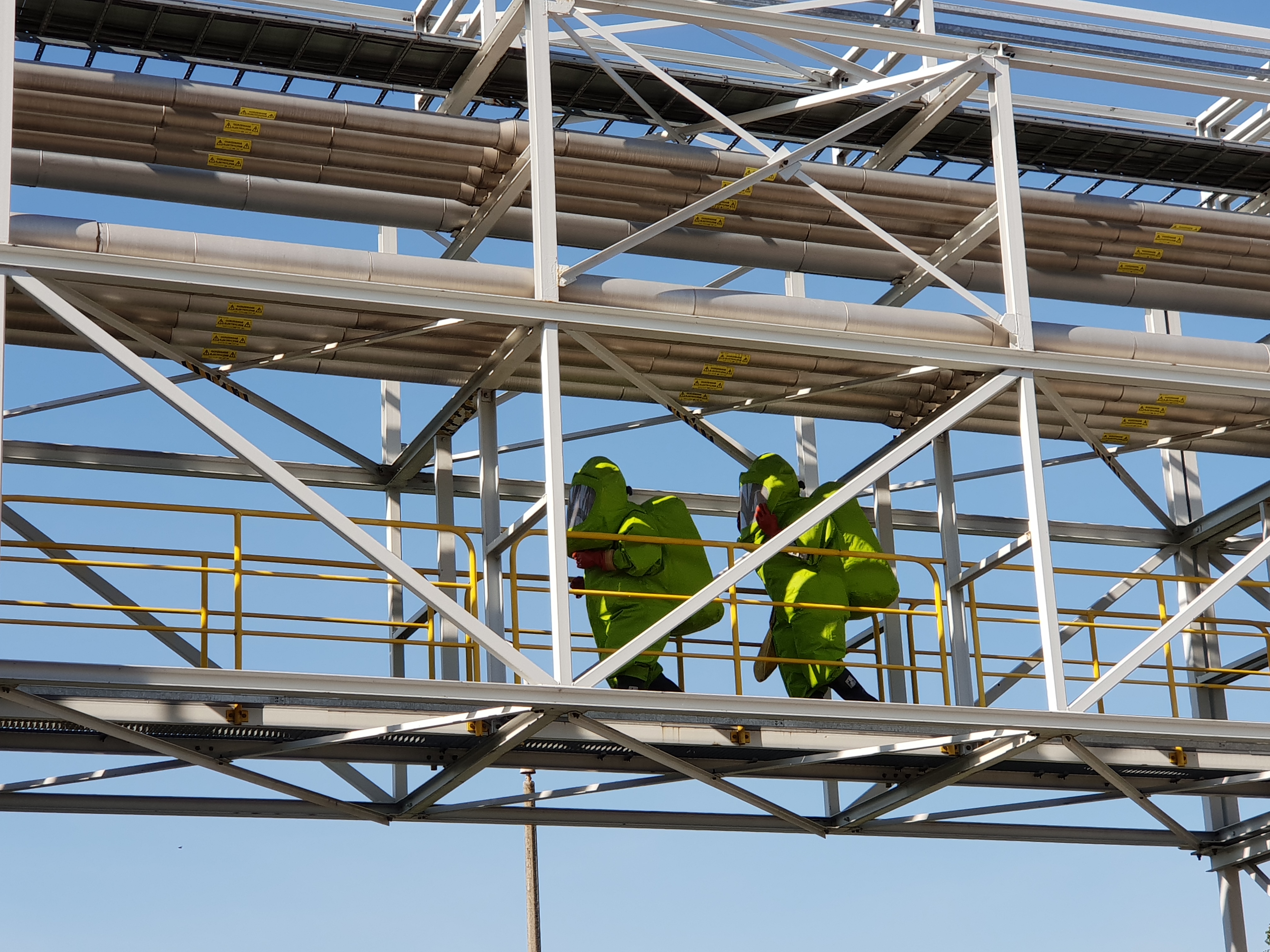 Na obiekt ćwiczeń wybrana została instalacja z tlenkiem etylenu. Scenariusz przewidywał rozszczelnienie połączenia kołnierzowego na rurociągu dostarczającym produkt do zakładu. Rurociąg umieszczony jest na estakadzie na wysokości ok. 4 metrów.