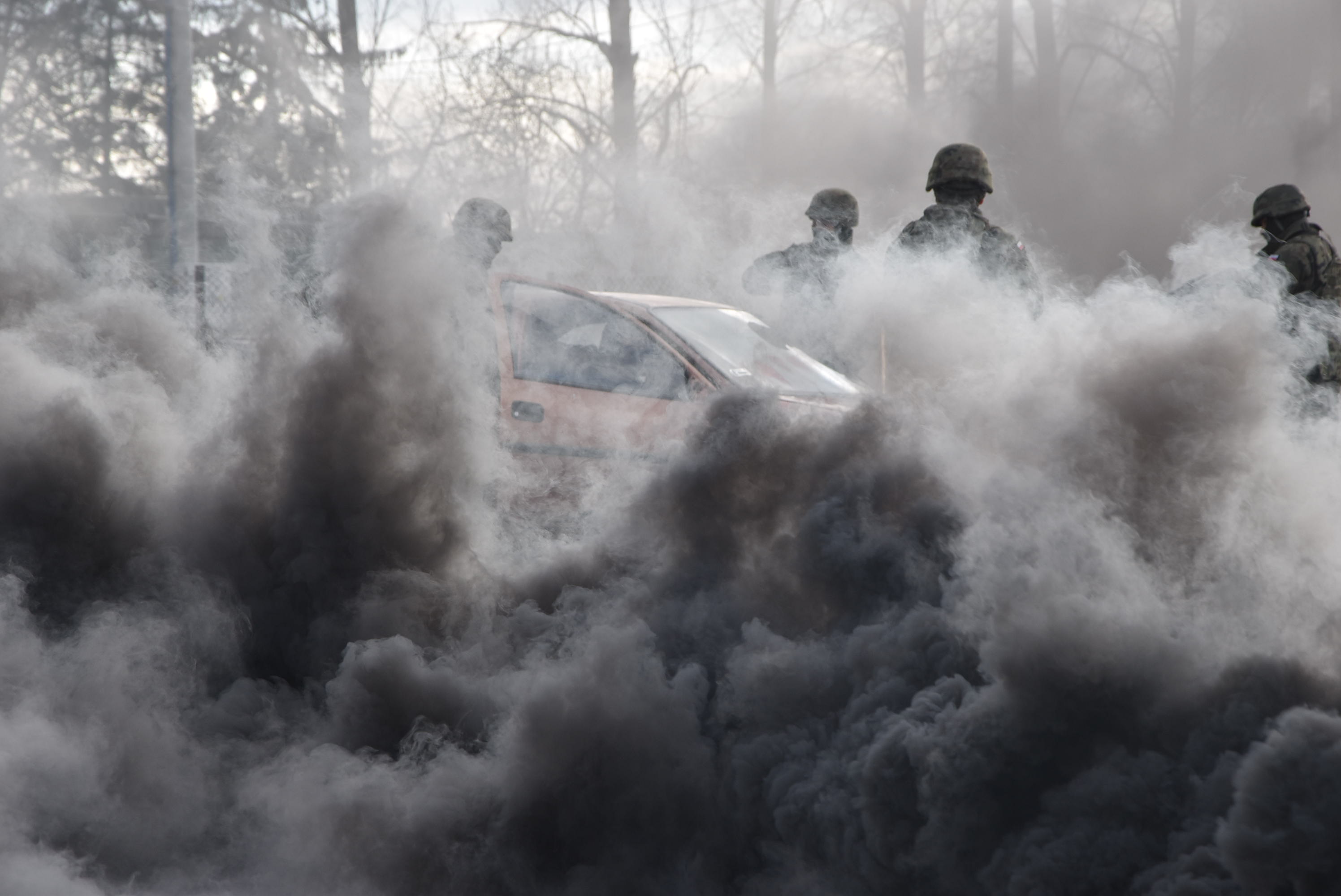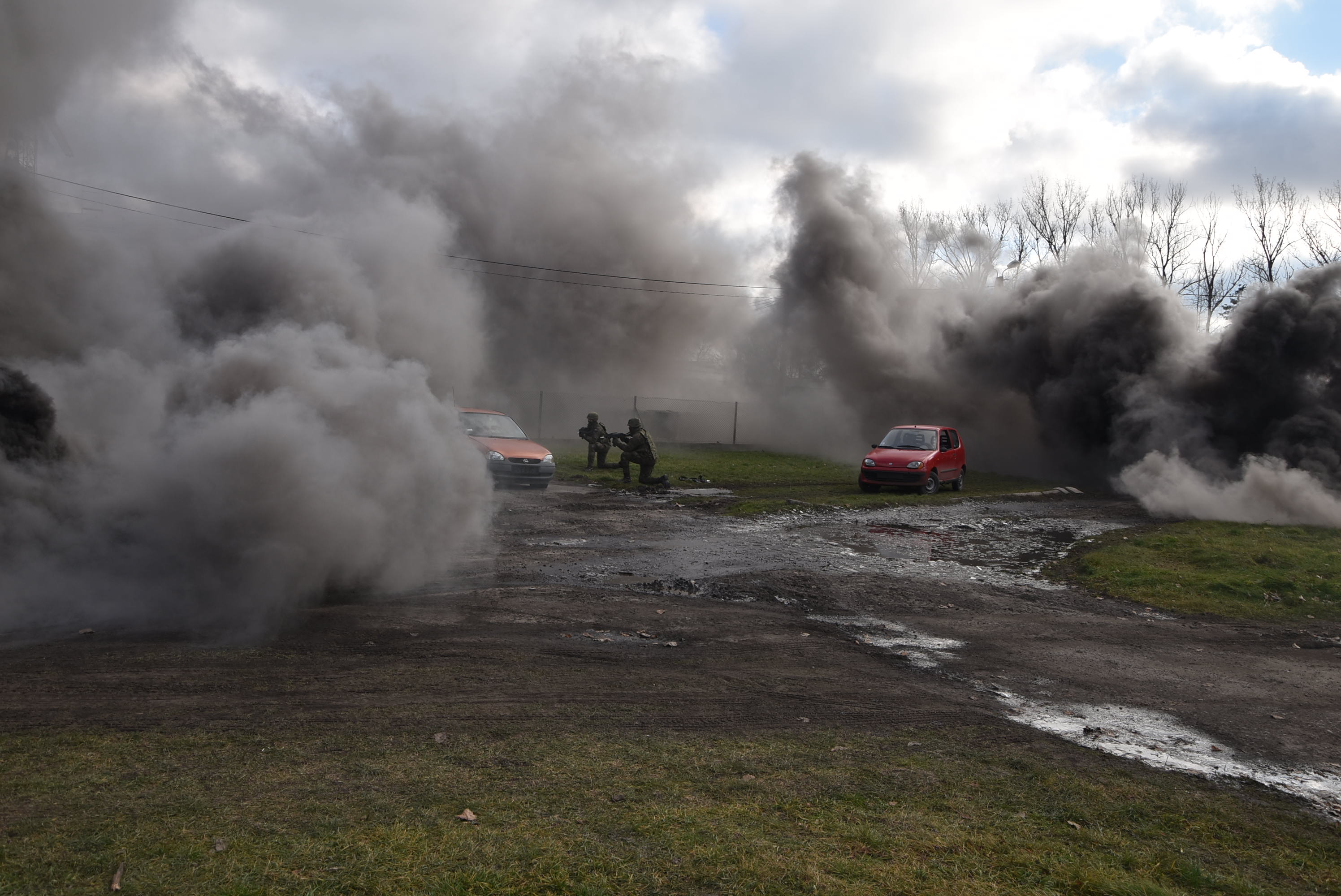 Ćwiczenia zakładały atak terrorystyczny na jednostkę Wojska Polskiego. Napastnicy, po oddaniu strzałów z broni palnej w kierunku budki wartowniczej, zaczęli uciekać ulicą gdzie doprowadzili do czołowego zderzenia dwóch pojazdów osobowych. Jeden z samochodów, w wyniku zdarzenia, zaczął się palić. W pojazdach podróżowały dwie osoby, z których jedna została uwięziona w pojeździe. O zaistniałym zdarzeniu pracownik ochrony poinformował straż pożarną dzwoniąc na nr 112.