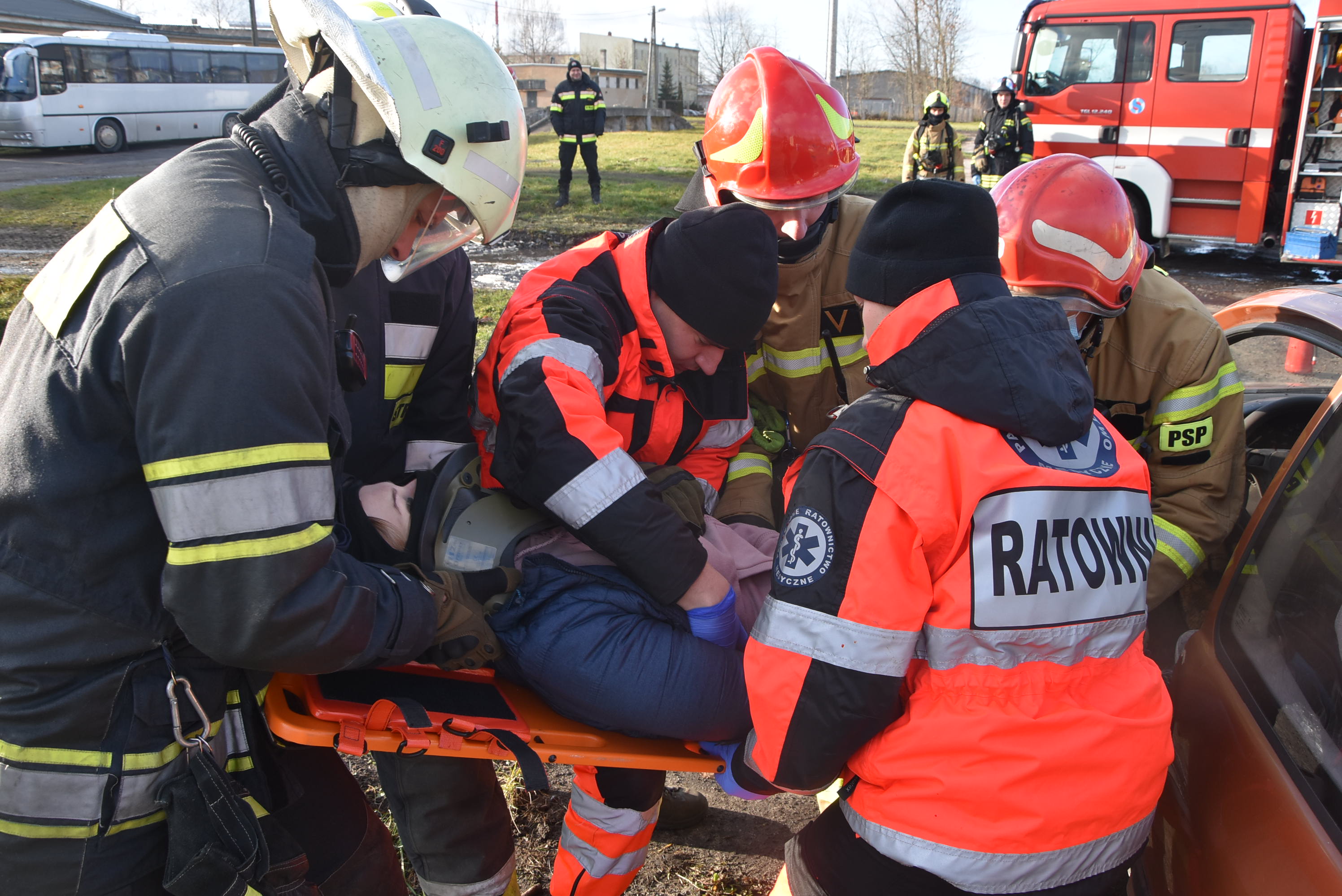 - współpraca ratowników straży pożarnej z wojskowymi ratownikami medycznymi podczas wypadków drogowych.