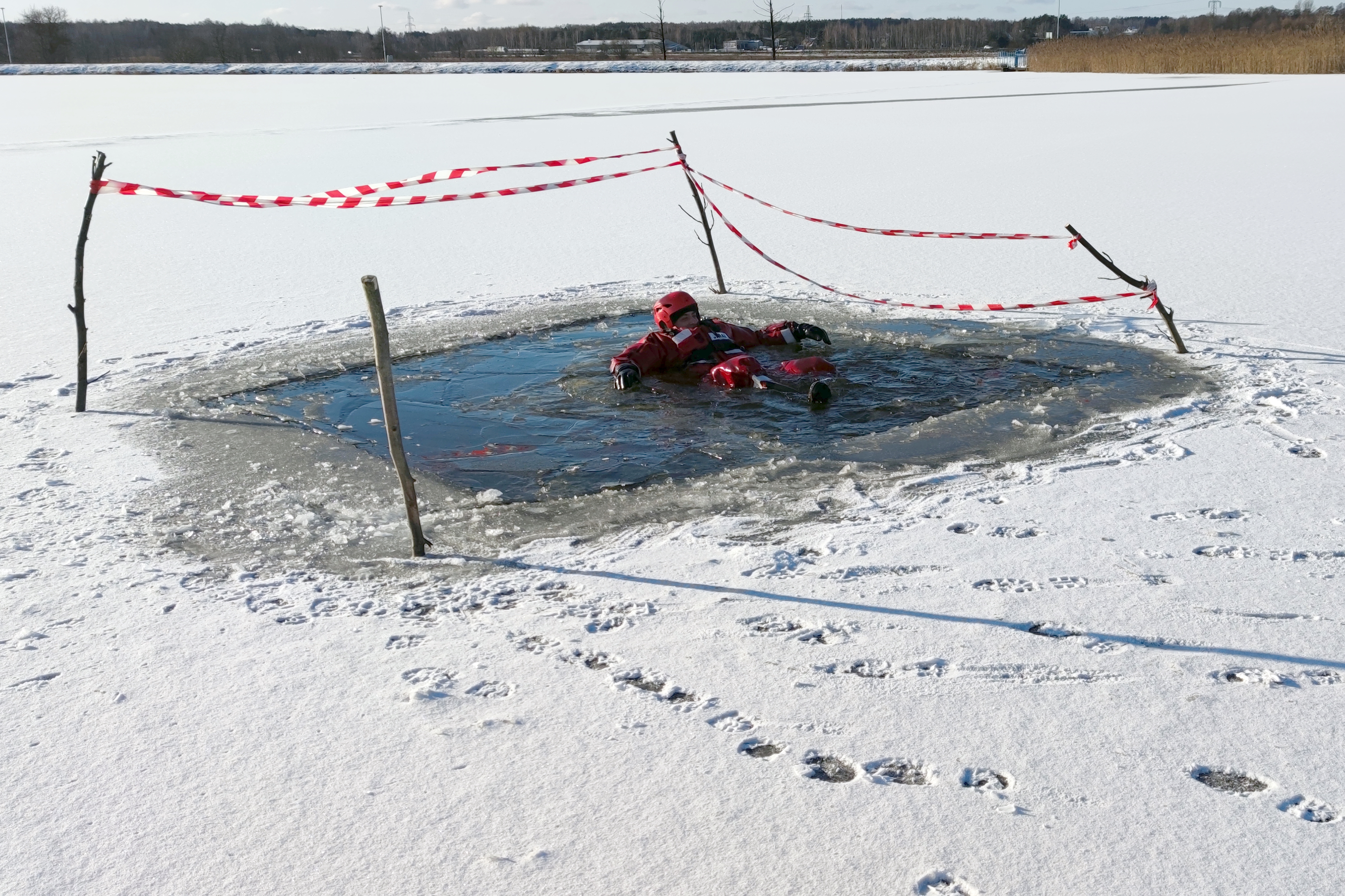 - doskonalenie umiejętności w ratowaniu osób tonących po załamaniu się tafli lodowej,