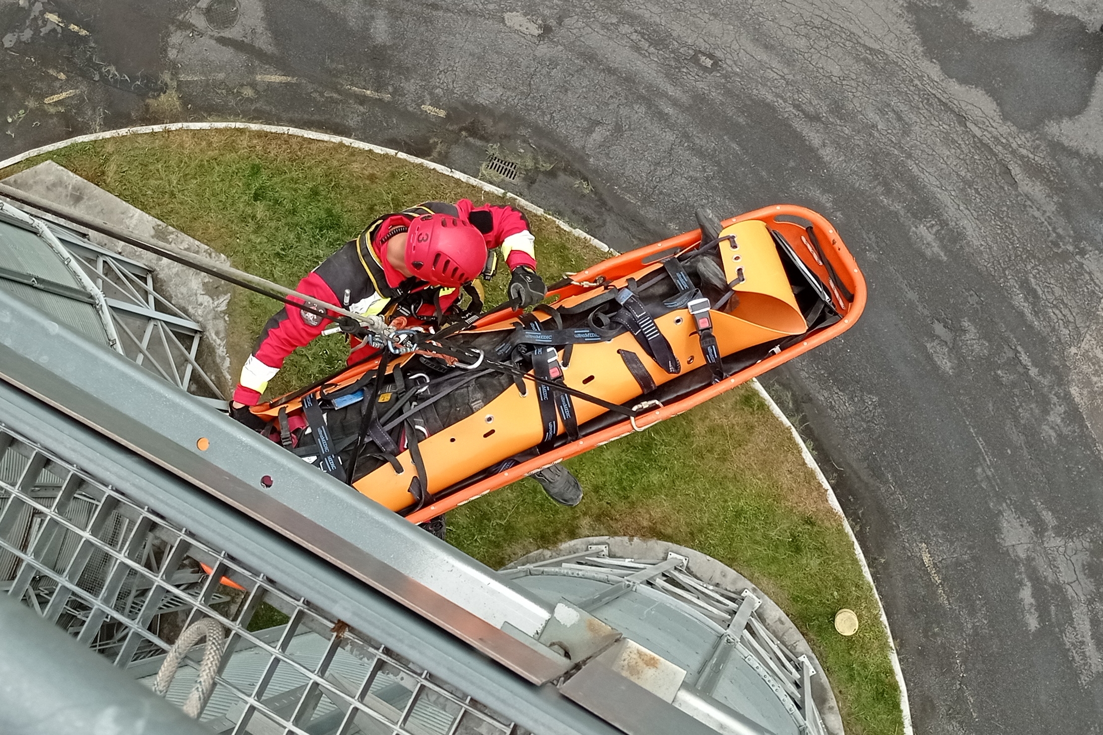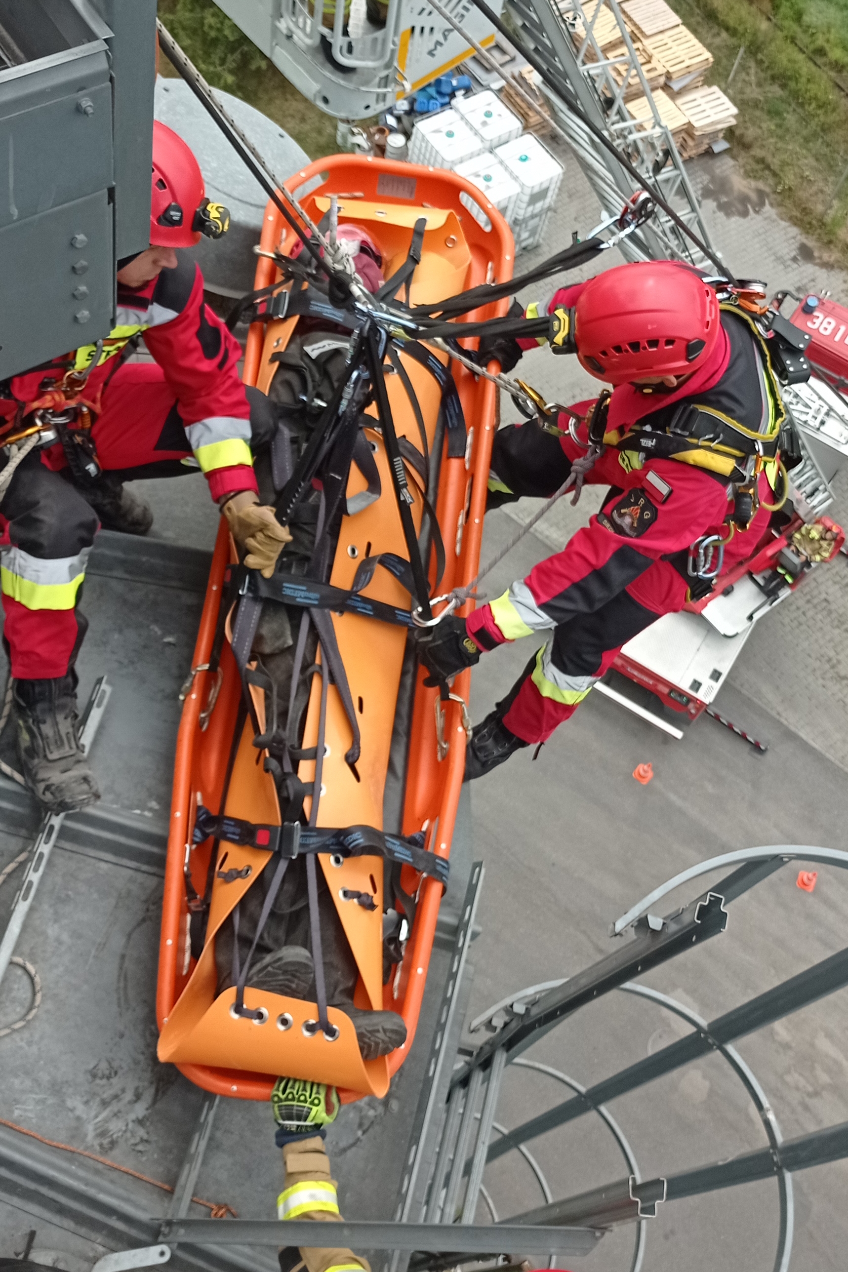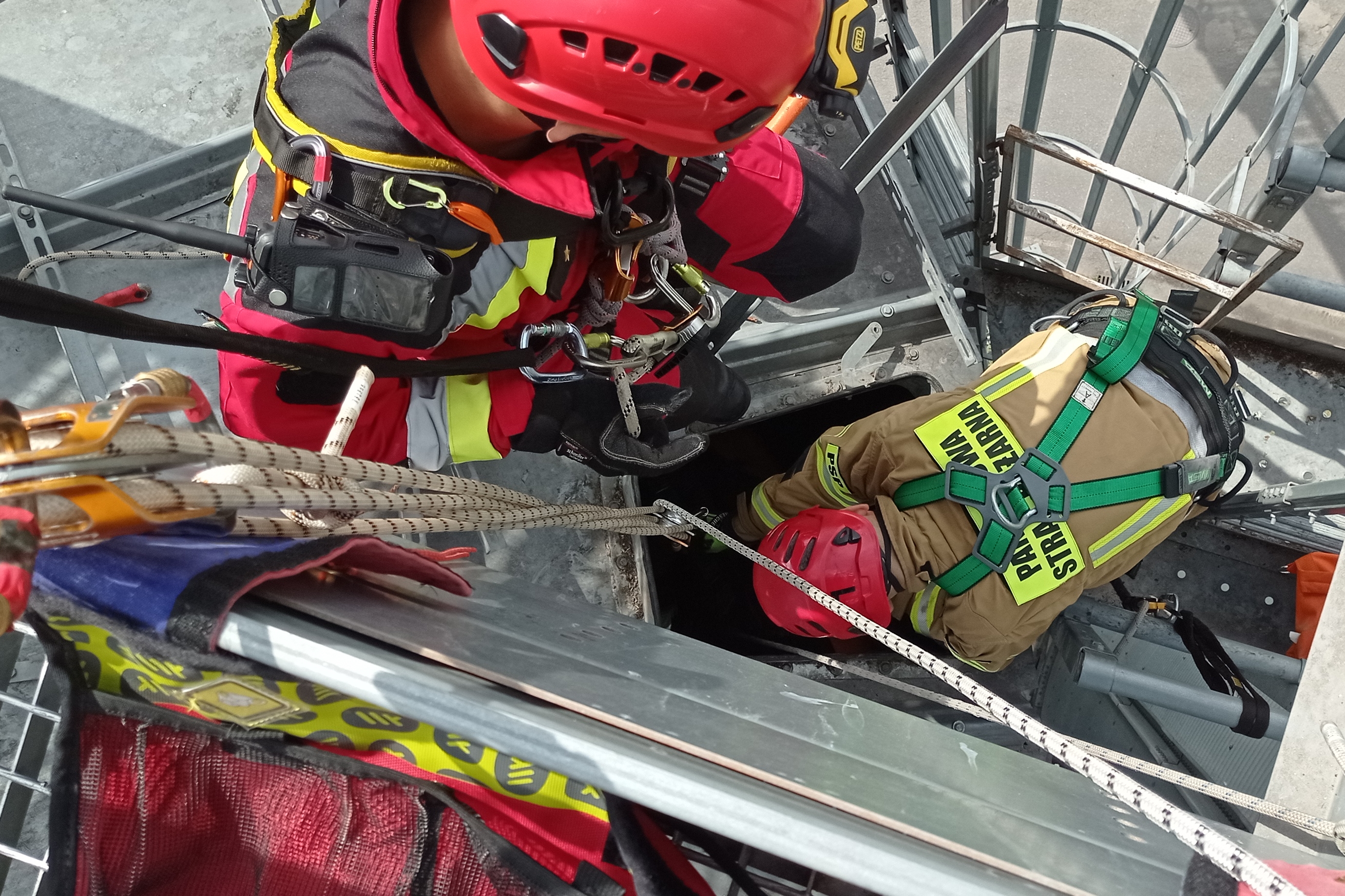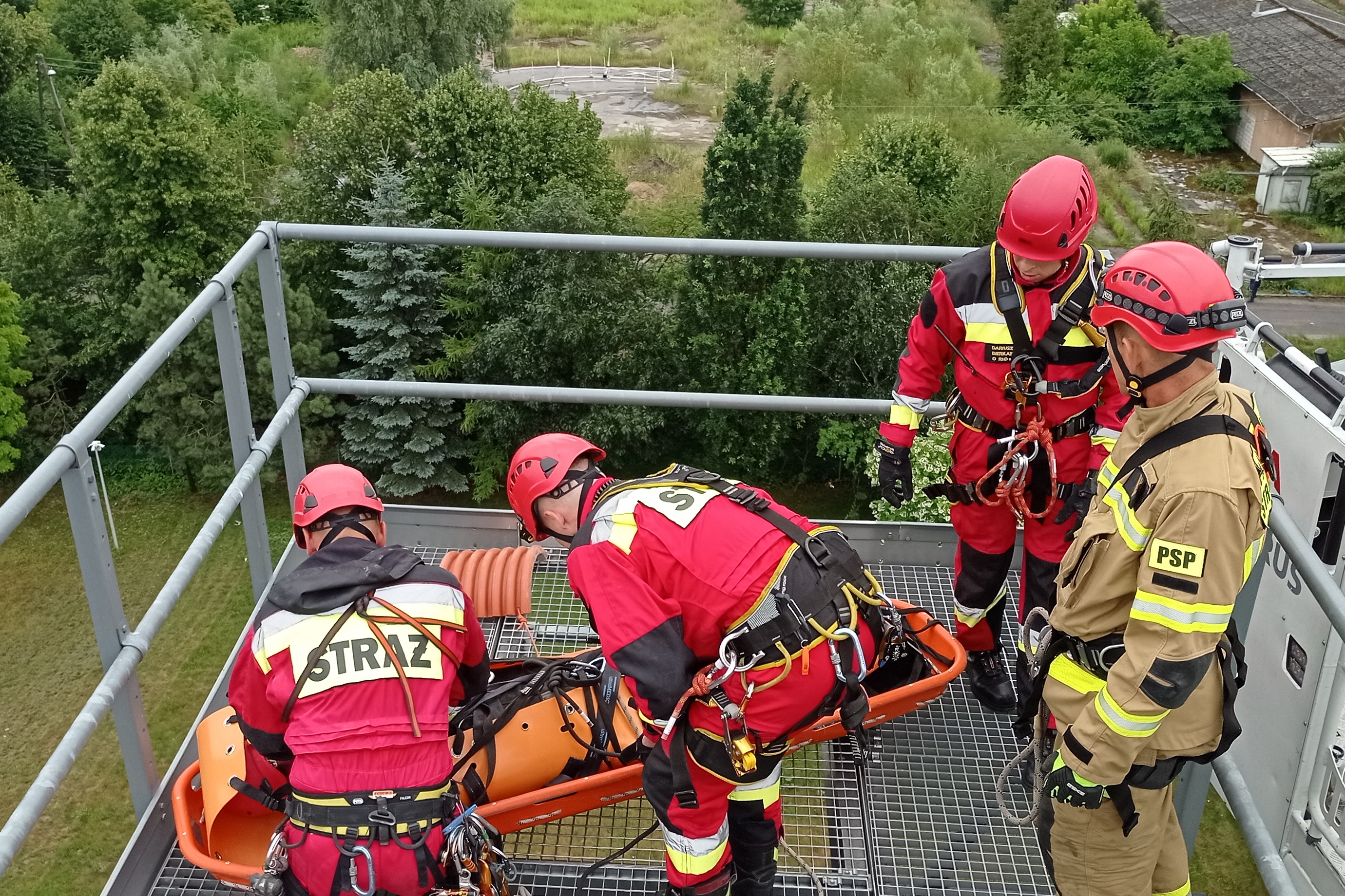 Ponadto ratownicy doskonalili umiejętności ćwicząc techniki ewakuacji osób z wnętrza obiektów powyżej poziomu ziemi, zabezpieczania ratowników podczas działań na wysokości oraz udzielania kpp w przestrzeniach trudnodostępnych.