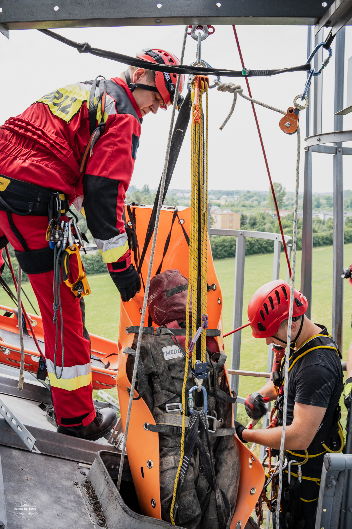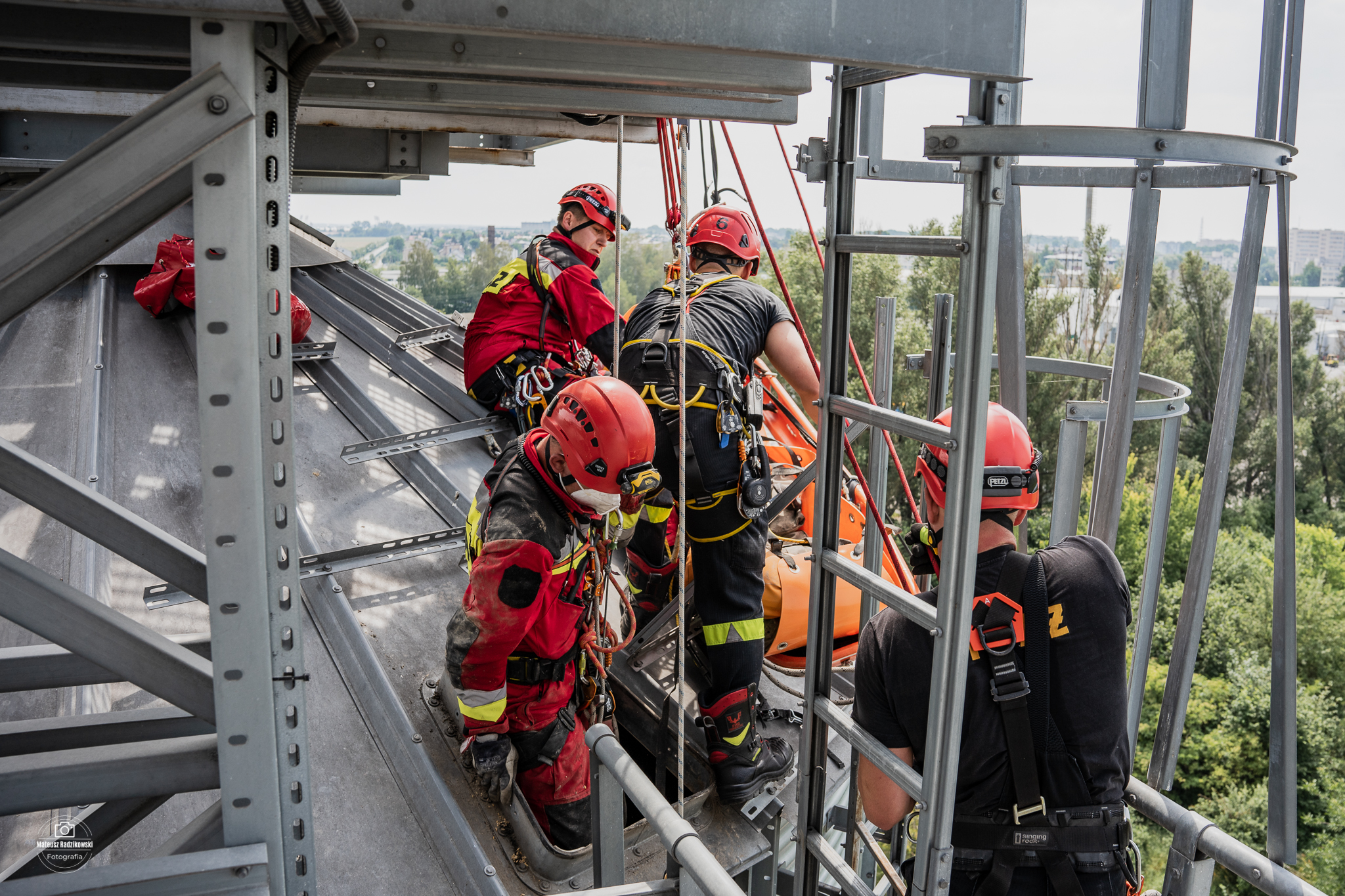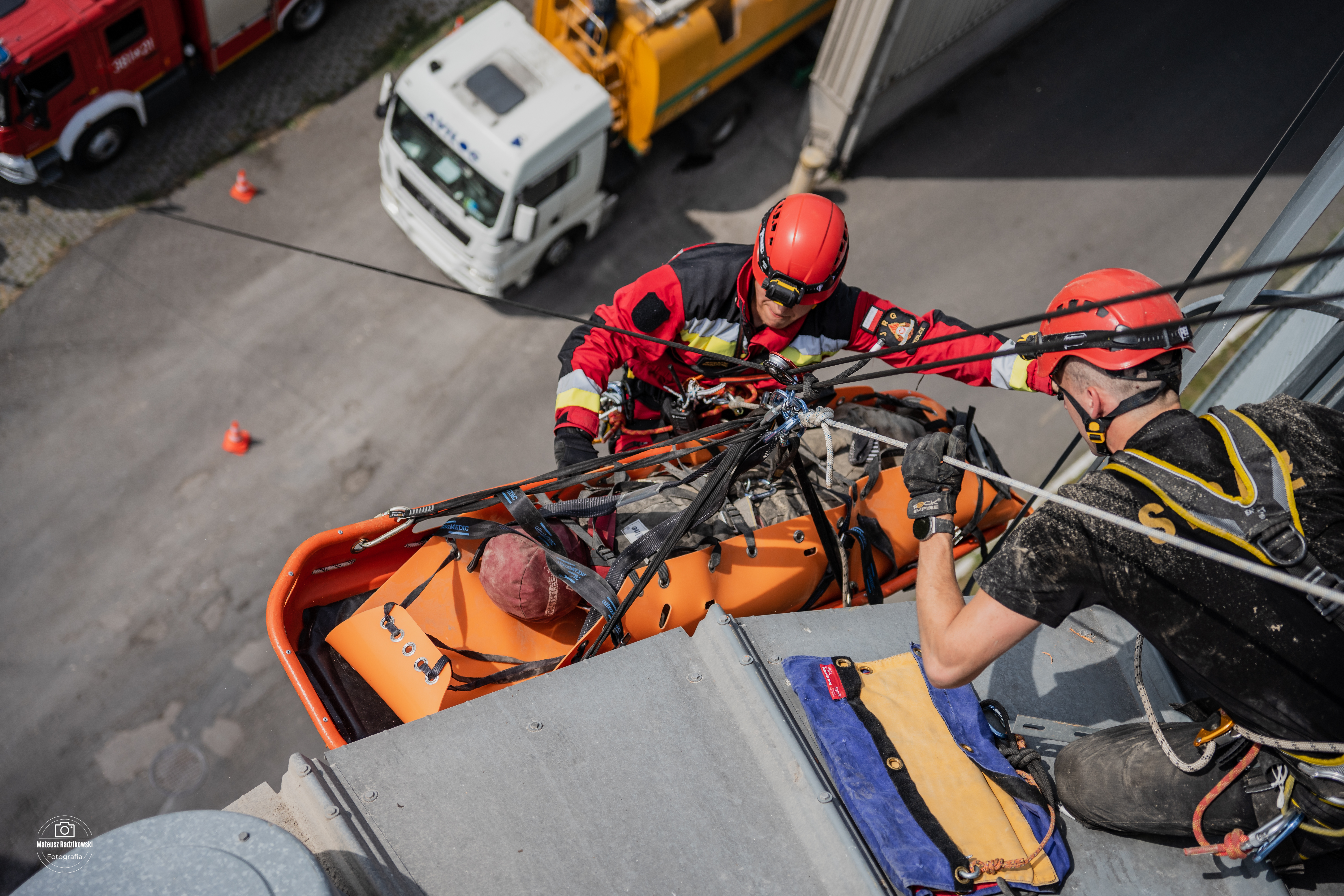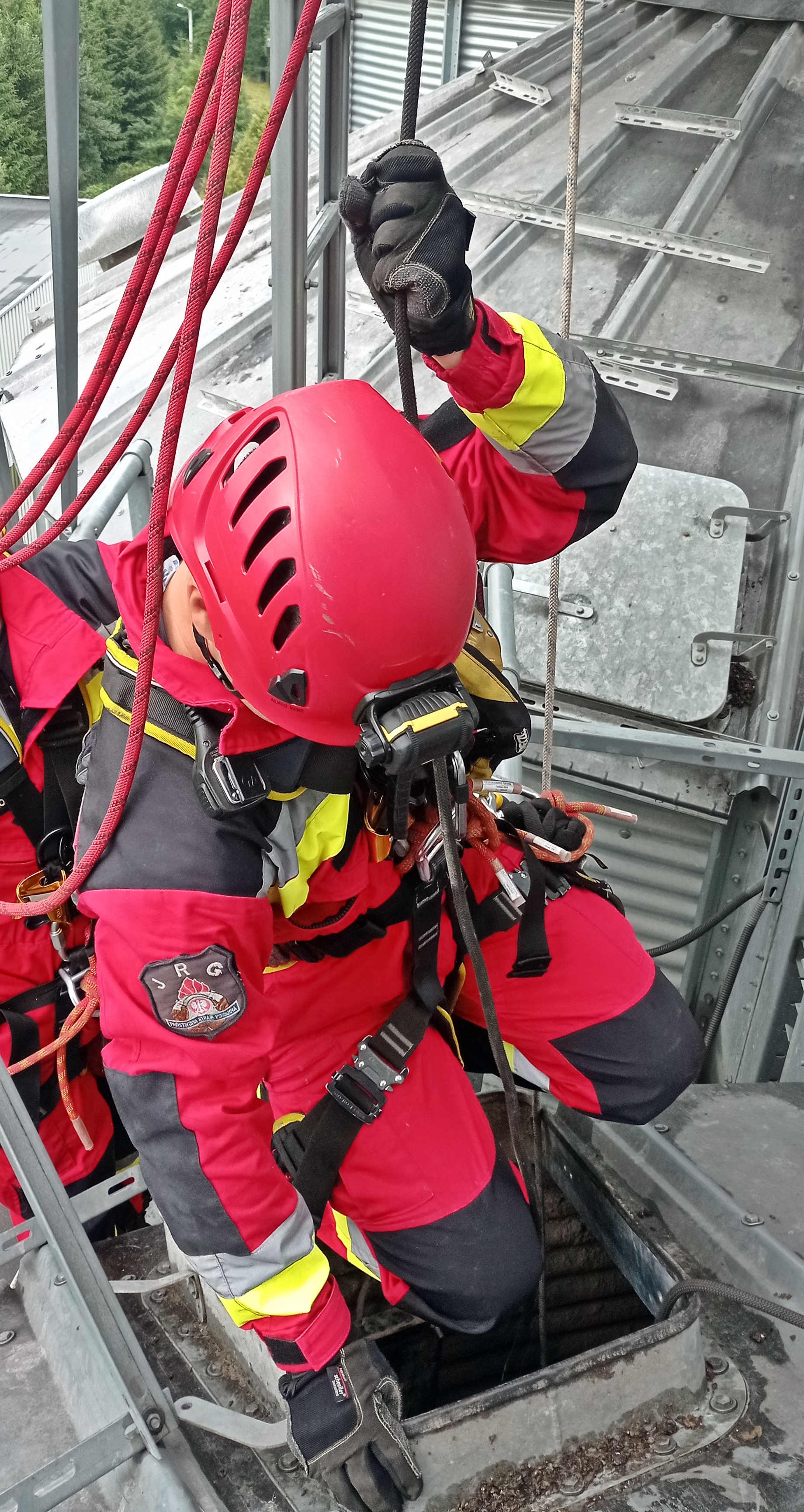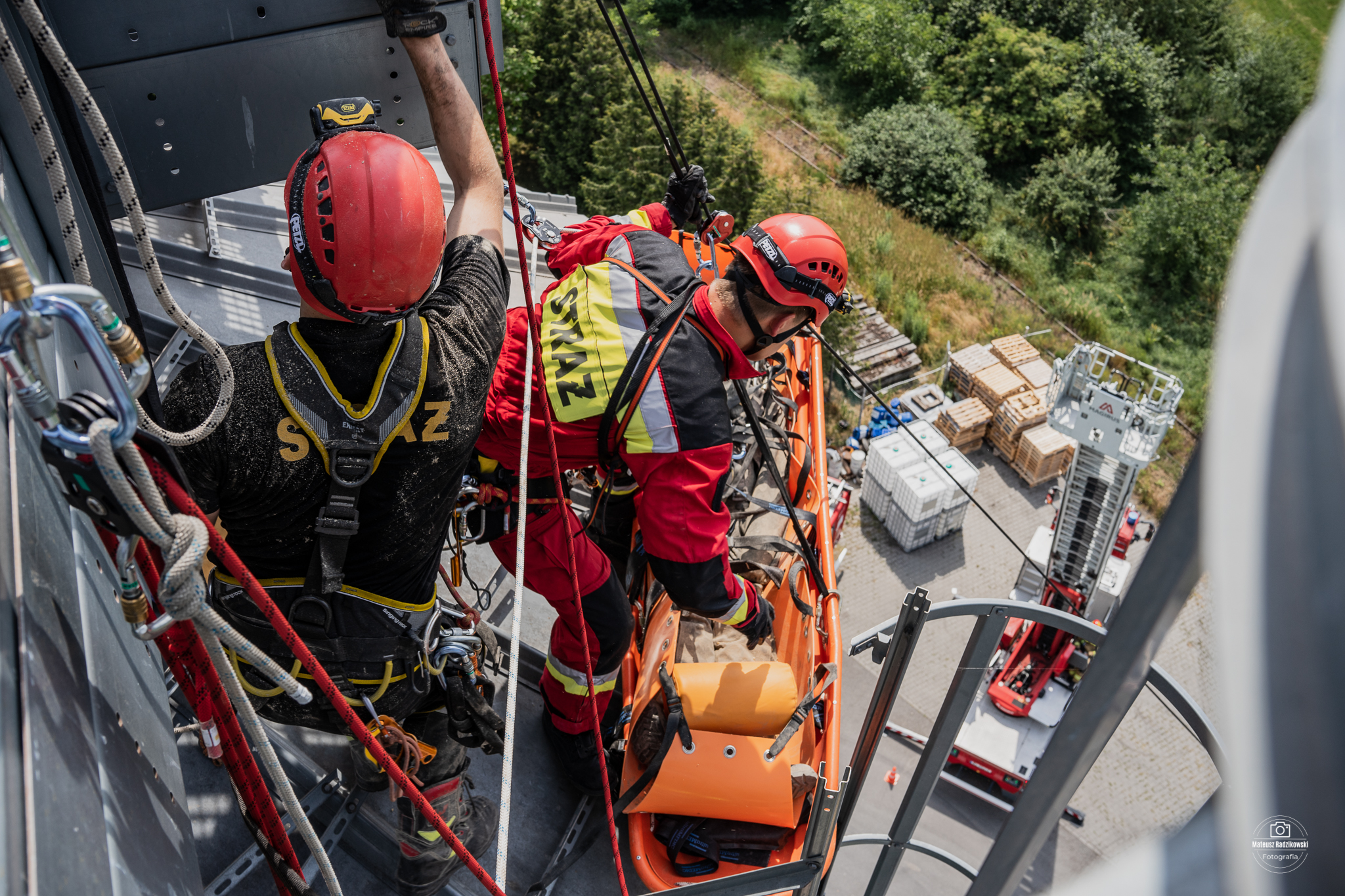Ponadto ratownicy doskonalili umiejętności ćwicząc techniki ewakuacji osób z wnętrza obiektów powyżej poziomu ziemi, zabezpieczania ratowników podczas działań na wysokości oraz udzielania kpp w przestrzeniach trudnodostępnych.