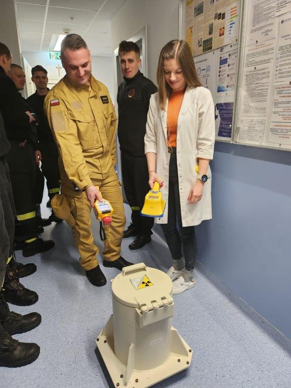 Celem ćwiczeń było potwierdzenie obecności izotopu promieniotwórczego i jego identyfikacja na podstawie emitowanego przez niego promieniowania gamma. Możliwość praktycznego kontaktu z materiałami promieniotwórczymi, zwłaszcza z prowadzeniem pomiarów i rozpoznaniem dozymetrycznym, jest niezbędna dla bezpieczeństwa ratowników podczas akcji ratowniczych. Przekazana przez pracownika Zakładu Medycyny Nuklearnej wiedza z tego zakresu pozwoli w przyszłości właściwie interpretować wskazania urządzeń pomiarowych.