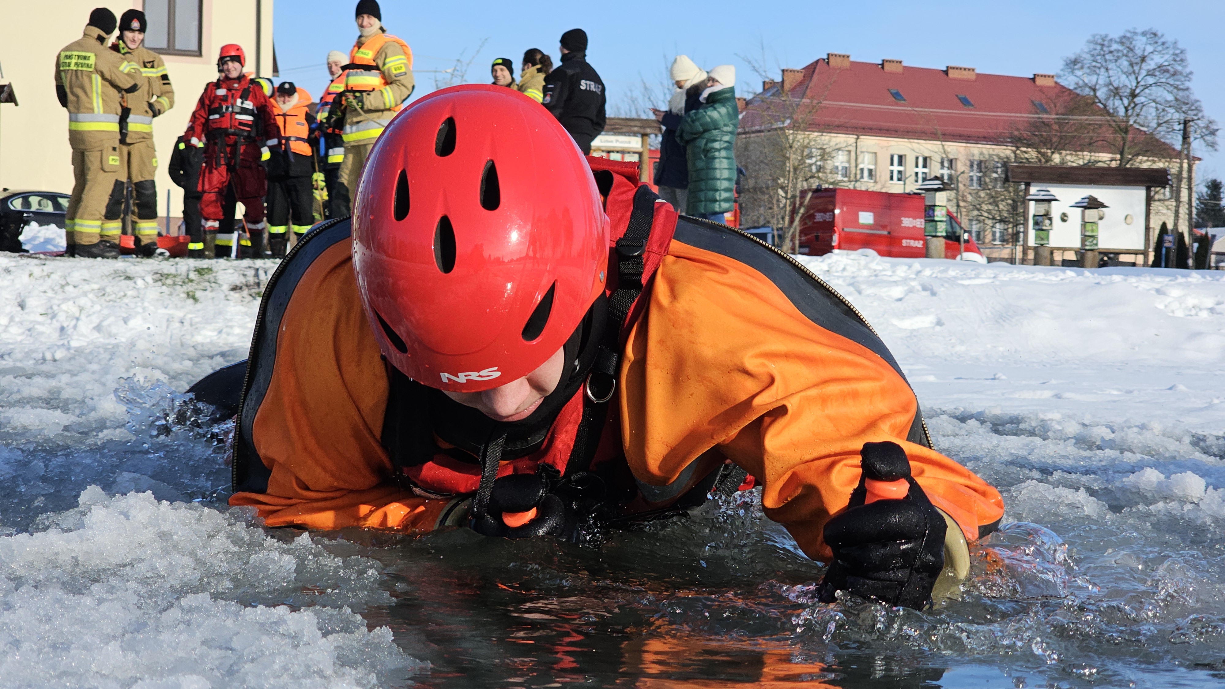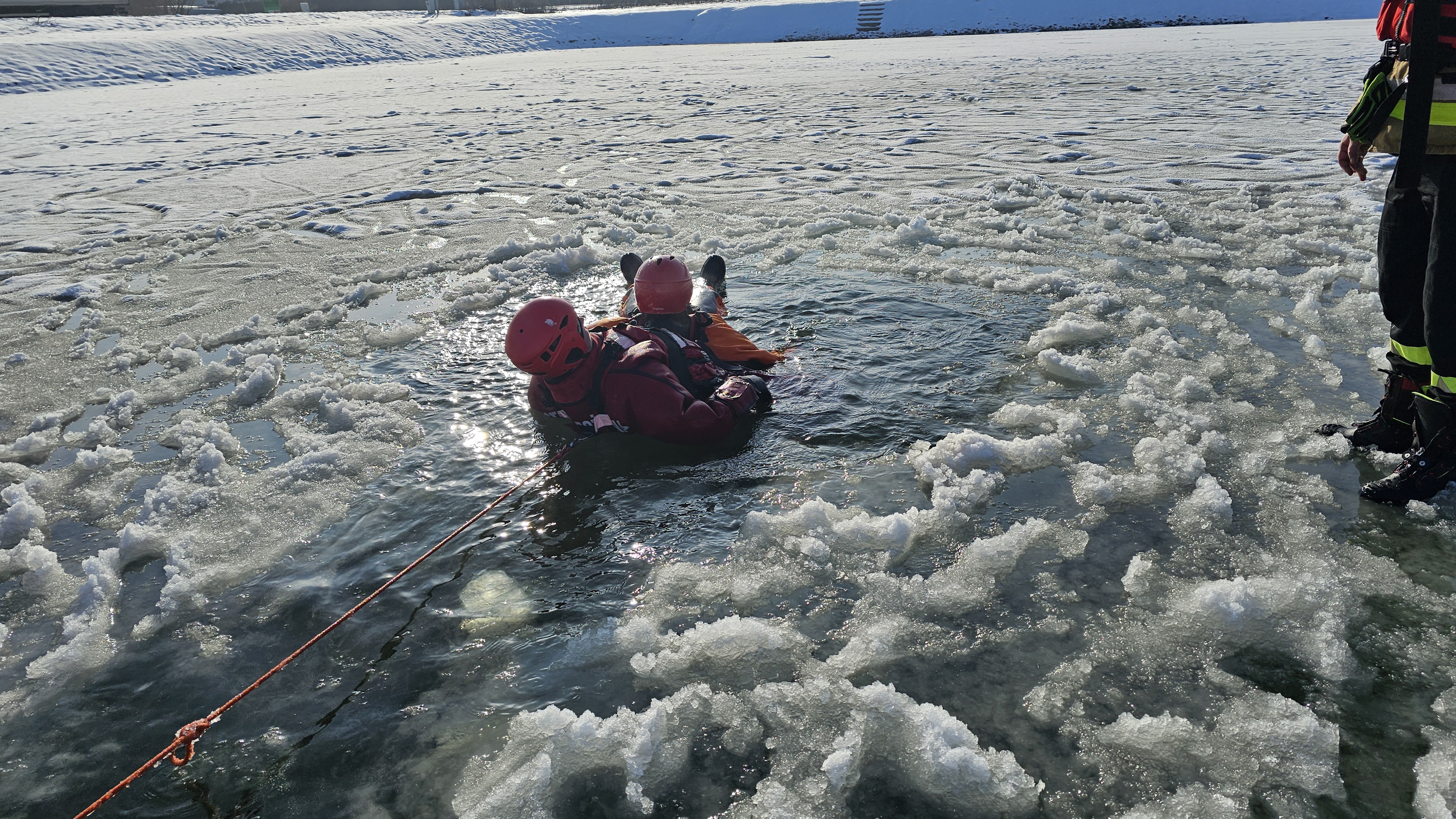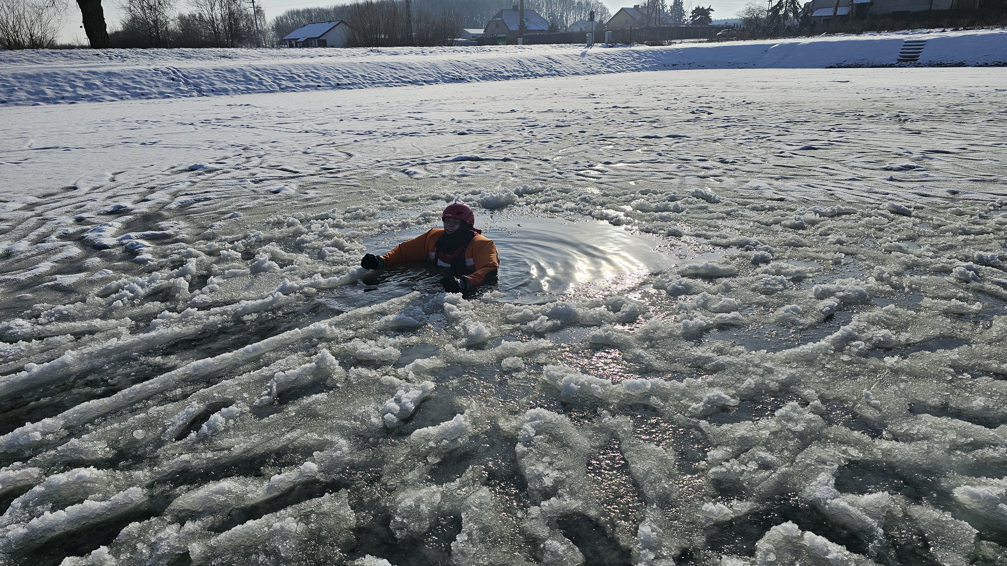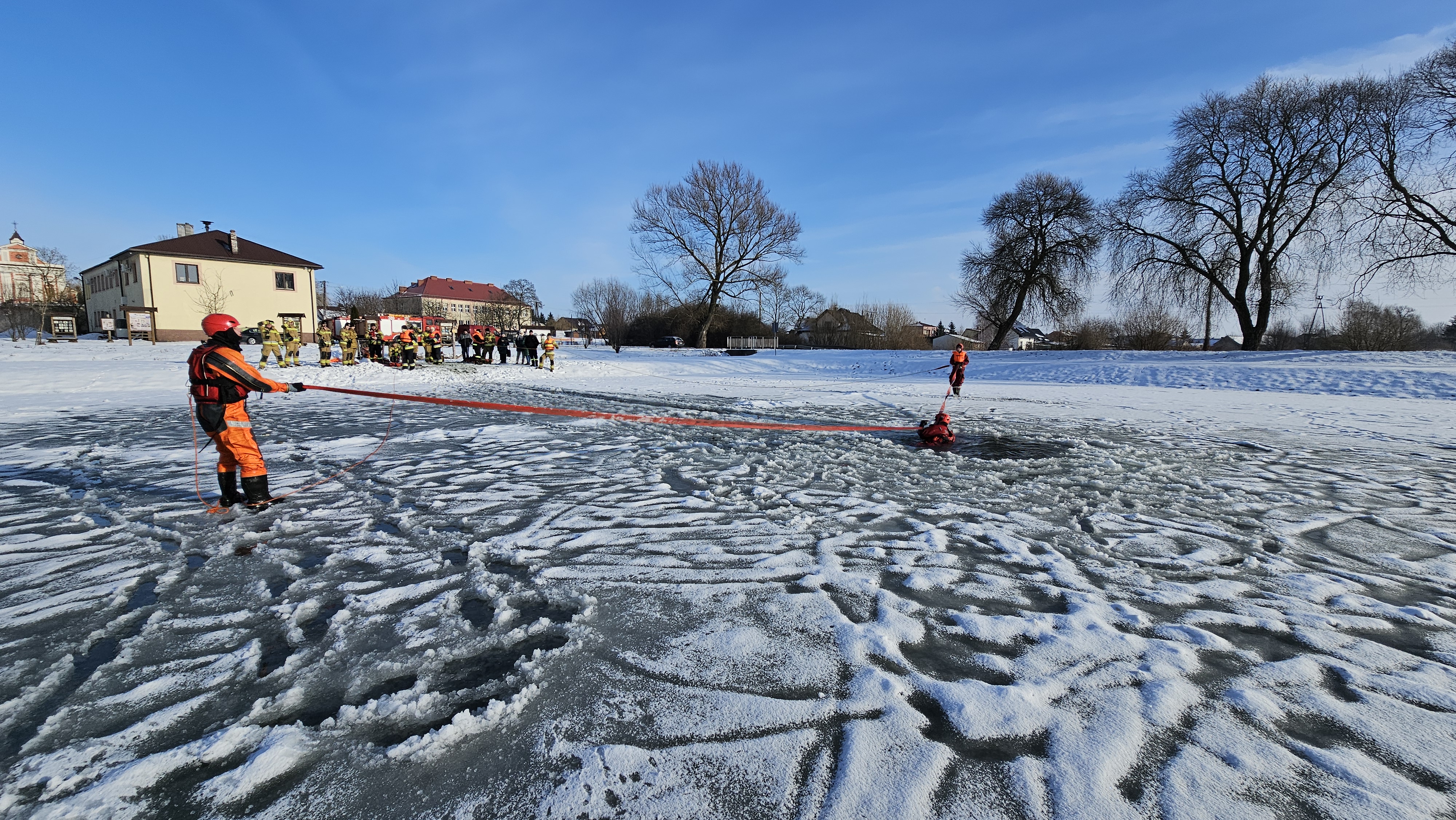 W specjalnie przygotowanym przeręblu zostały przećwiczone techniki poruszania się po lodzie, dotarcia do osoby poszkodowanej oraz podjęcie jej z wody i ewakuacji na brzeg, organizacji prac asekuracyjnych a także doskonalenia technik samoratowania w przypadku załamania się lodu.