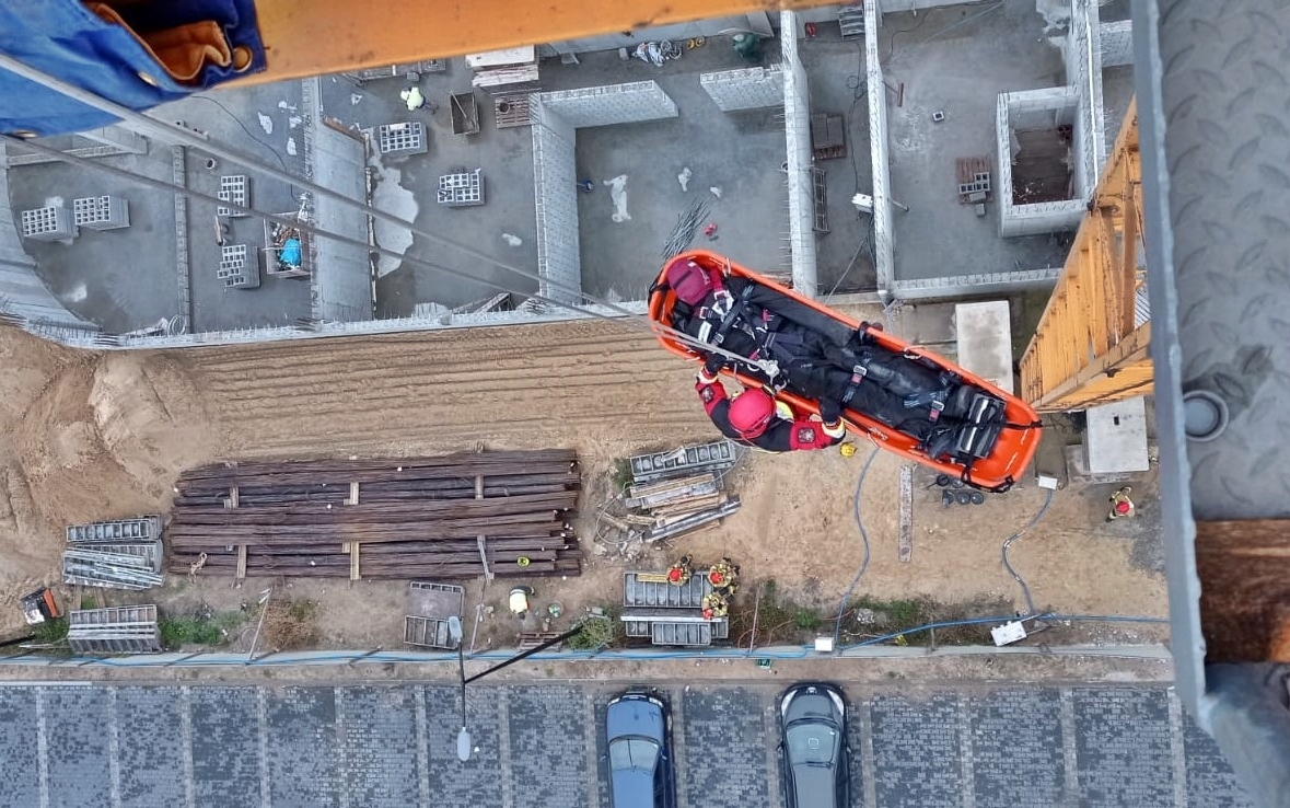 Podczas prac przy budowie osiedla mieszkaniowego doszło do wypadku z udziałem operatora żurawia wieżowego. Pracownicy budowy zauważyli, że żuraw przestał pracować, a operator żurawia nie odpowiada na wezwania pracowników. Kierownik budowy niezwłocznie poinformował służby o zdarzeniu.