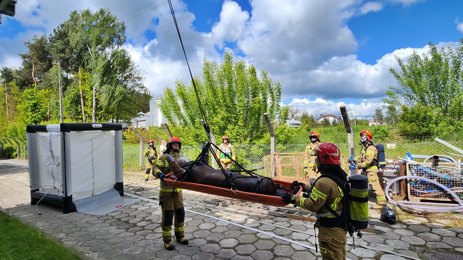 15 maja 2025 roku na terenie zakładu przemysłowego Zentis Polska w Żelkowie Kolonii odbyły się ćwiczenia z zakresu współdziałania siedleckich grup specjalistycznych - ratownictwa chemiczno-ekologicznego oraz wysokościowego.