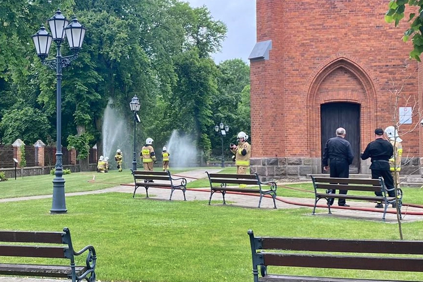 Ćwiczenia zakładały pożar w wyniku zwarcia instalacji elektrycznej w miejscowym kościele.
