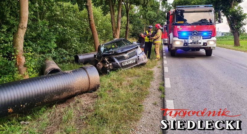 13 lipca w miejscowości Pruszyn (gm. Siedlce) samochód osobowy zjechał z drogi i uderzył w znajdujące się w rowie rury kanalizacyjne. Podróżujący pojazdem nie zgłaszali dolegliwości i odmówili udzielenia kwalifikowanej pierwszej pomocy. Działania strażaków polegały na zabezpieczeniu terenu działań, odłączeniu zasilania akumulatorowego w pojeździe i kontrolowaniu stanu zdrowia uczestników zdarzenia. Na drodze wprowadzono ruch wahadłowy. Przeszukano okoliczne zarośla w celu odnalezienia kierowcy pojazdu - poszukiwania nie przyniosły rezultatu.