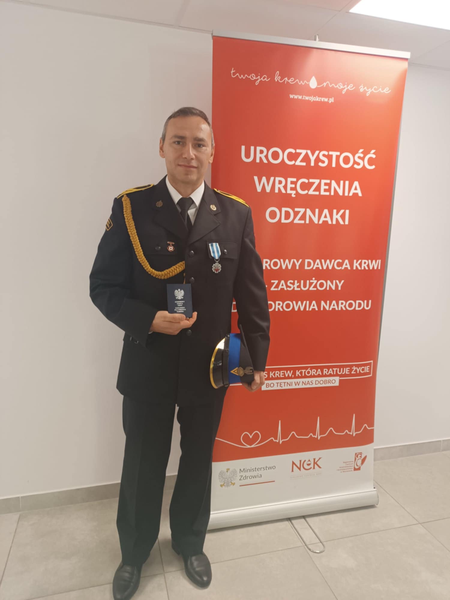 Odznaczenia wręczał Dyrektor Regionalnego Centrum Krwiodawstwa i Krwiolecznictwa w Warszawie Pan Dariusz Piotrowski. Wśród osób uhonorowanych tym zaszczytnym odznaczeniem znalazł się również strażak z Komendy Miejskiej Państwowej Straży Pożarnej w Siedlcach, st. ogn. Radosław Giernicki.