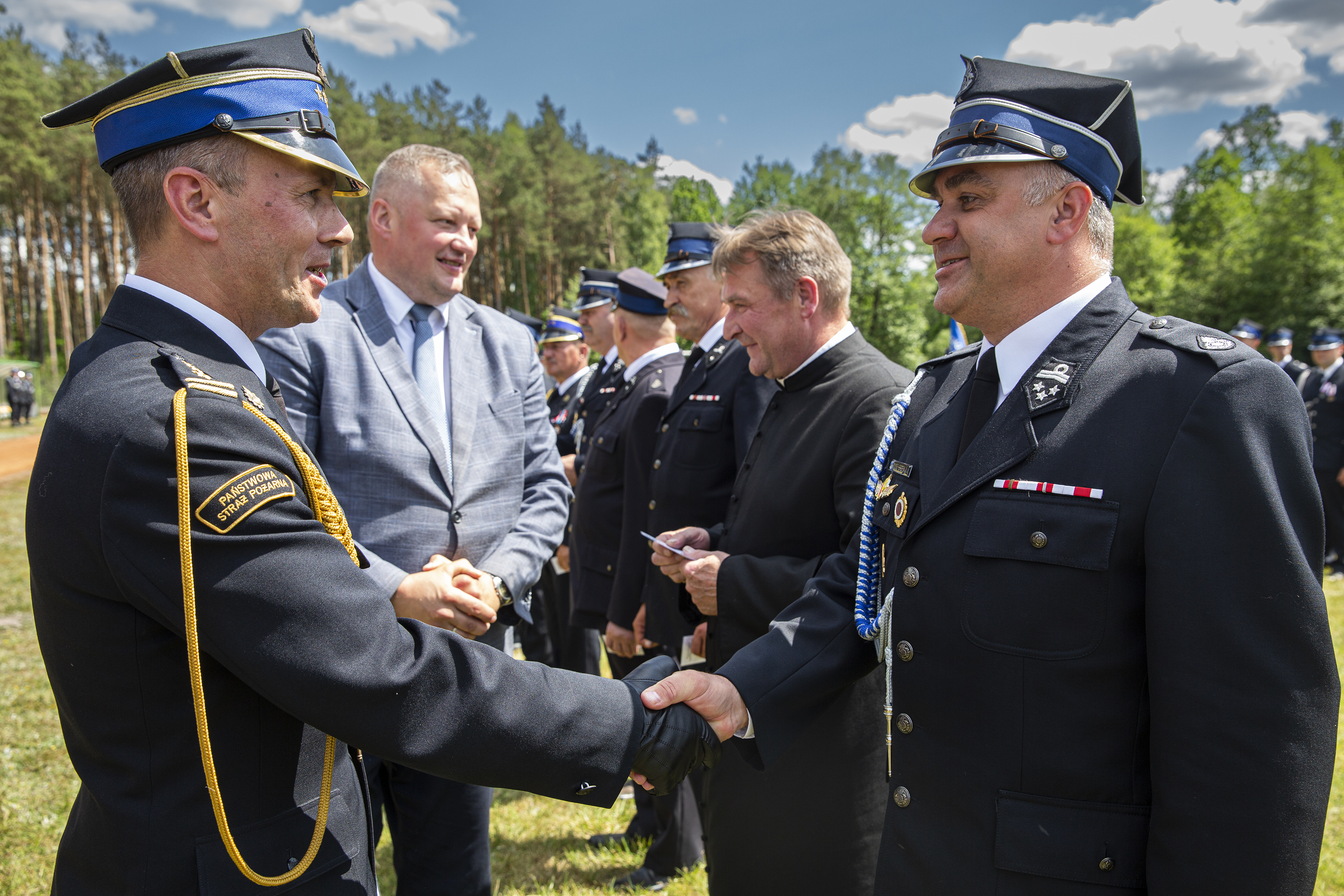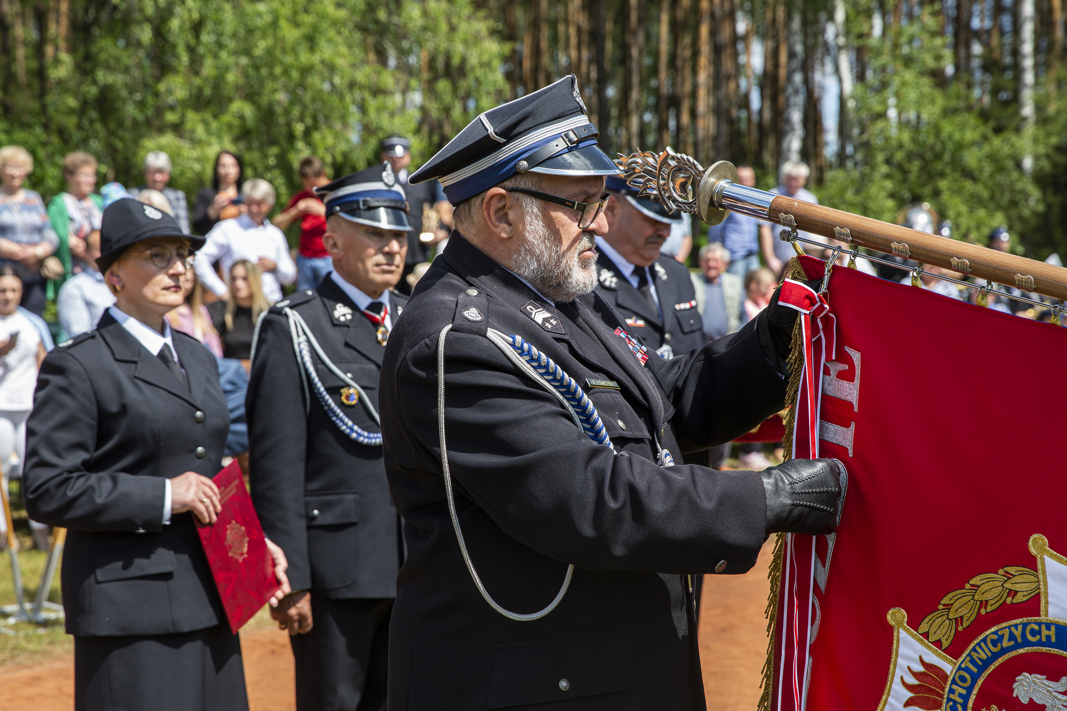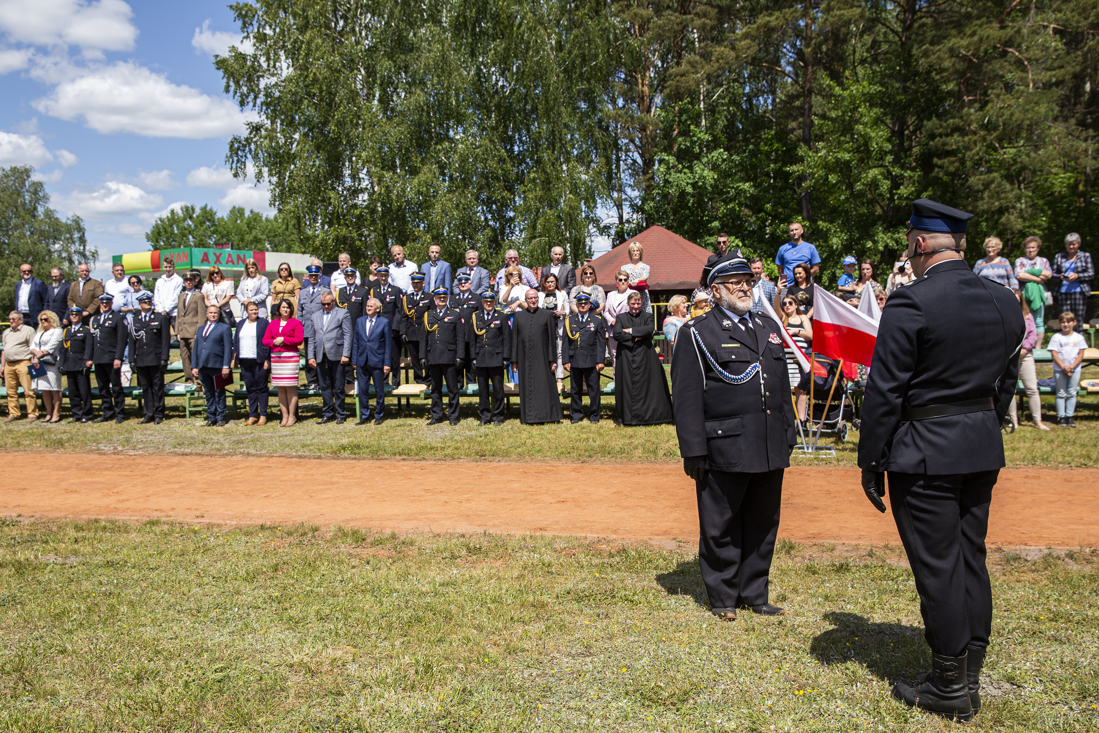 Meldunek o gotowości pododdziałów do uroczystości przyjął dh Antoni Jan Tarczyński, Prezes Zarządu Oddziału Wojewódzkiego Związku OSP RP woj. mazowieckiego.