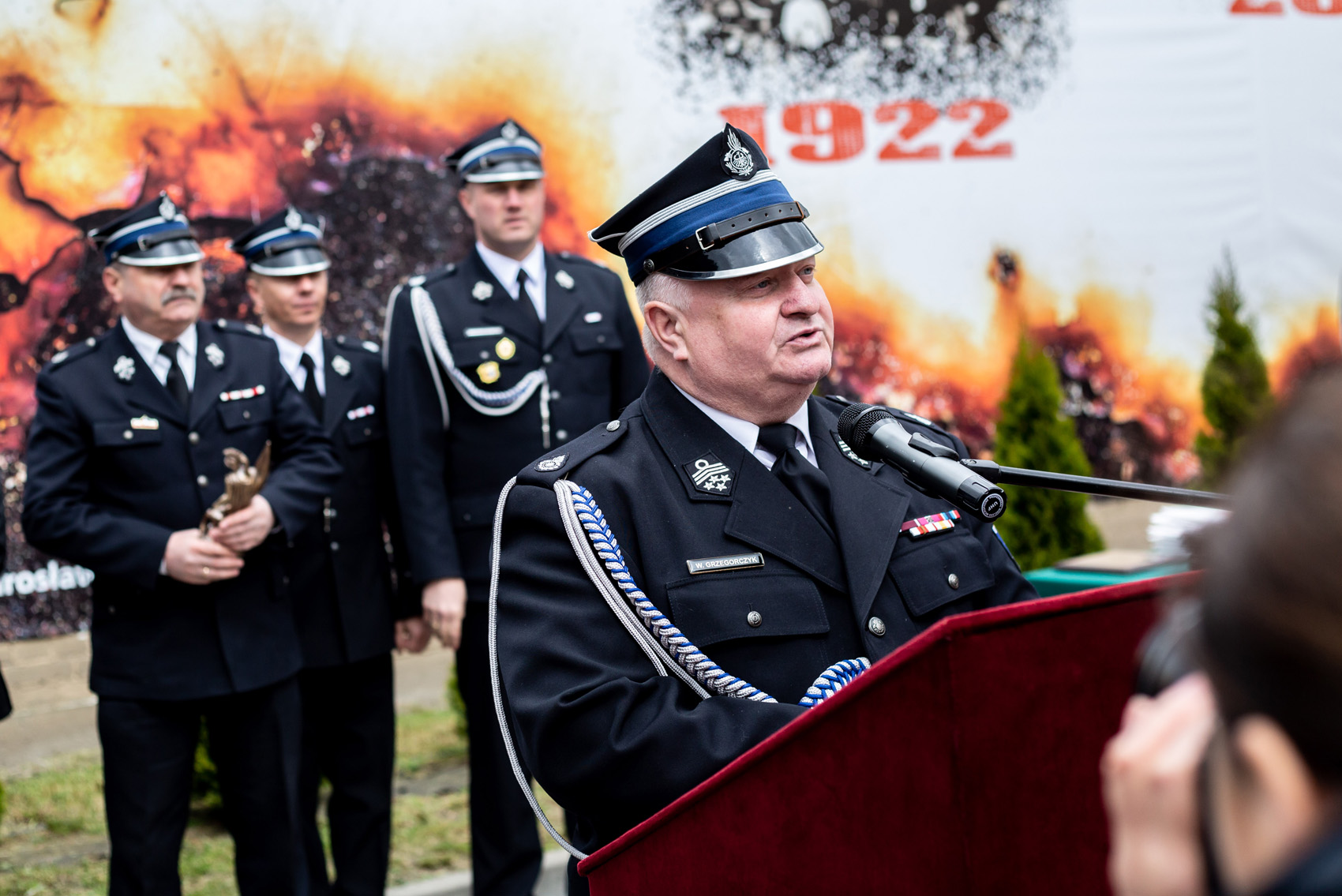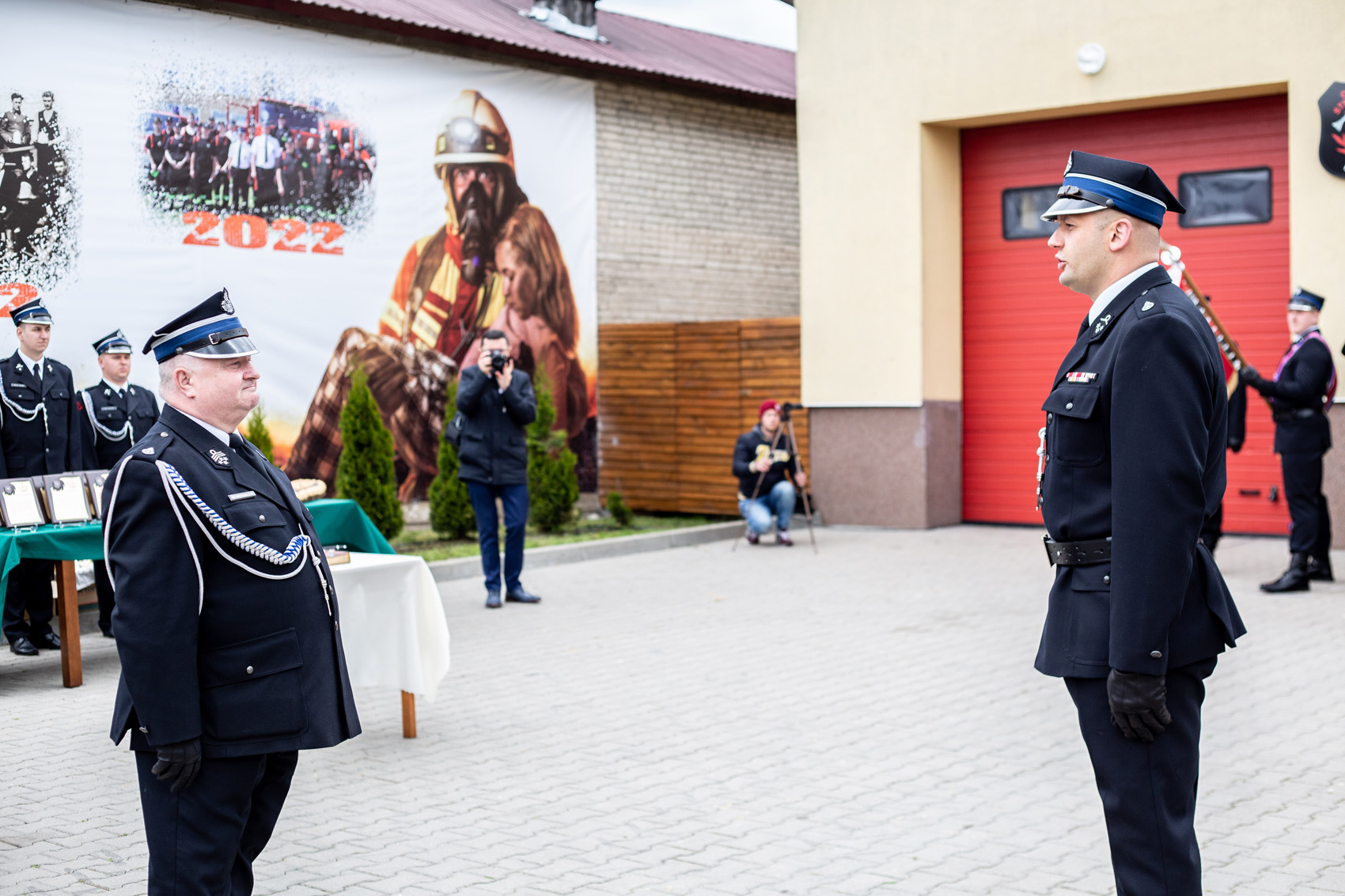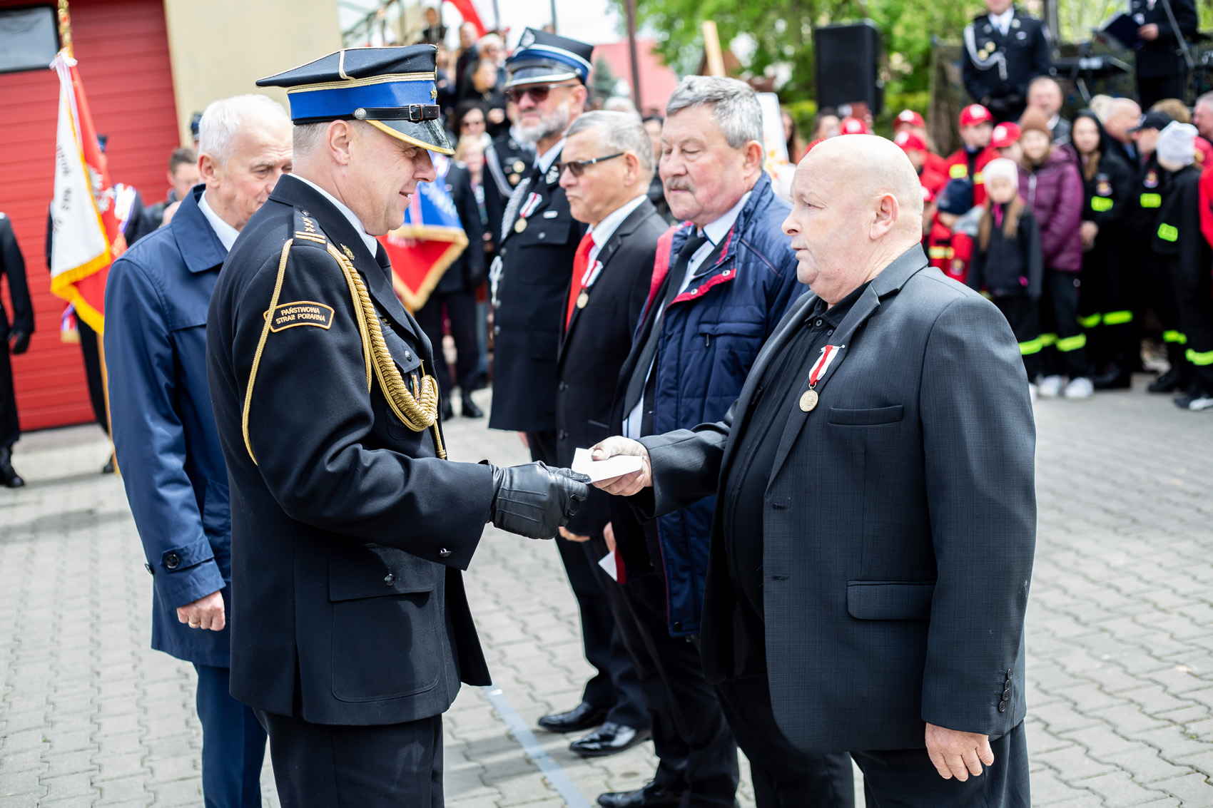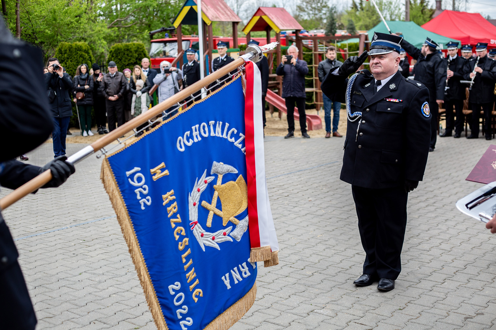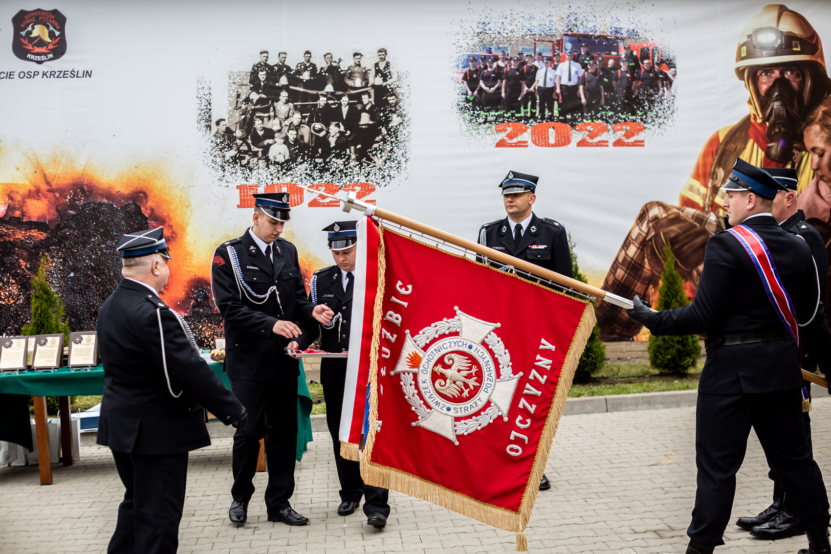 Meldunek o gotowości pododdziałów do uroczystości przyjął dh Wojciech Grzegorczyk, Prezes Zarządu Oddziału Powiatowego Związku OSP RP w Siedlcach. W dalszej części strażackiego święta Złotym Znakiem Związku Ochotniczych Straży Pożarnych Rzeczypospolitej Polskiej, za 100-lecie działalności odznaczono sztandar OSP w Krześlinie. Jest to najwyższe odznaczenie Związku OSP RP.