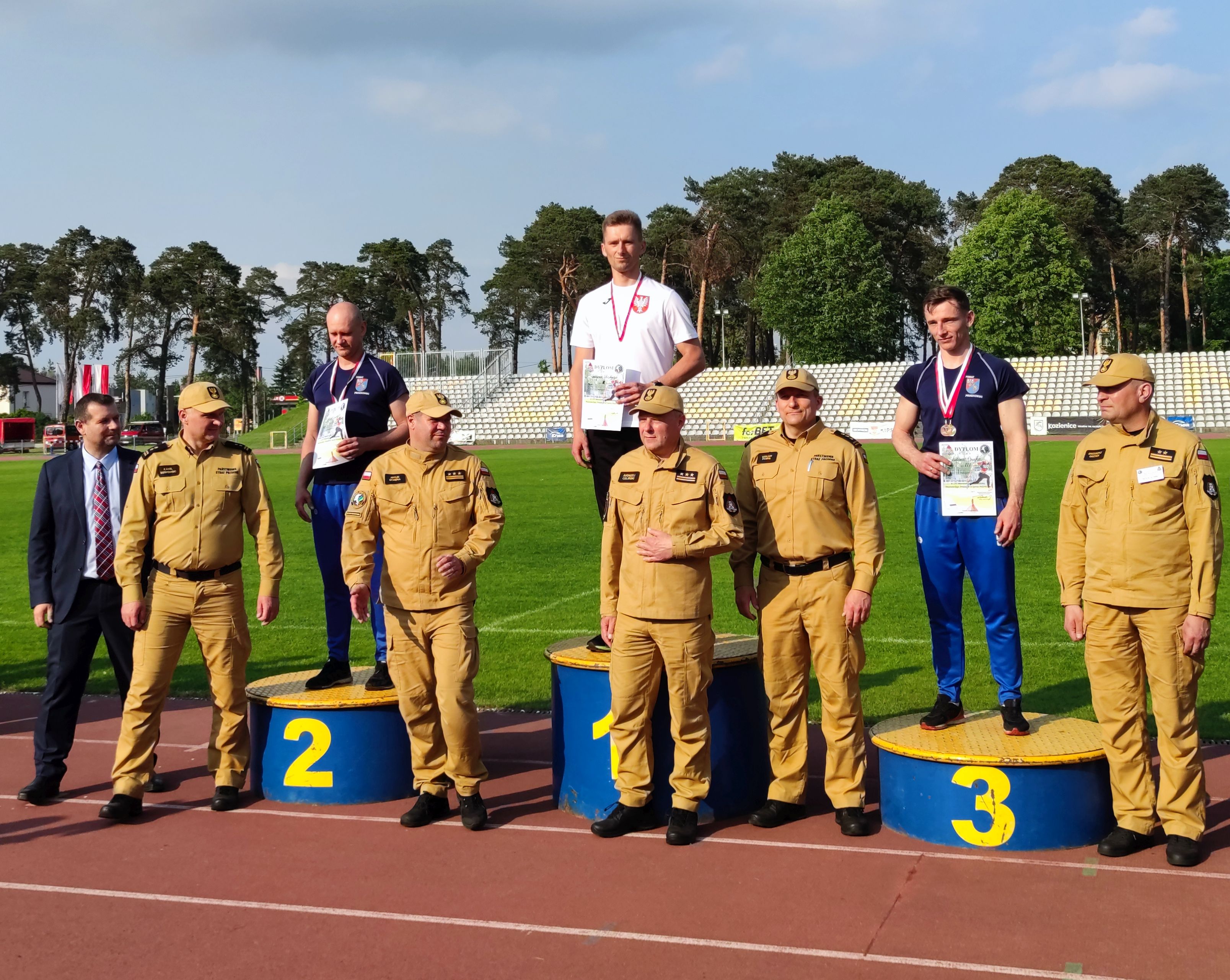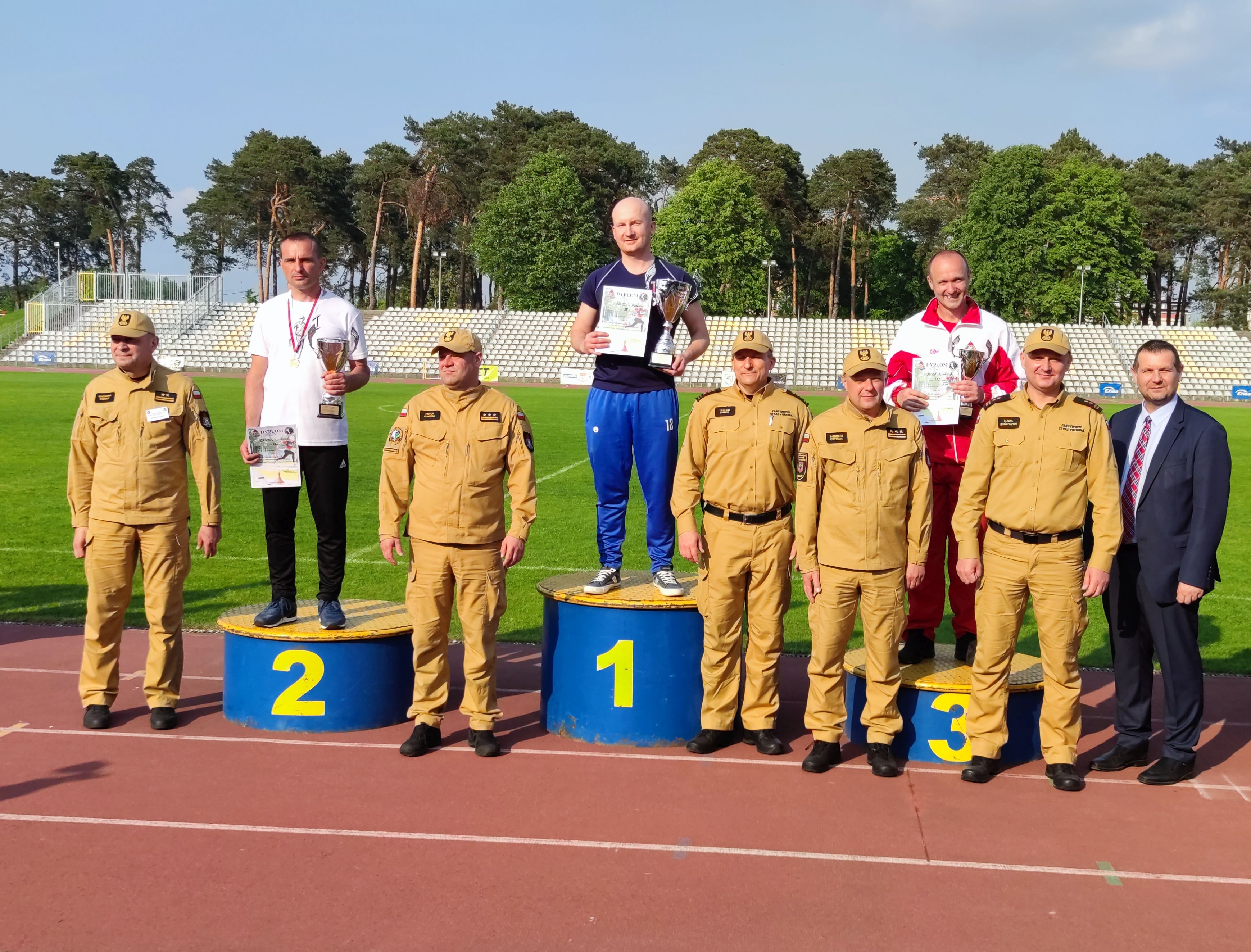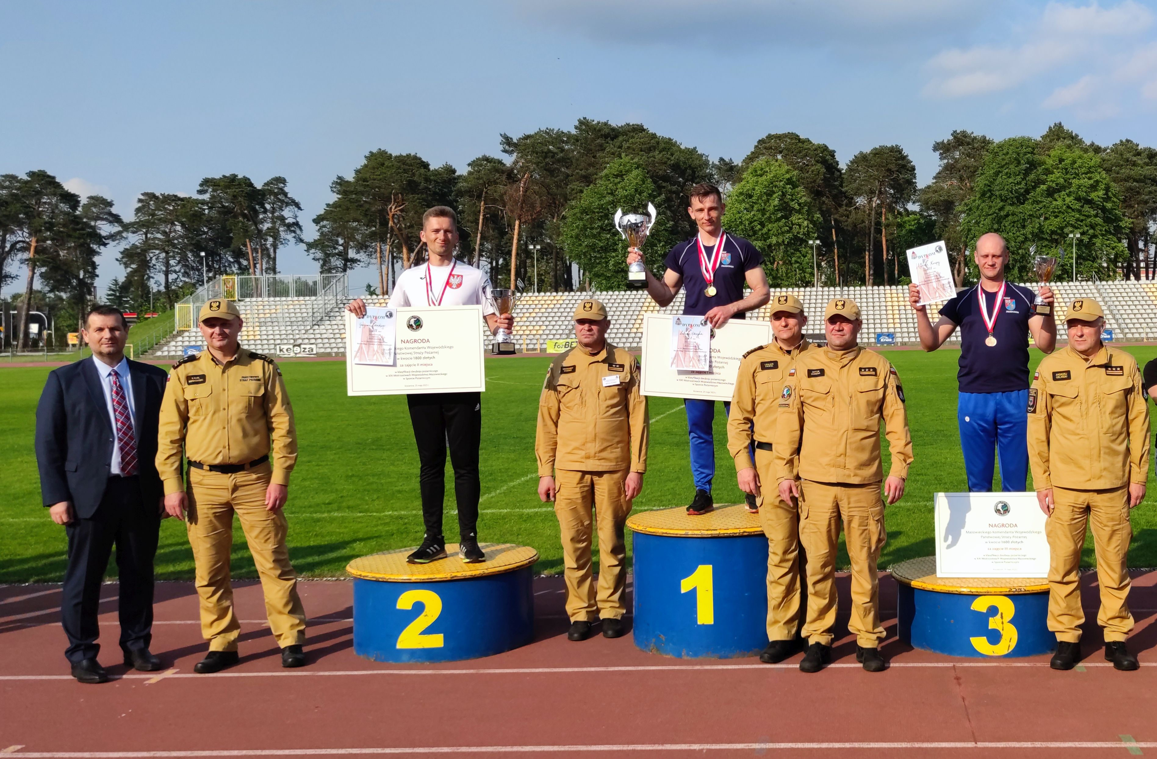Po pełnym sportowych emocji dniu, w ceremonii zakończenia mistrzostw uczestniczył st. bryg. Artur Gonera - Zastępca Mazowieckiego Komendanta Wojewódzkiego PSP oraz komendanci miejscy/powiatowi PSP, którzy towarzyszyli swoim drużynom.