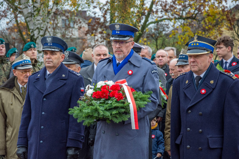 Uroczysty apel rozpoczął się od odśpiewania hymnu narodowego, odczytania apelu poległych i salwy honorowej. Nastęnie zebrani goście złożyli wiązanki i znicze pamięci pod Pomnikiem Wolności.