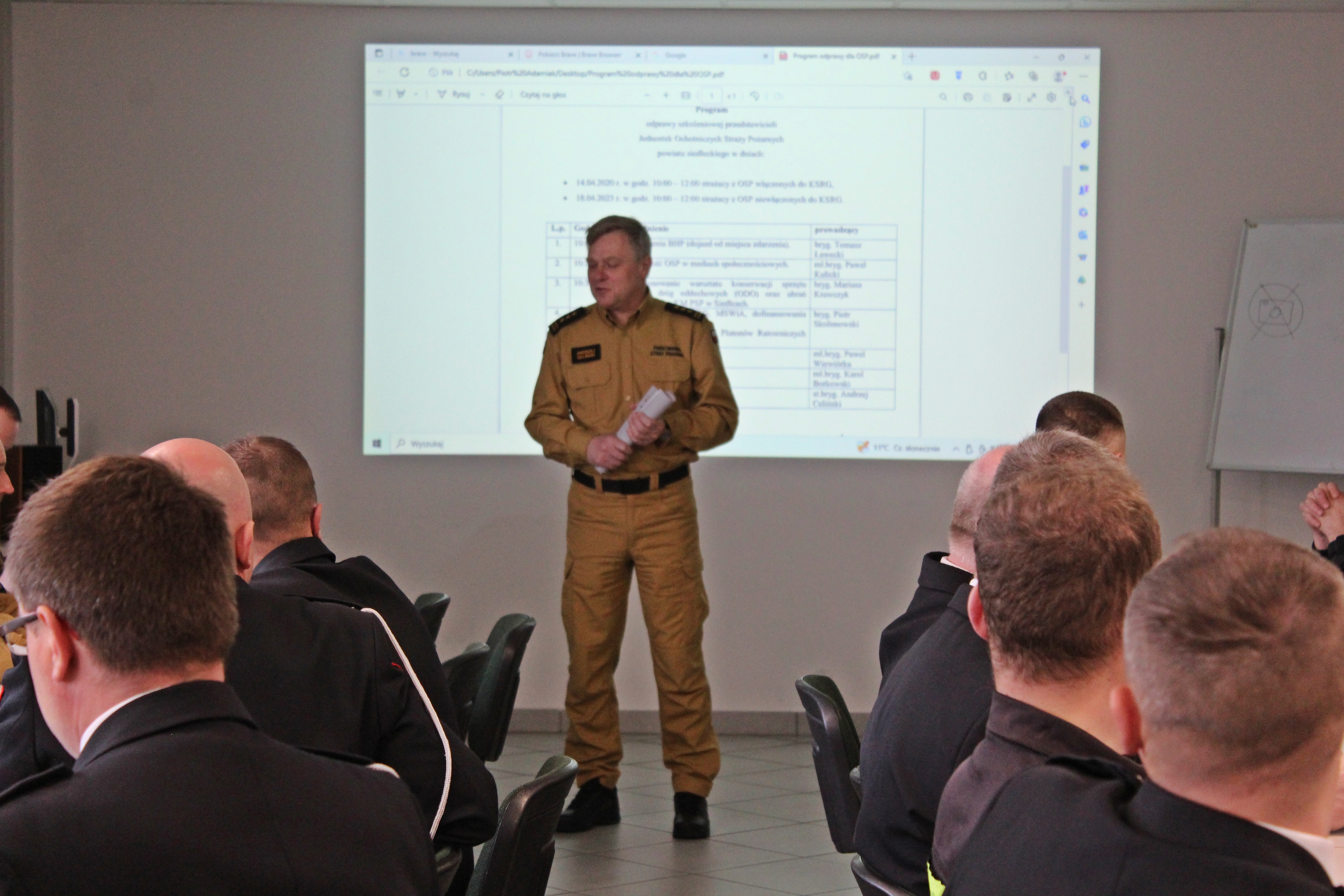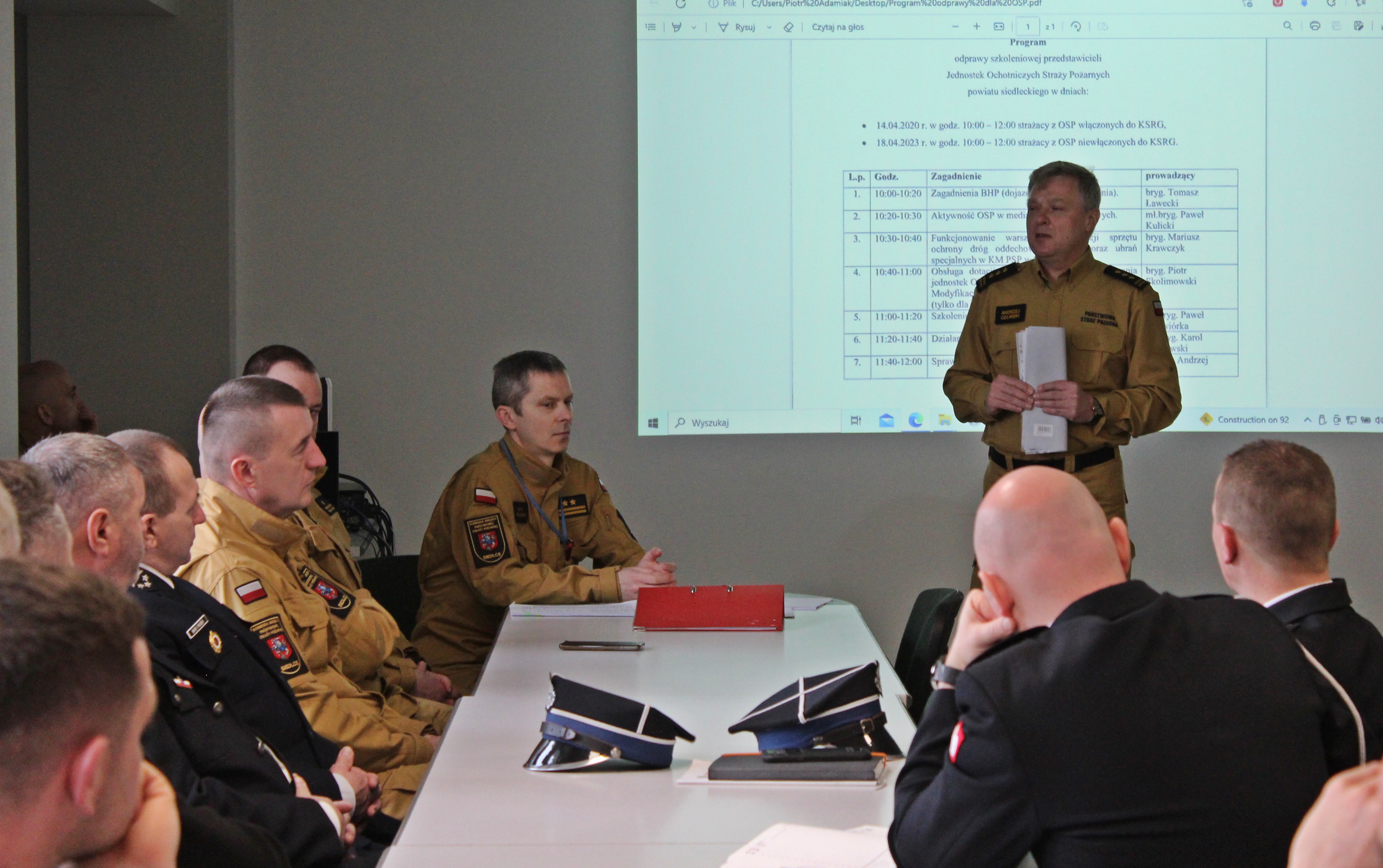 14 kwietnia 2023 roku w Komendzie Miejskiej Państwowej Straży Pożarnej w Siedlcach odbyła się odprawa szkoleniowa z przedstawicielami jednostek ochotniczych straży pożarnych z terenu powiatu siedleckiego, włączonych do Krajowego Systemu Ratowniczo-Gaśniczego.