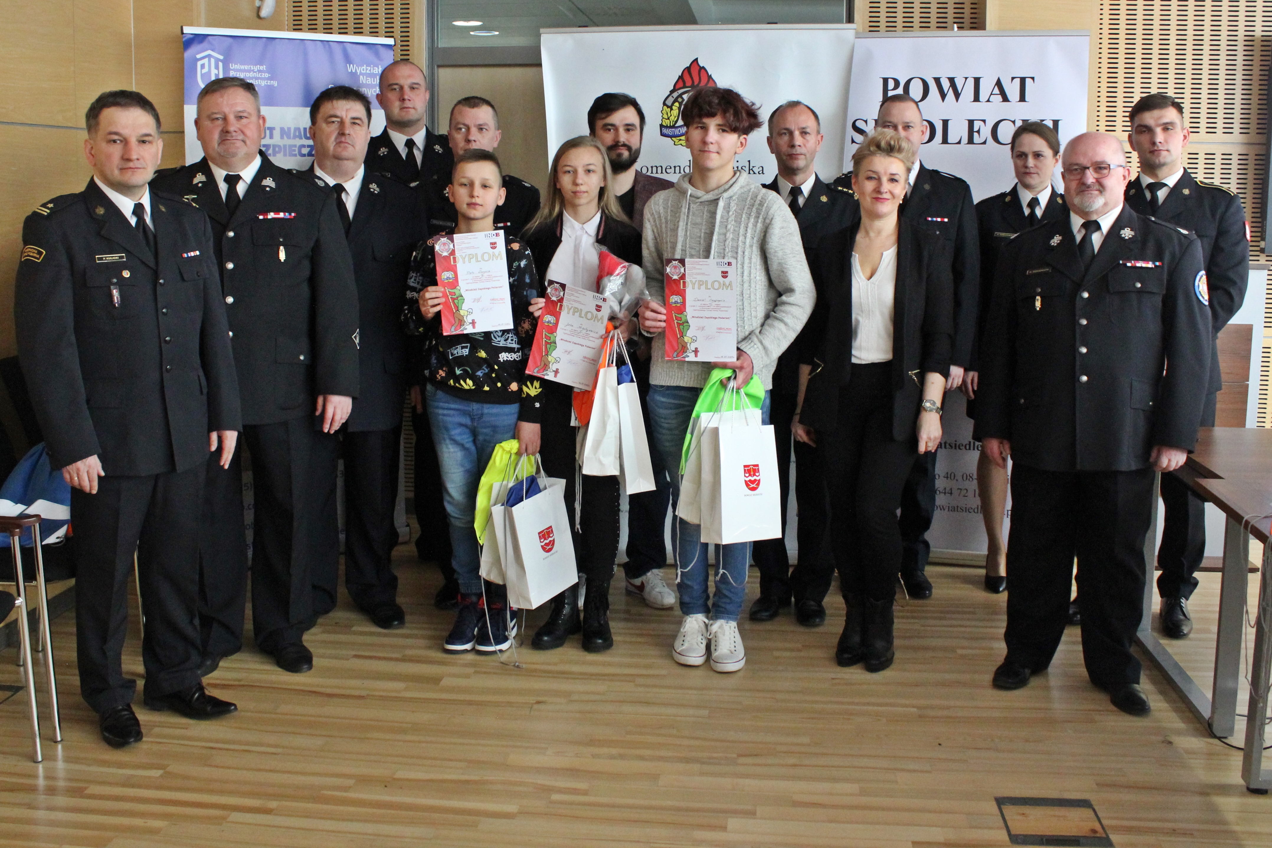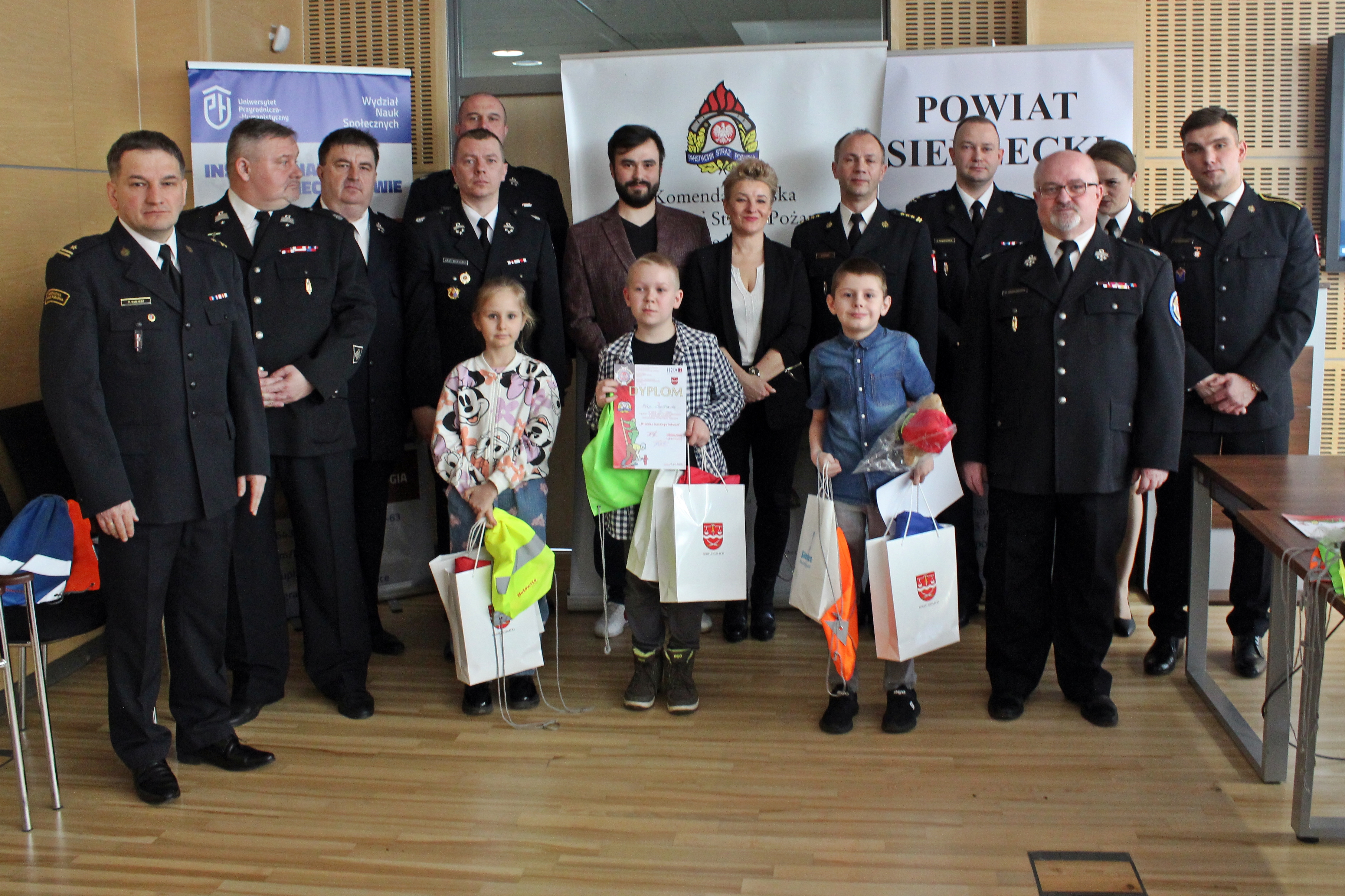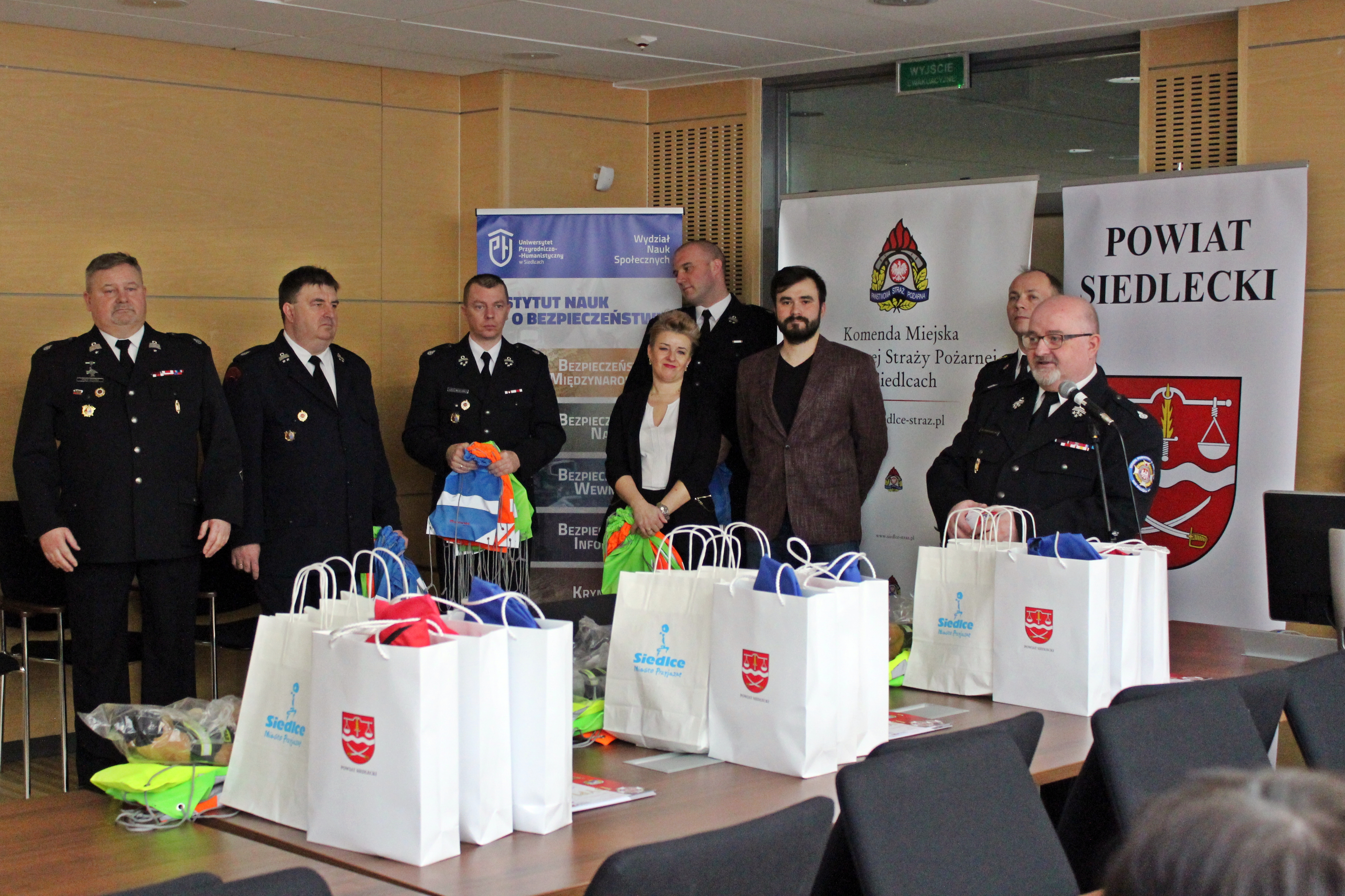 Nagrody wręczyli: st. bryg. Waldemar Rostek – Zastępca Komendanta Miejskiego Państwowej Straży Pożarnej w Siedlcach, dh Wojciech Grzegorczyk – Prezes Zarządu Oddziału Powiatowego Związku OSP RP w Siedlcach, dr Radosław Korneć - Prodziekan Wydziału Nauk Społecznych UPH, Pani Ewa Januszczyk - Delegatura Urzędu Marszałkowskiego w Siedlcach.