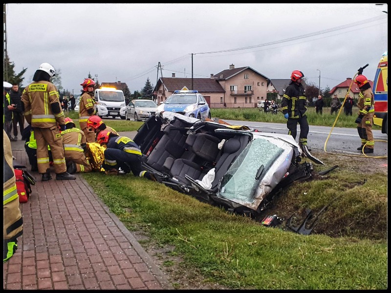 O godzinie 04:50 do Stanowiska Kierowania Komendanta Miejskiego PSP w Siedlcach wpłynęło zgłoszenie o dachowaniu samochodu osobowego na drodze krajowej nr 2 w miejscowości Krzesk-Królowa Niwa (gm. Zbuczyn). Samochód, po dachowaniu, stał na poboczu drogi na kołach, w pojeździe podróżowało 4 osoby, wszyscy samodzielnie opuścili pojazd. Działania strażaków polegały na zabezpieczeniu miejsca zdarzenia oraz samochodu pod względem pożarowym oraz udzieleniu poszkodowanym kwalifikowanej pierwszej pomocy do czasu przyjazdu zespołu Państwowego Ratownictwa Medycznego. W działaniach ratowniczych brał udział 1 zastęp PSP – 6 strażaków oraz 4 zastępy OSP – 18 strażaków.