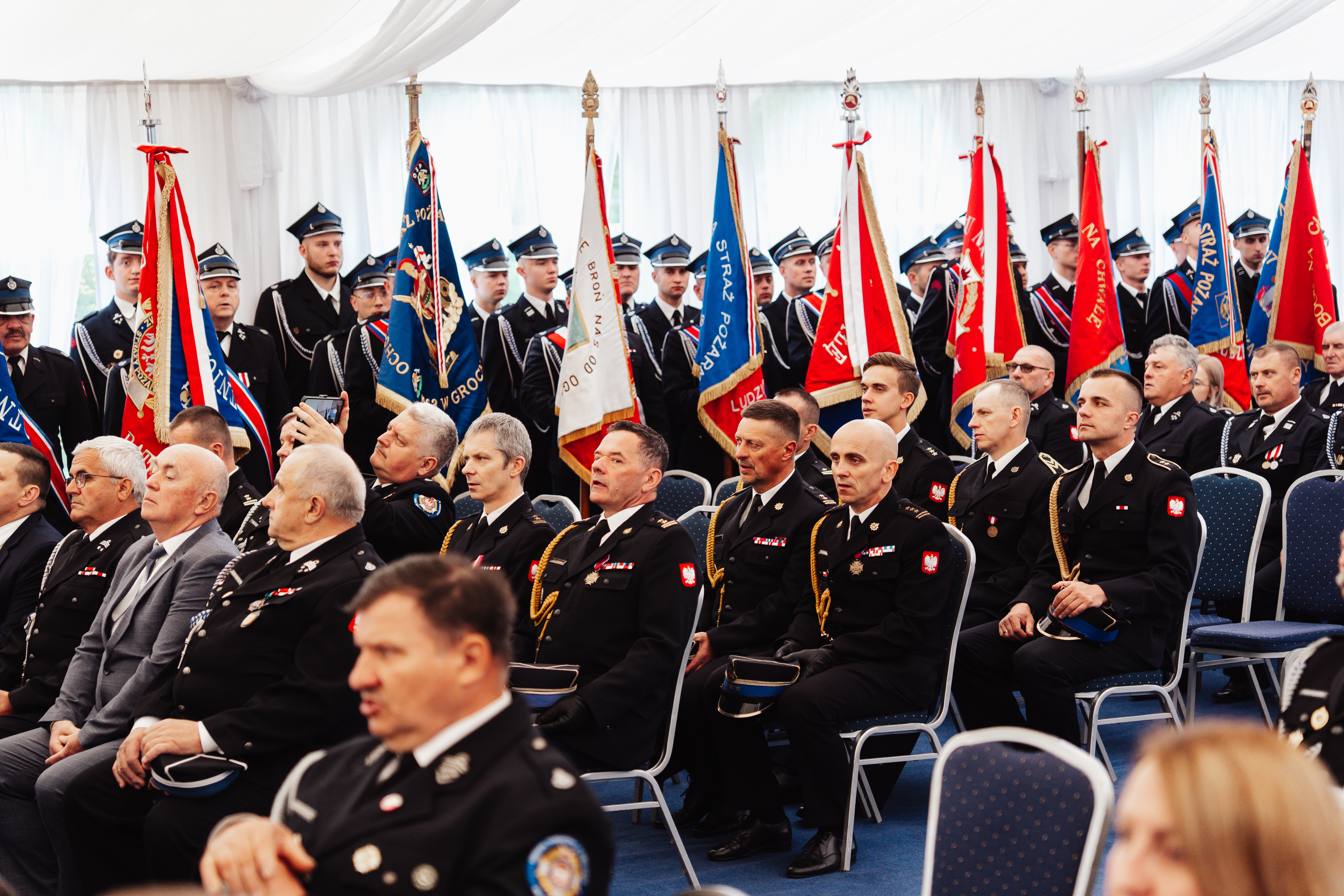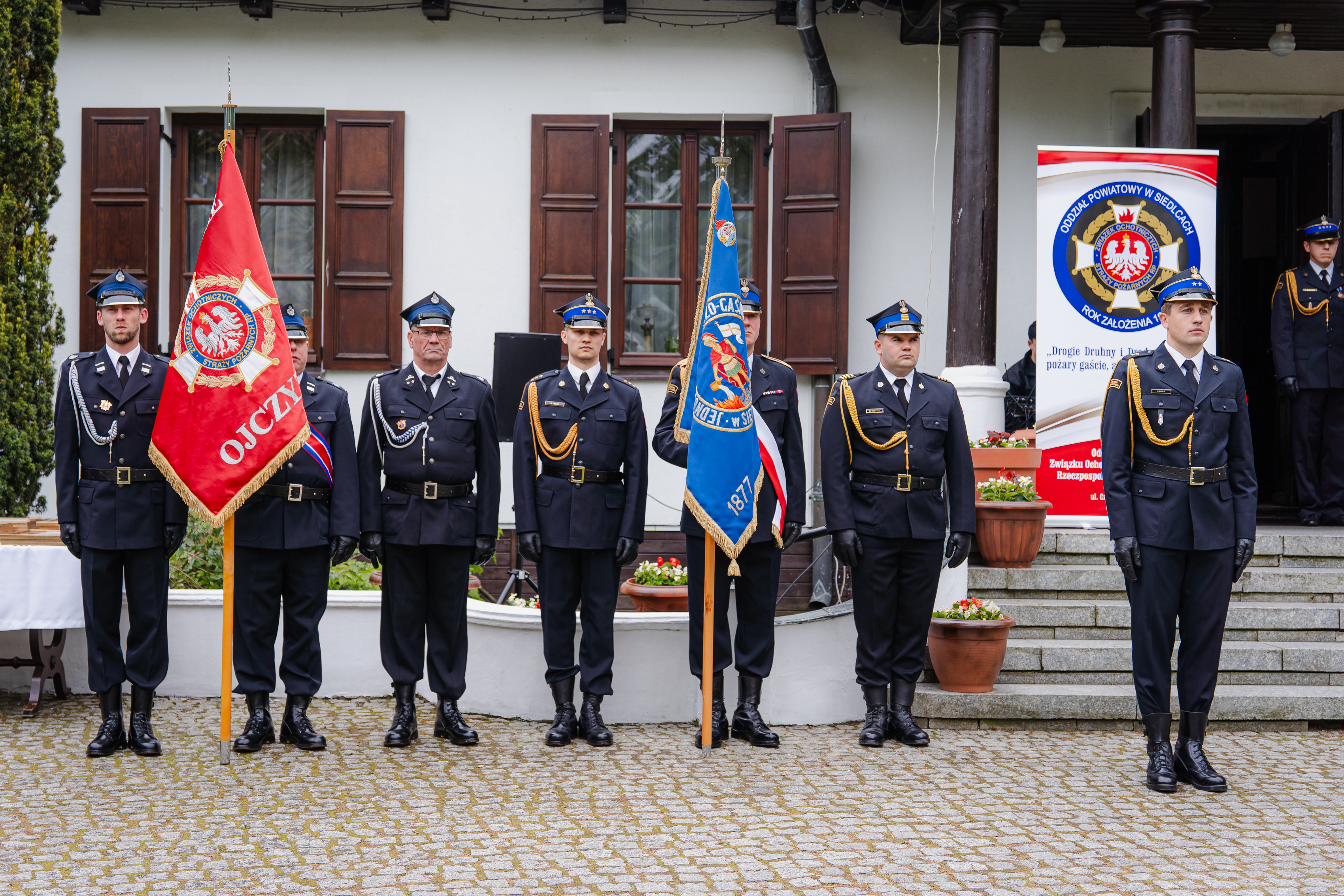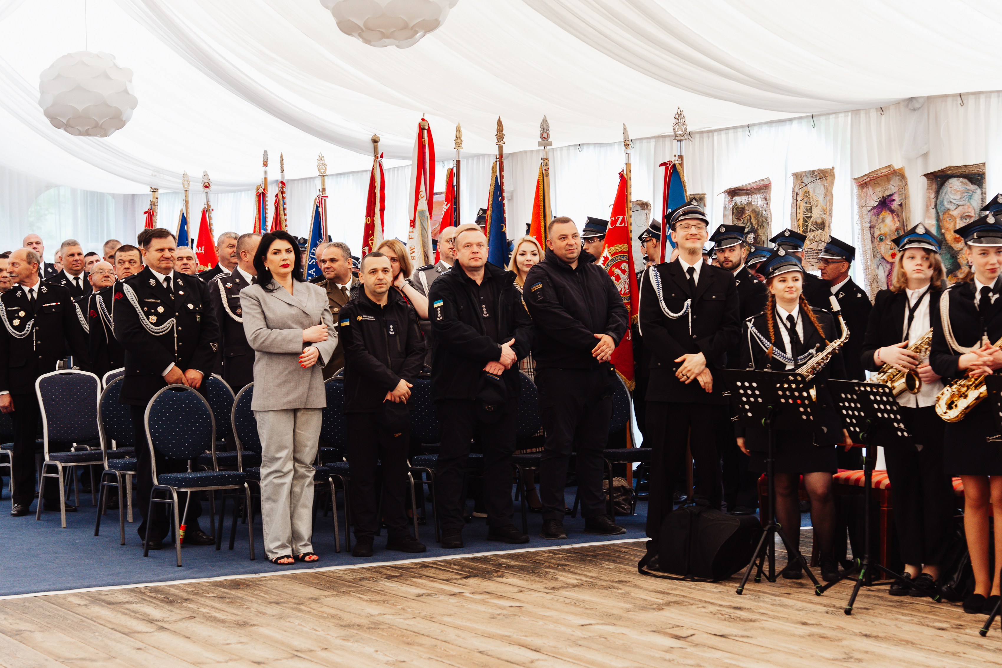 Swoją obecnością zaszczycili nas również przedstawiciele władz samorządowych z terenu powiatu siedleckiego, zaprzyjaźnione służby mundurowe, funkcjonariuszki i funkcjonariusze PSP, druhny i druhowie OSP, poczty sztandarowe, delegacja zaprzyjaźnionych strażaków z Ukrainy oraz zaproszeni goście.