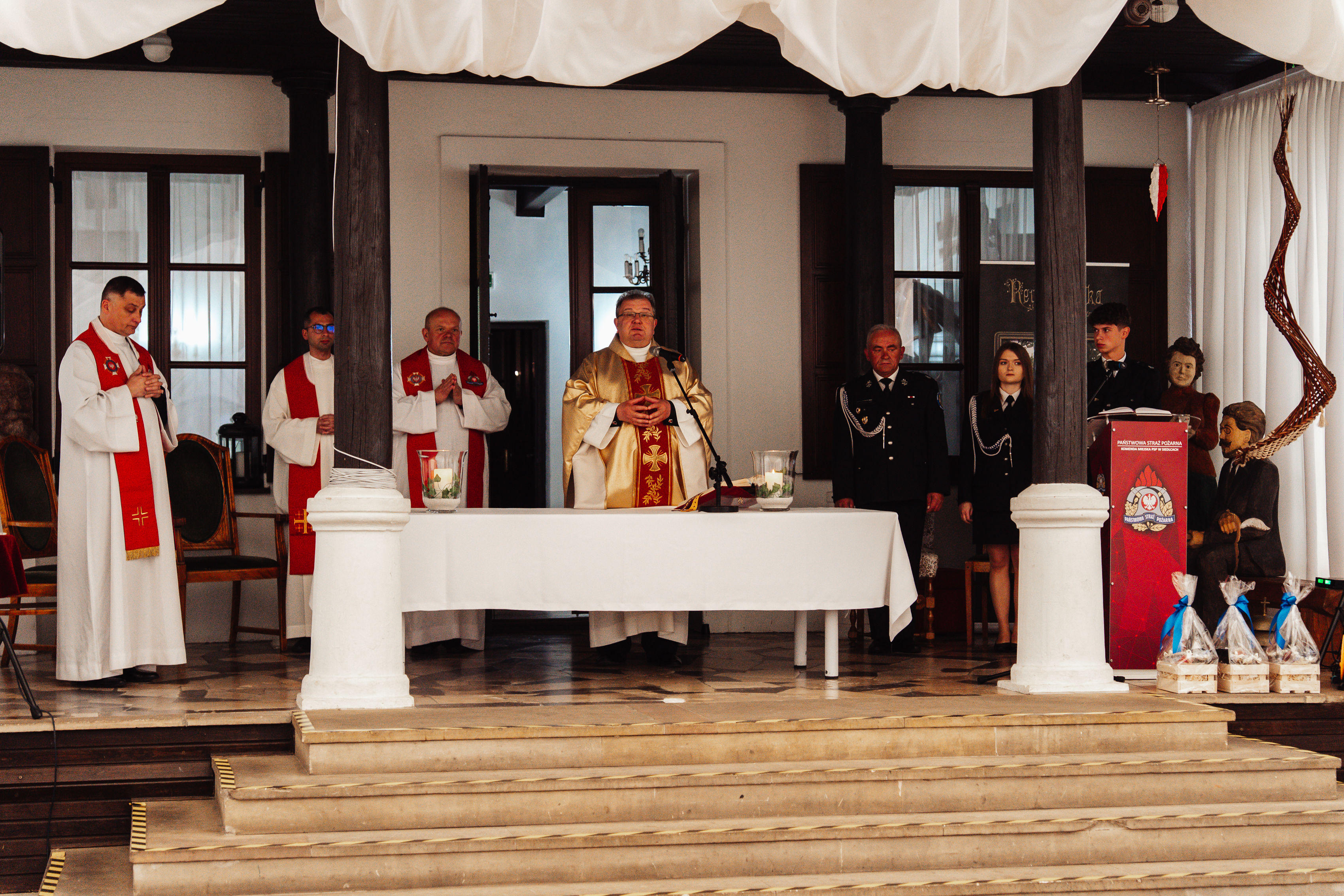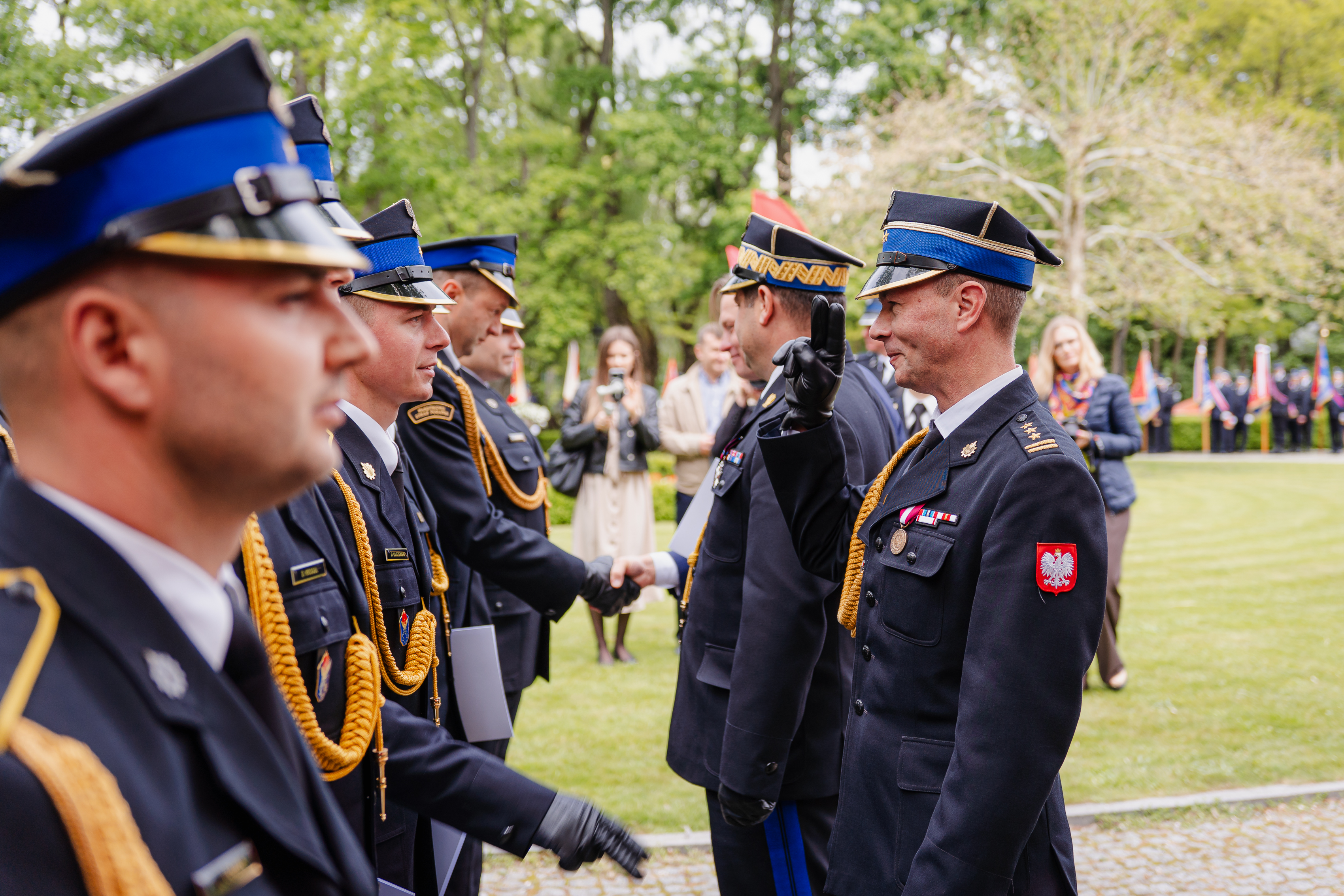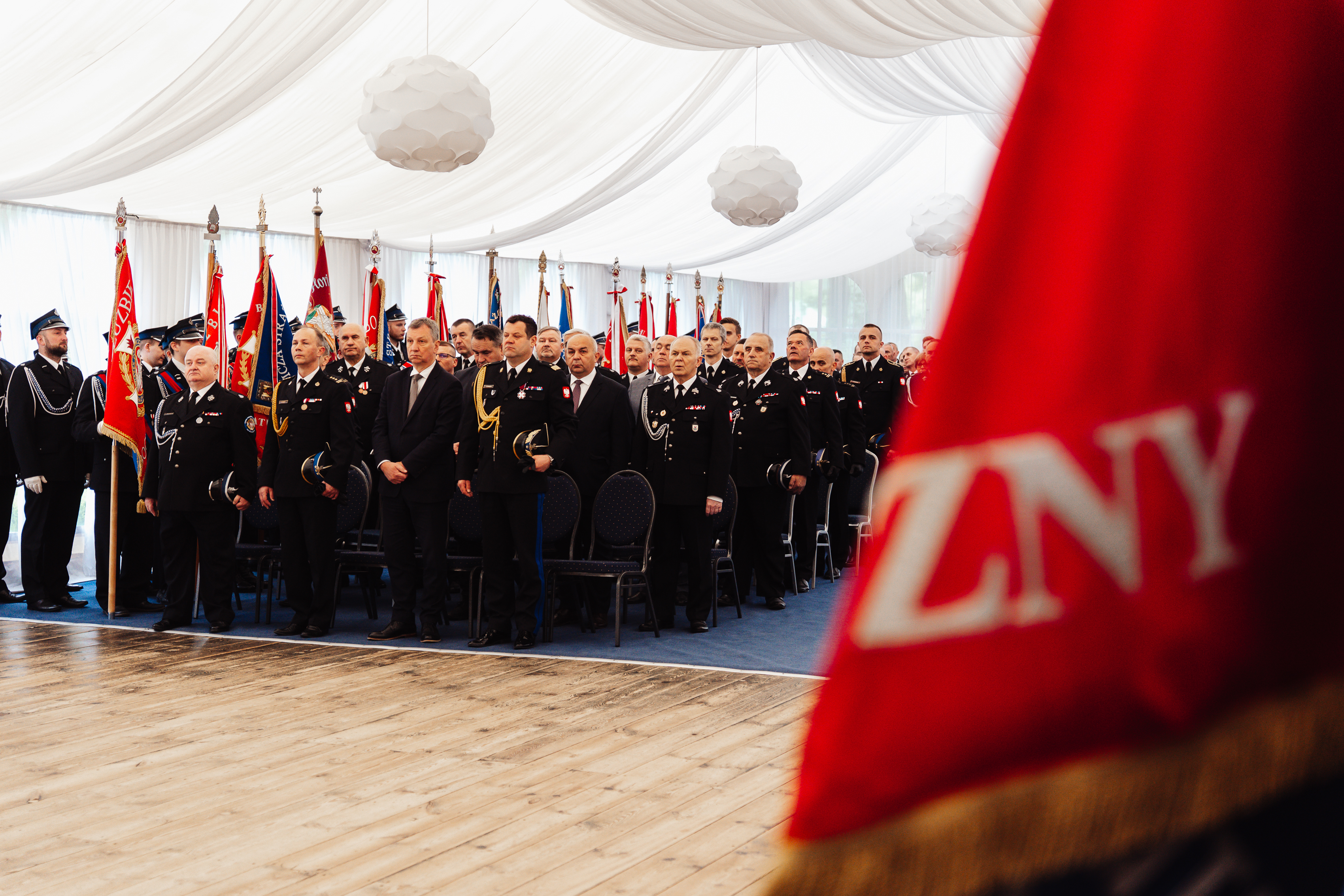 Swoją obecnością zaszczycili nas również przedstawiciele władz samorządowych z terenu powiatu siedleckiego, zaprzyjaźnione służby mundurowe, funkcjonariuszki i funkcjonariusze PSP, druhny i druhowie OSP, poczty sztandarowe, delegacja zaprzyjaźnionych strażaków z Ukrainy oraz zaproszeni goście.