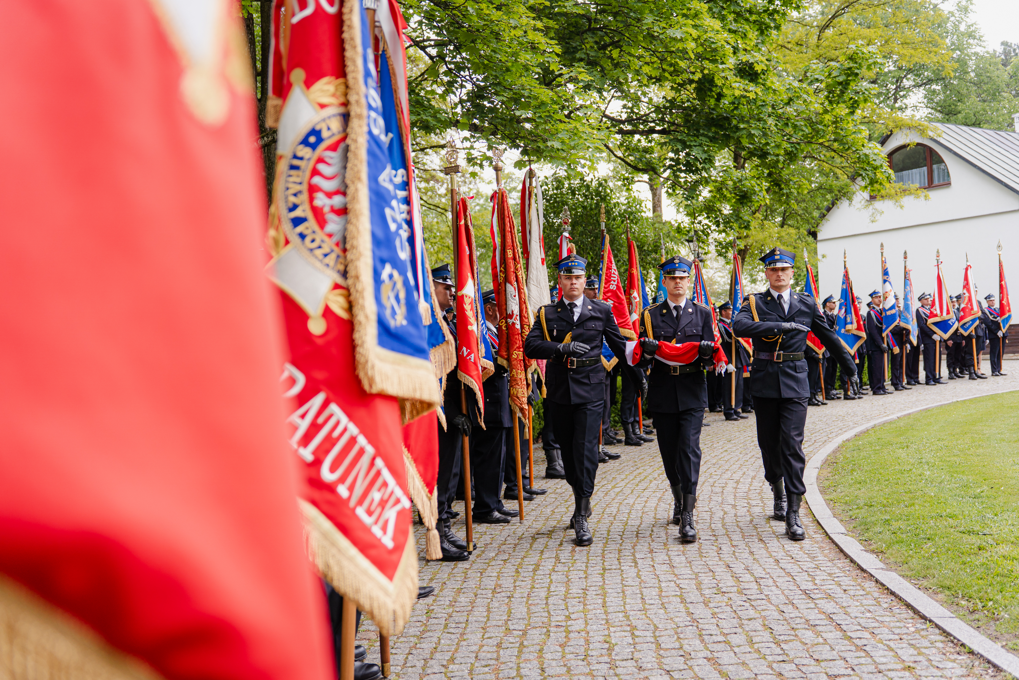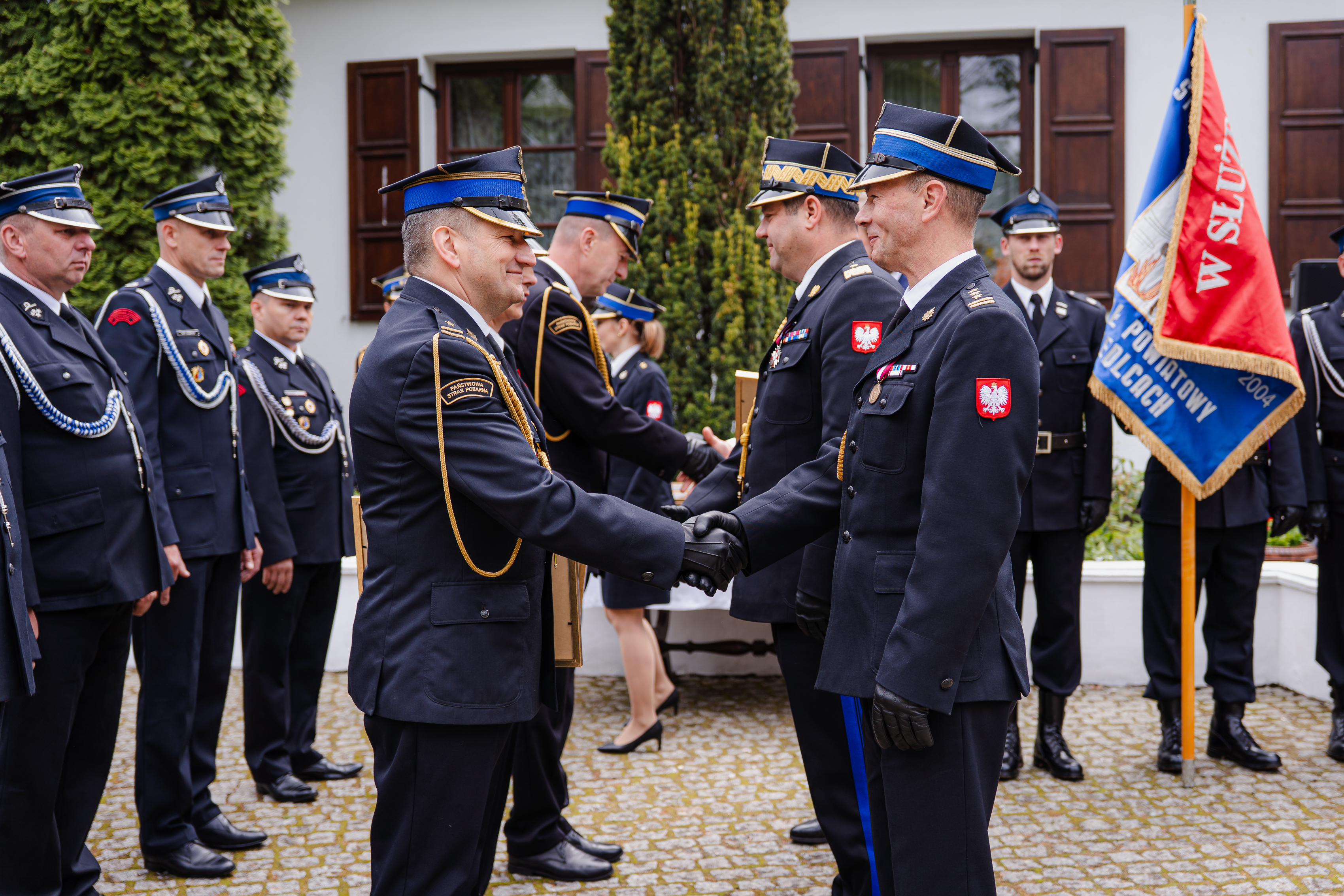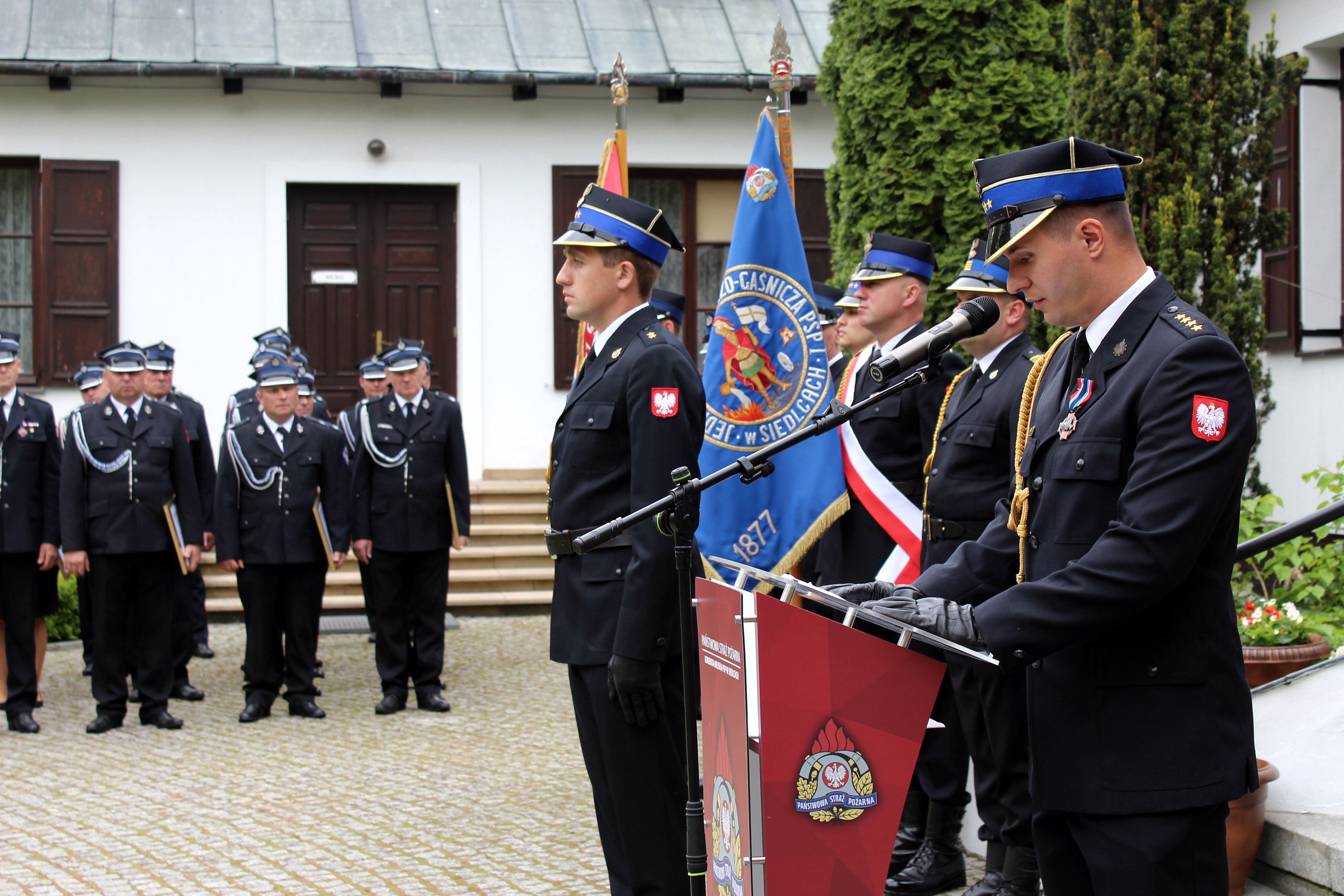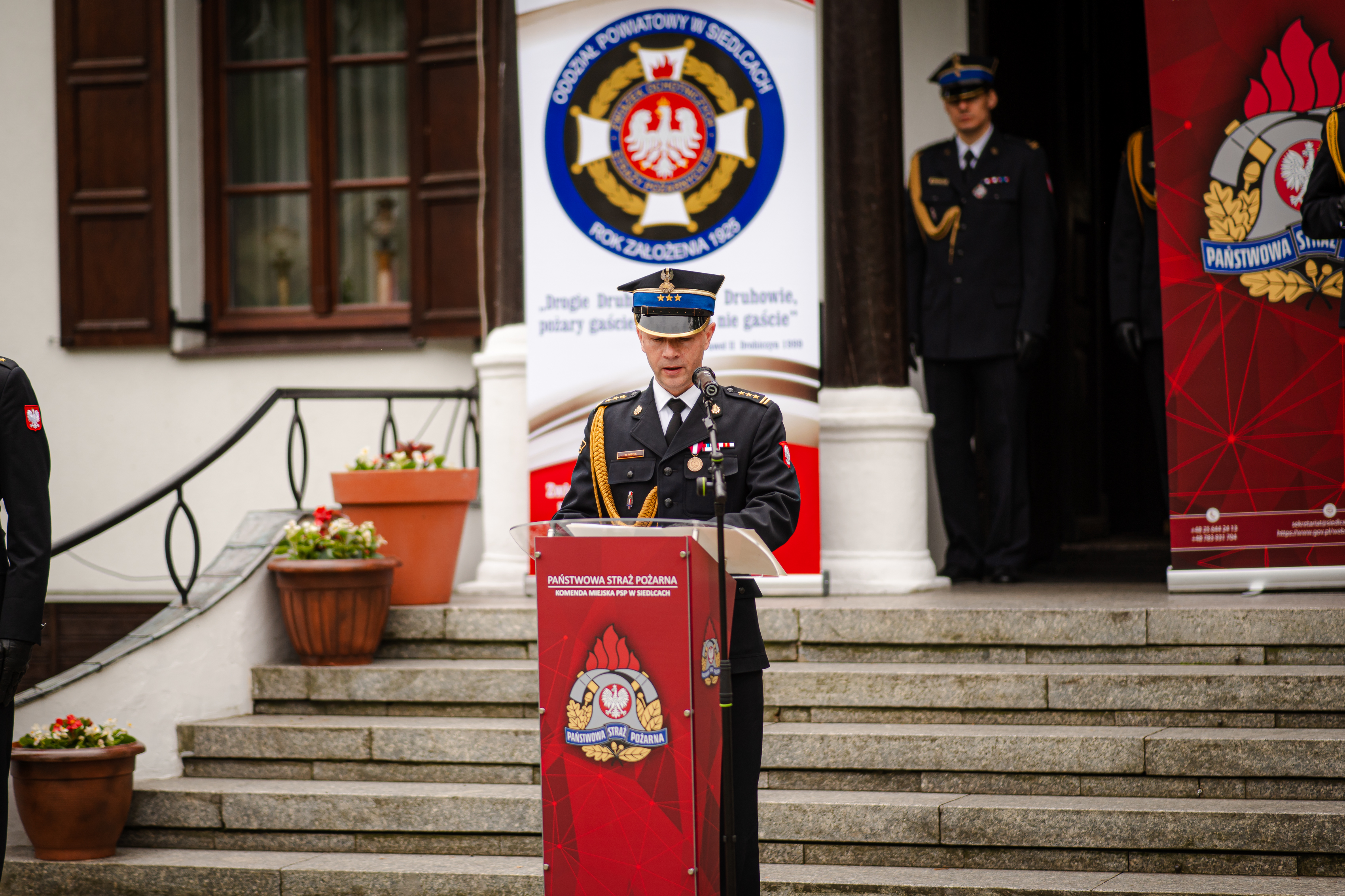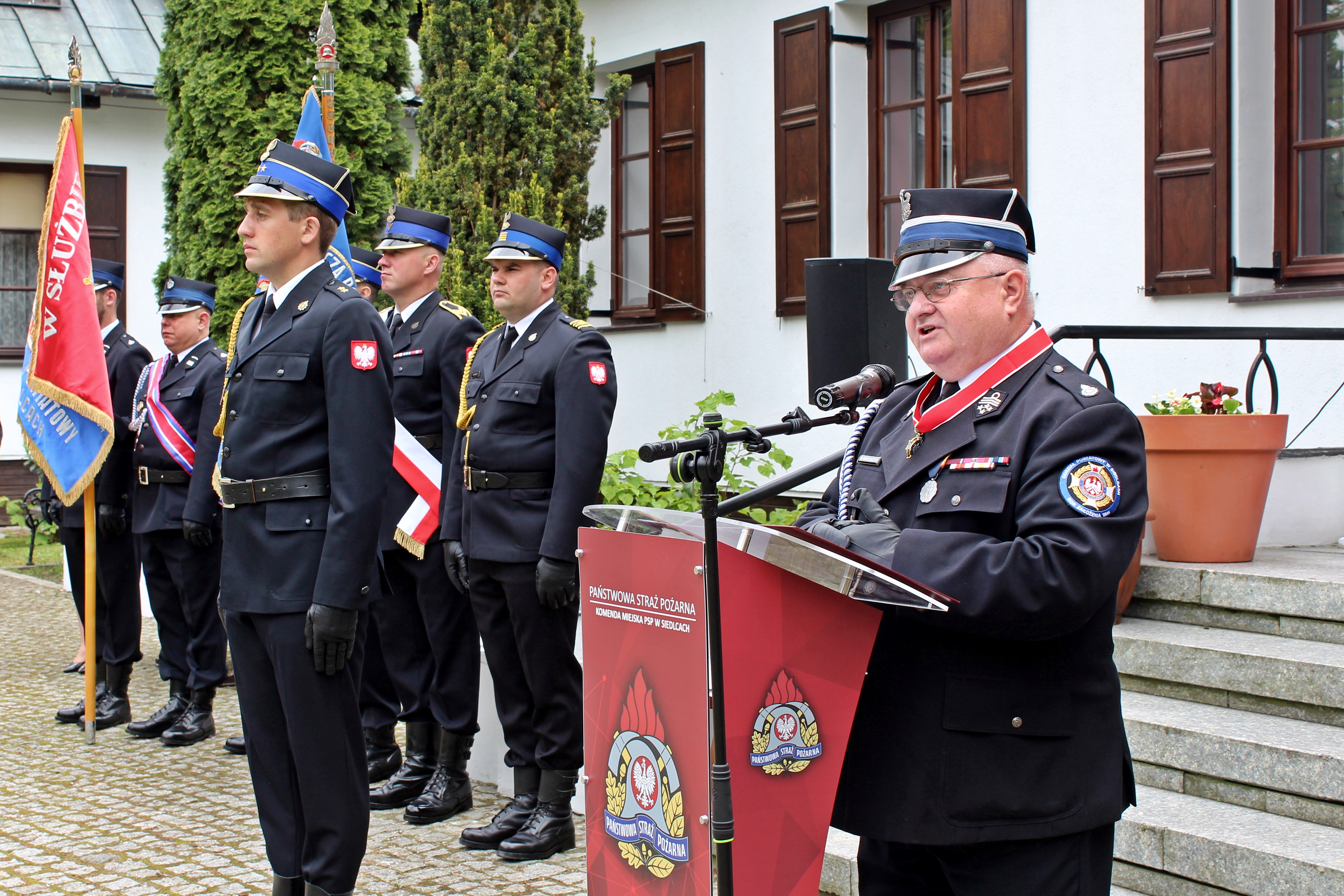 Uroczystość zakończyła się odprowadzeniem sztandaru Komendy Miejskiej PSP w Siedlcach i sztandarów towarzyszących oraz meldunkiem o zakończeniu apelu.