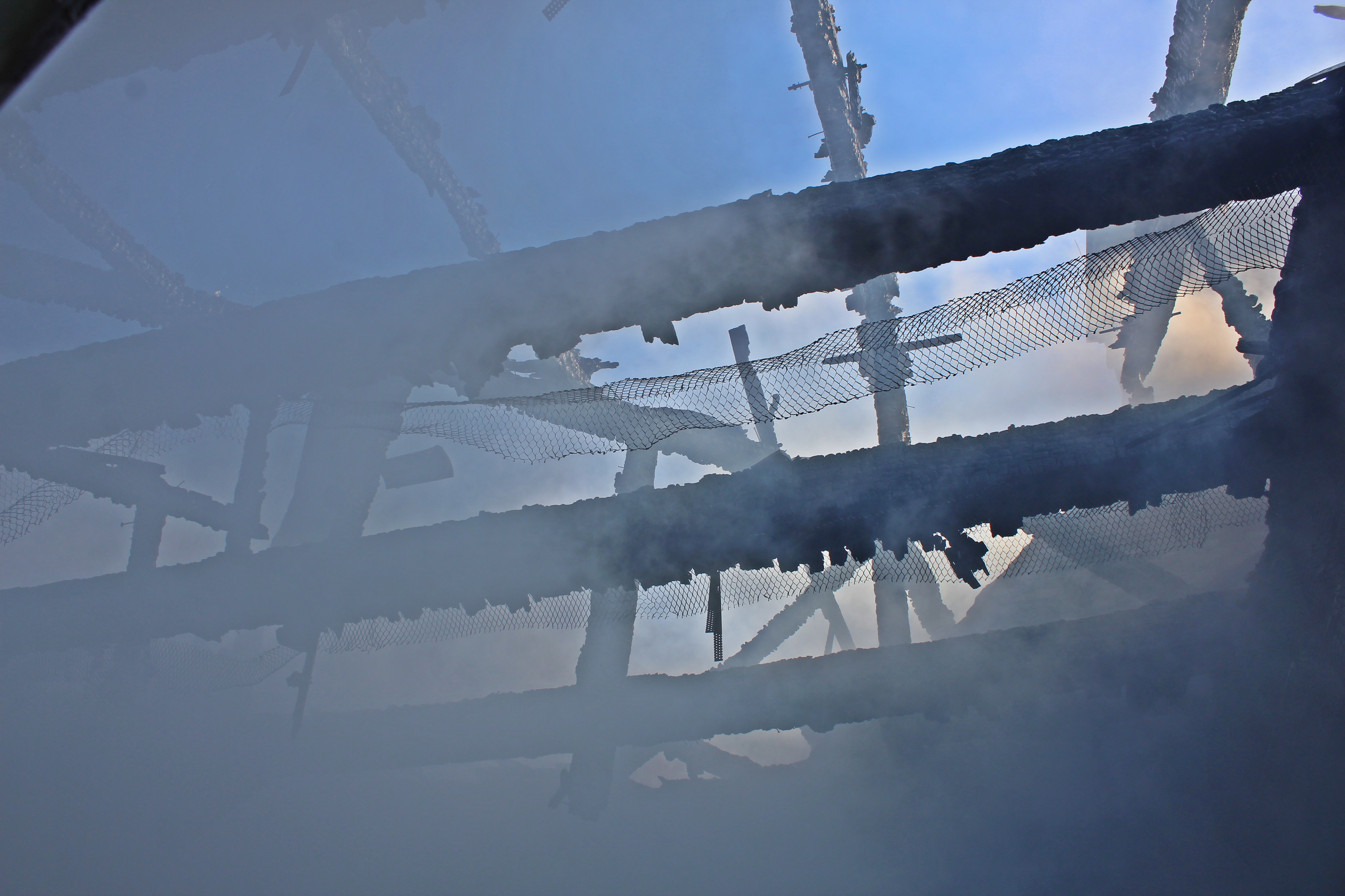 Ogień objął dach budynku, poddasze nieużytkowe, a także pomieszczenia na pierwszej kondygnacji na skutek przepalenia i częściowego zawalenia się stropu. W momencie wybuchu pożaru nikt nie przebywał w budynku i nie został poszkodowany.