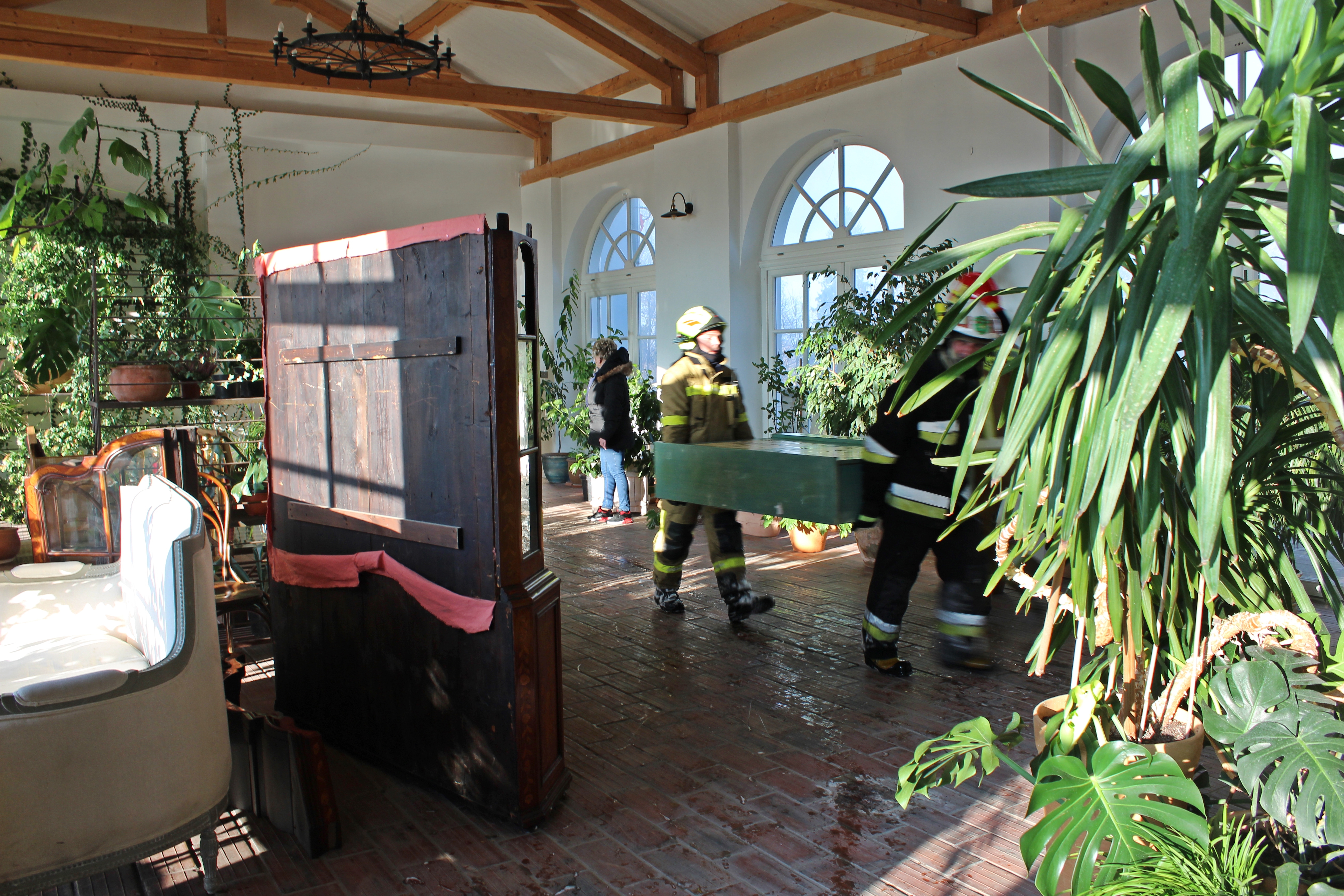Strażacy prowadzili również ewakuację mienia o znacznej wartości, tj. zabytkowych mebli i wyposażenia, straty są jednak bardzo duże.