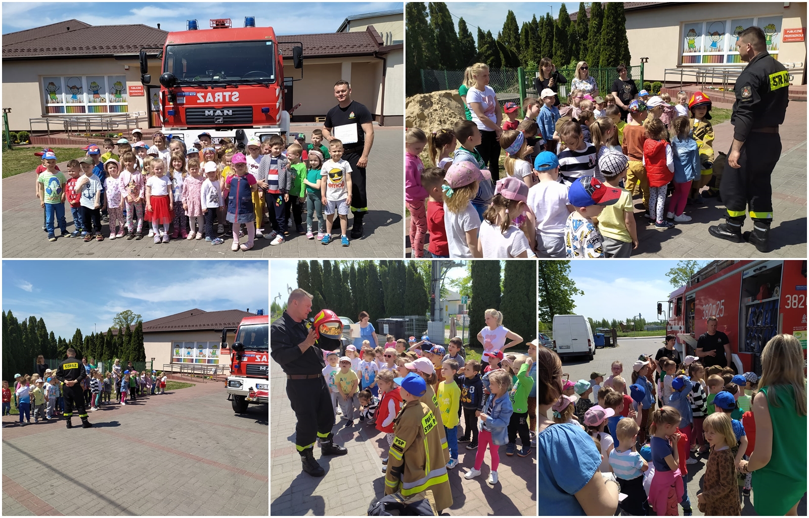 Podczas zajęć dzieci dowiedziały się w jakich okolicznościach można wezwać straż pożarną i utrwaliły sobie numer alarmowy – 112. Dzieci wysłuchały prelekcji na temat niebezpieczeństw i zagrożeń pożarowych oraz jak zachować się w czasie pożaru.