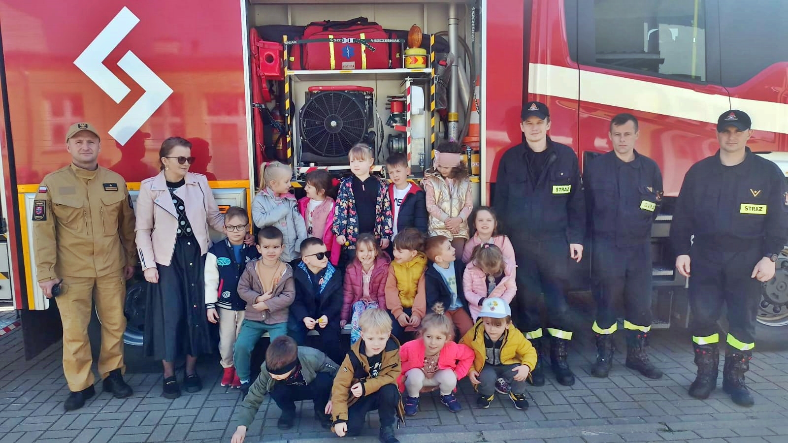 Podczas zajęć dzieci dowiedziały się w jakich okolicznościach można wezwać straż pożarną i utrwaliły sobie numer alarmowy – 112. Dzieci wysłuchały prelekcji na temat niebezpieczeństw i zagrożeń pożarowych oraz jak zachować się w czasie pożaru.