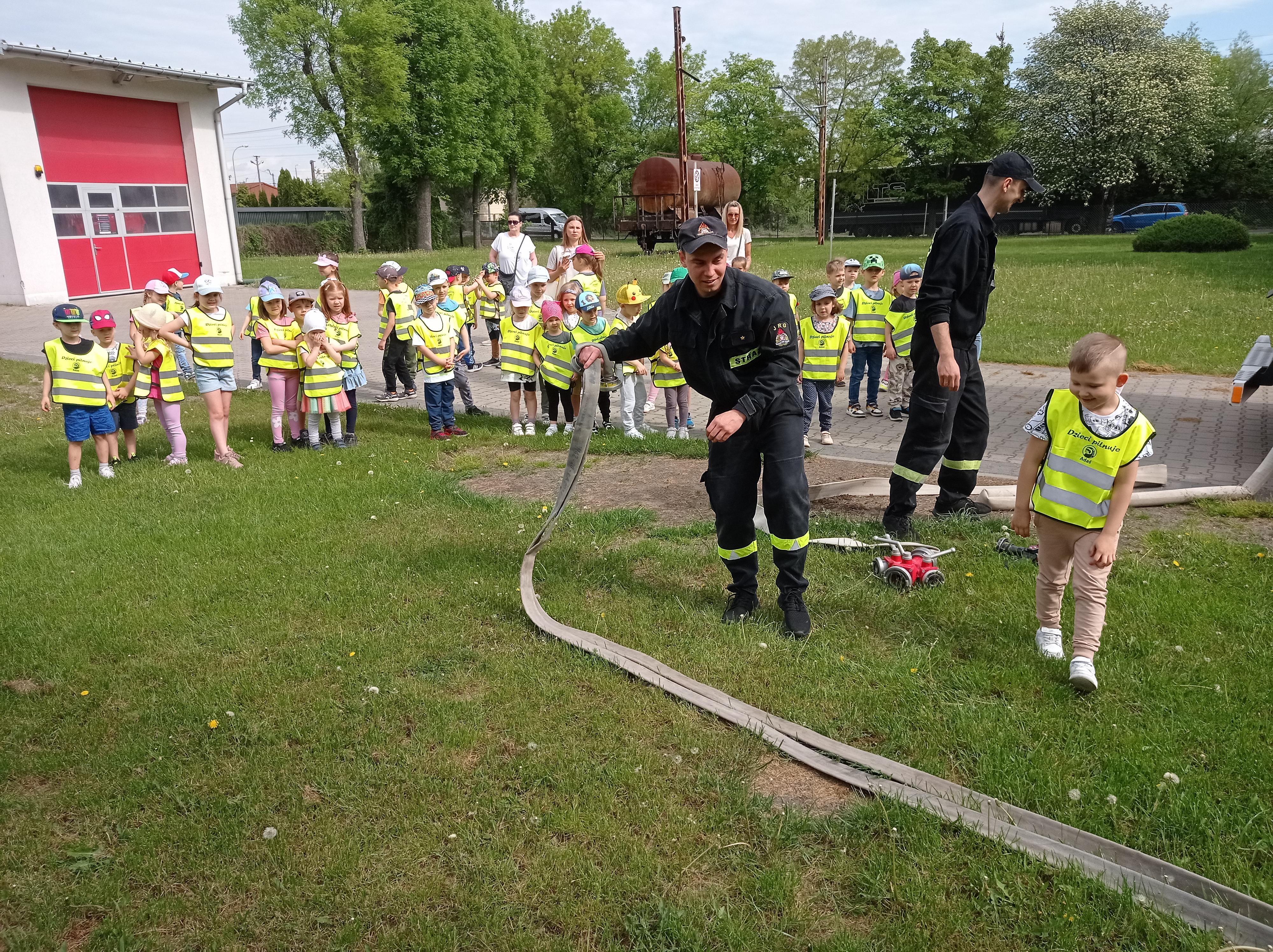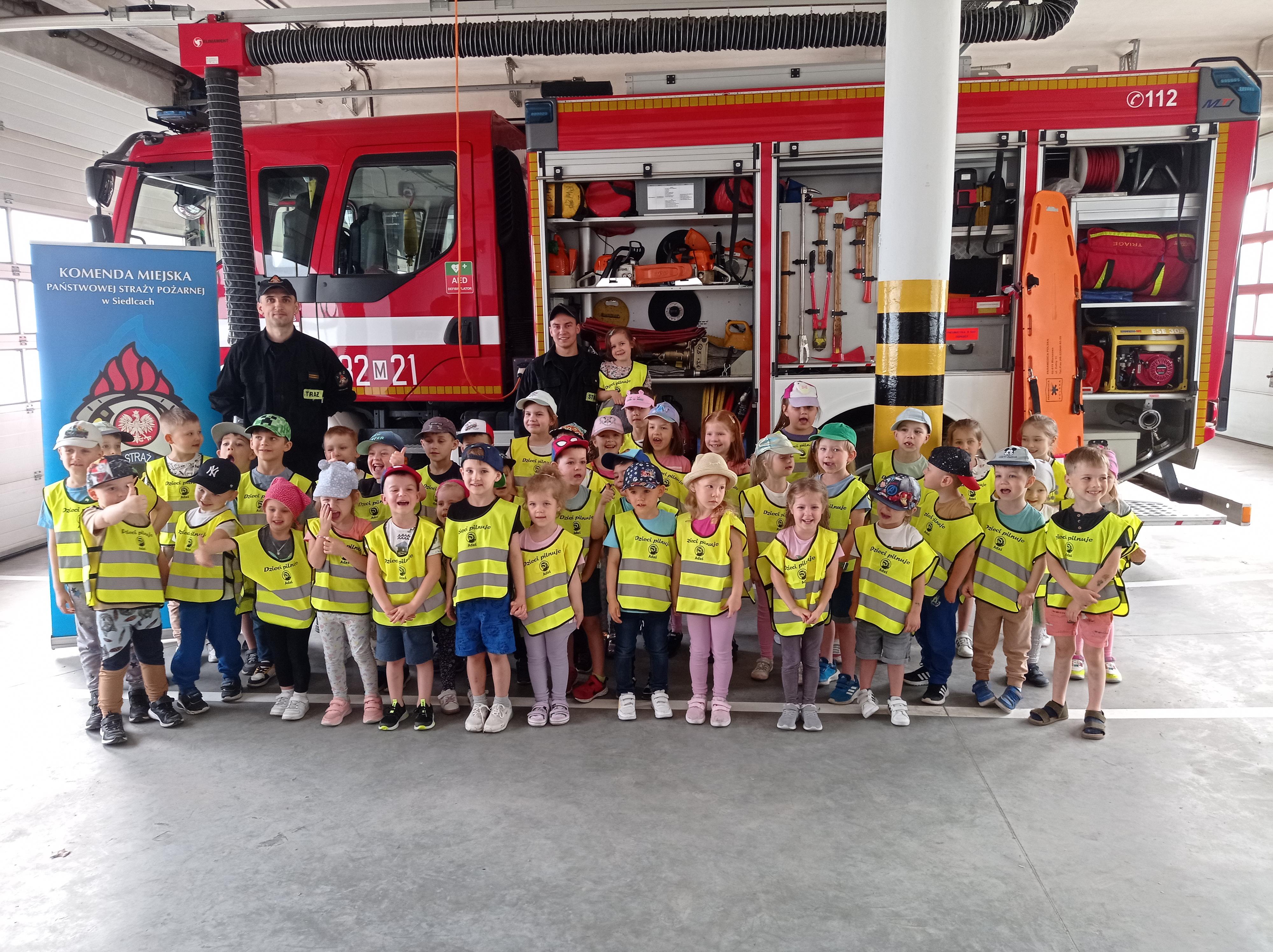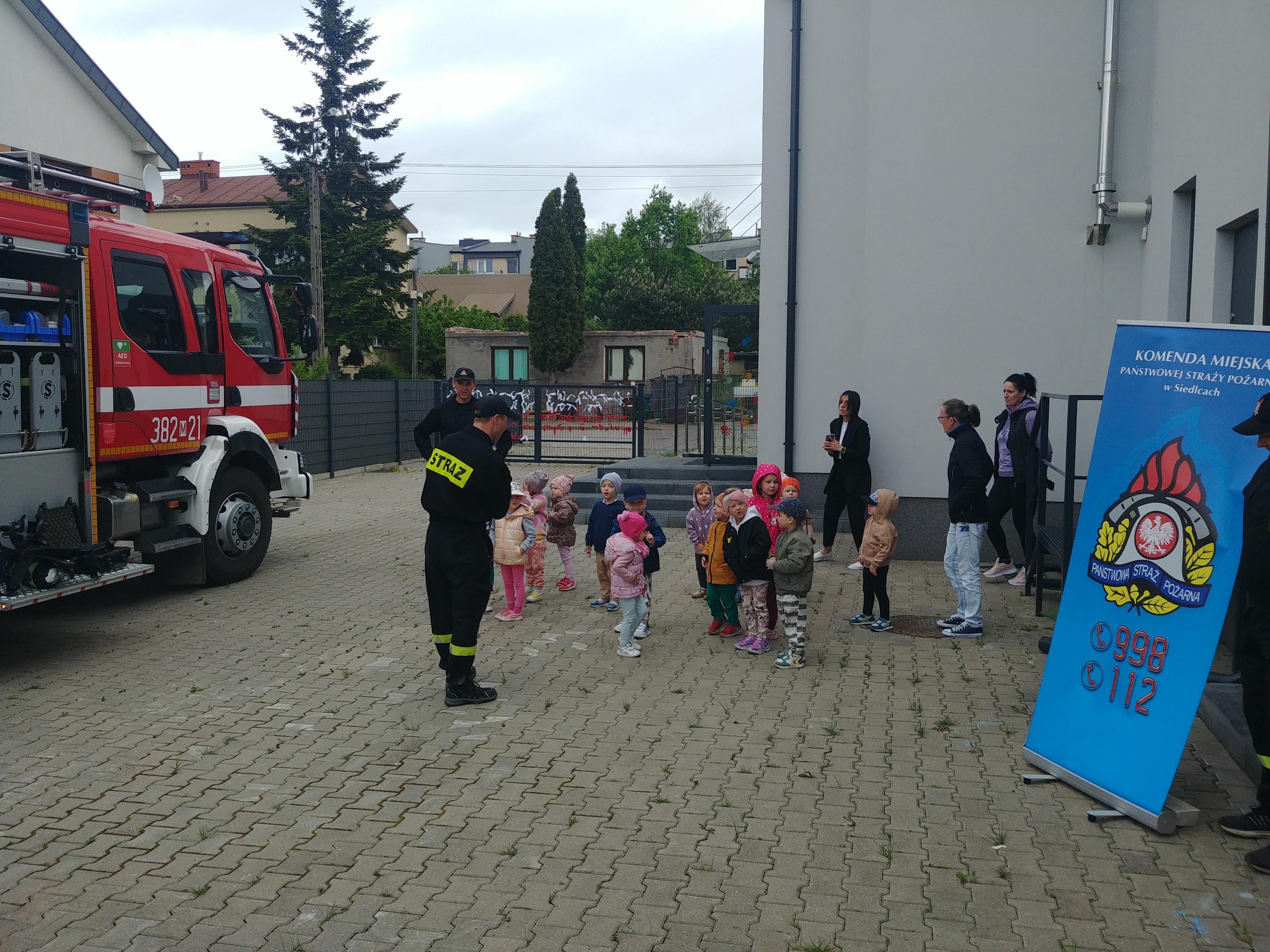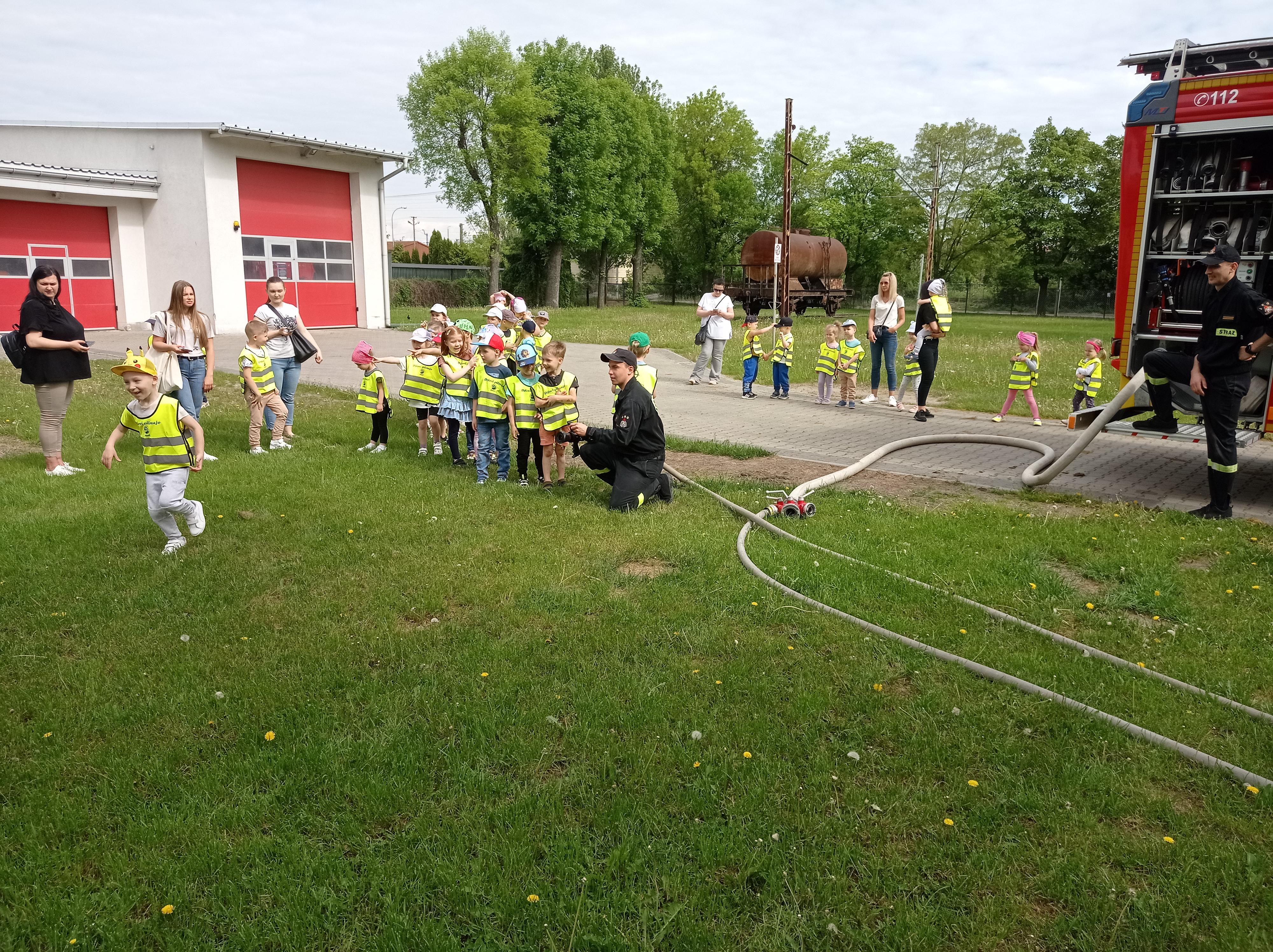 Nie lada atrakcją dla dzieci było zobaczenie wozu strażackiego wraz z wyposażeniem i utrwalenie zasad związanych z przekazywaniem informacji na numer alarmowy 112.