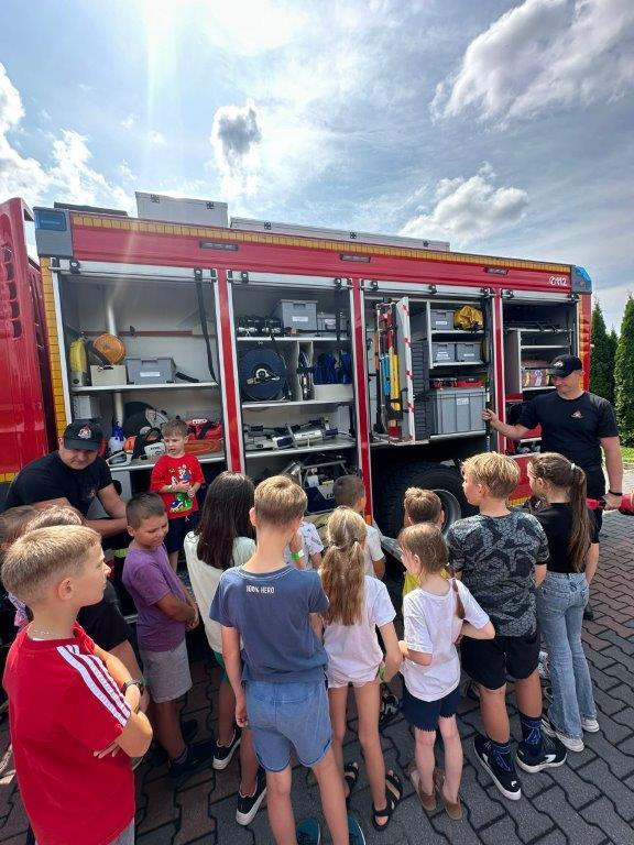 Podczas spotkania przypominano numery alarmowe, zasady bezpiecznego wypoczynku nad wodą, przeprowadzono pokazy strażackie z udziałem wozu strażackiego, dzieci poznały pracę strażaka oraz zaprezentowano sprzęt będący na wyposażeniu sprzętowym samochodu GCBA. W pokazach brało udział 20 dzieci i 5 opiekunów.