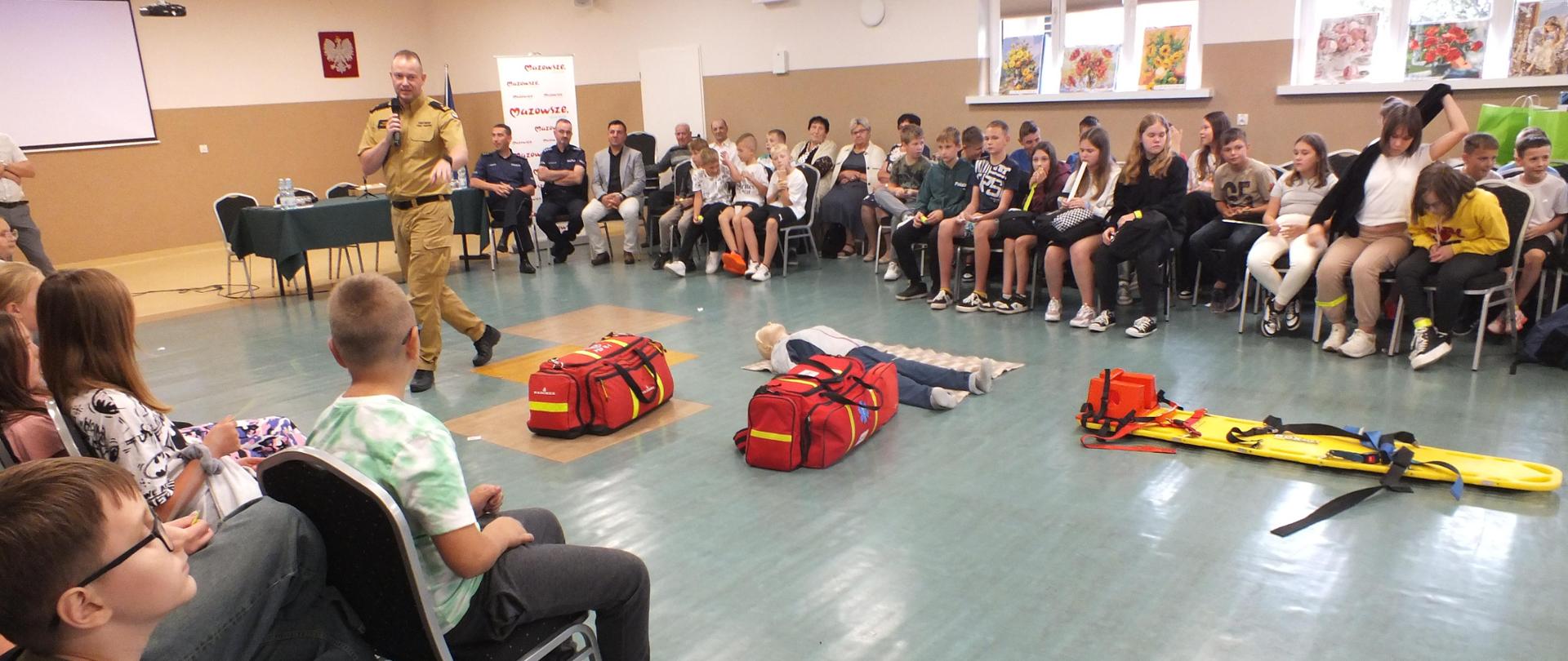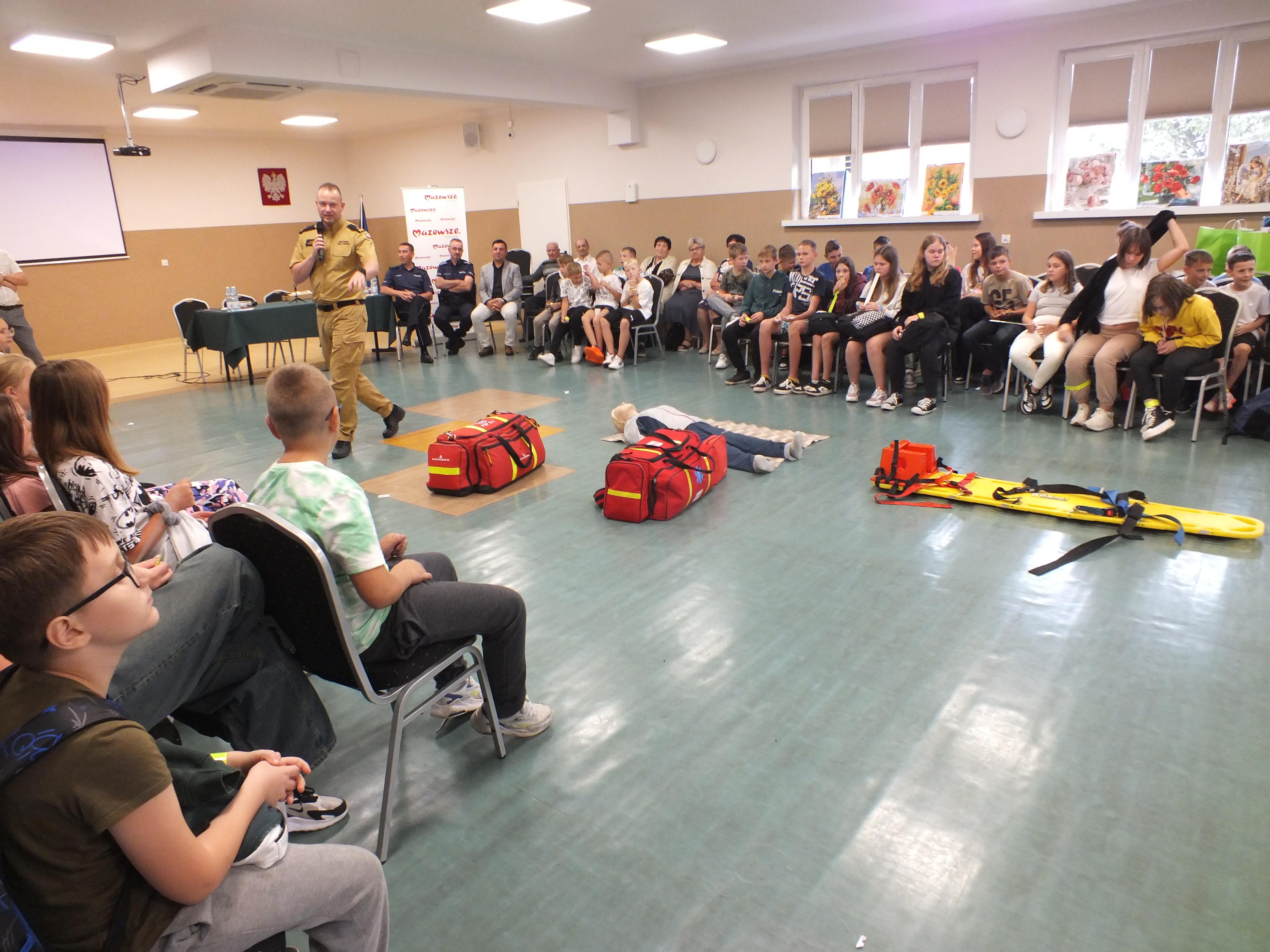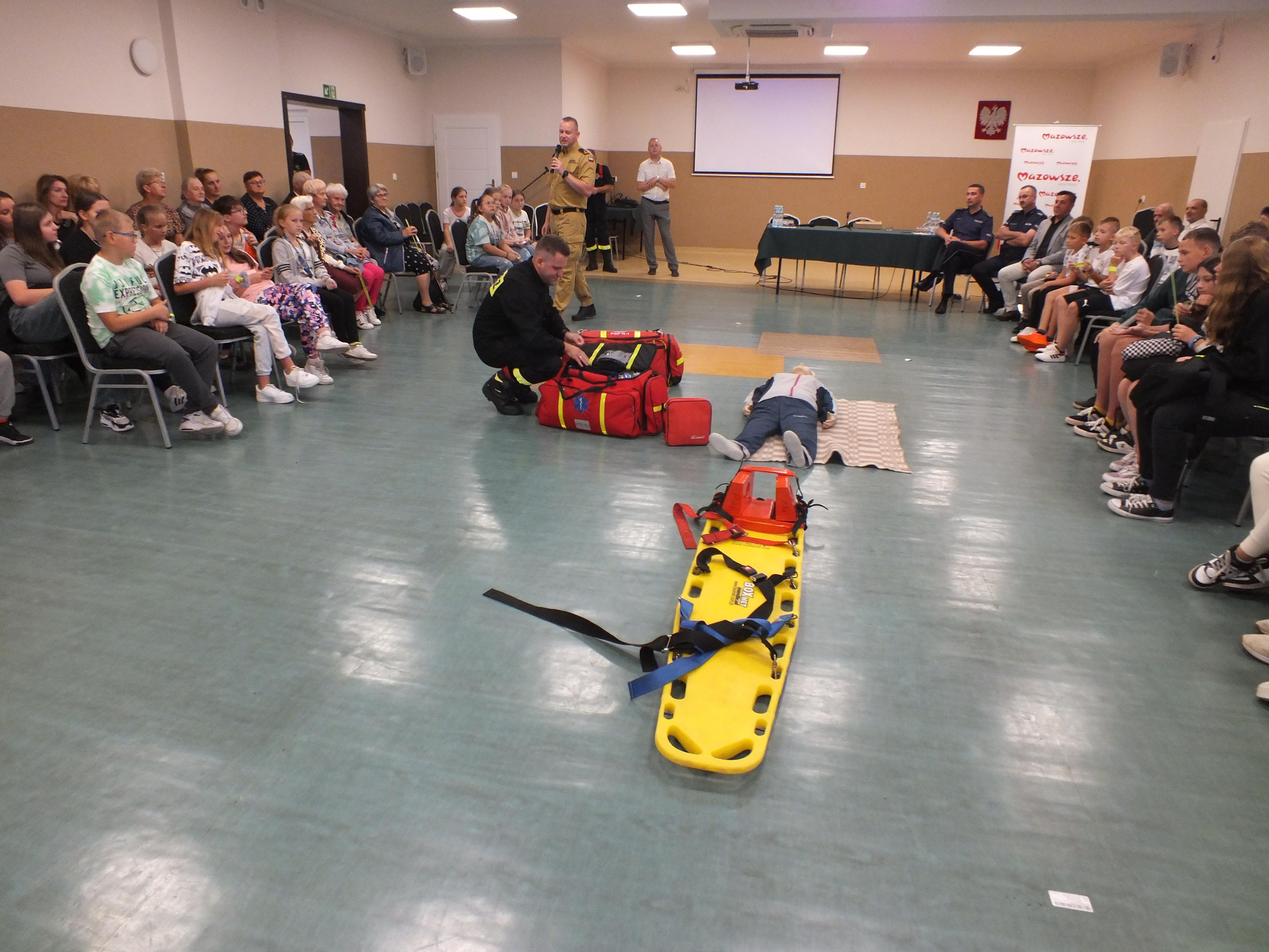 W dniu 12.09.2024 r. funkcjonariusze Komendy Miejskiej Państwowej Straży Pożarnej w Siedlcach wzięli udział w wydarzeniu pt. "Bądź bezpieczny w sieci i na drodze", którego organizatorem był Gminny Ośrodek Kultury w Przesmykach. Realizując tematykę akcji strażacy z komendy miejskiej wykonali pokaz udzielania kwalifikowanej pierwszej pomocy, zapoznali uczestników z zasadami prawidłowego zgłoszenia zdarzeń na numer alarmowy oraz specyfiką i charakterem służby strażaka. Wydarzenie cieszyło się bardzo dużym zainteresowaniem. W spotkaniu wzięło udział ponad 100 osób w tym blisko 75 dzieci ze Szkół Podstawowych z terenu gminy Przesmyki. Za zaproszenie i możliwość przekazania wiedzy najmłodszym serdecznie dziękujemy organizatorom.