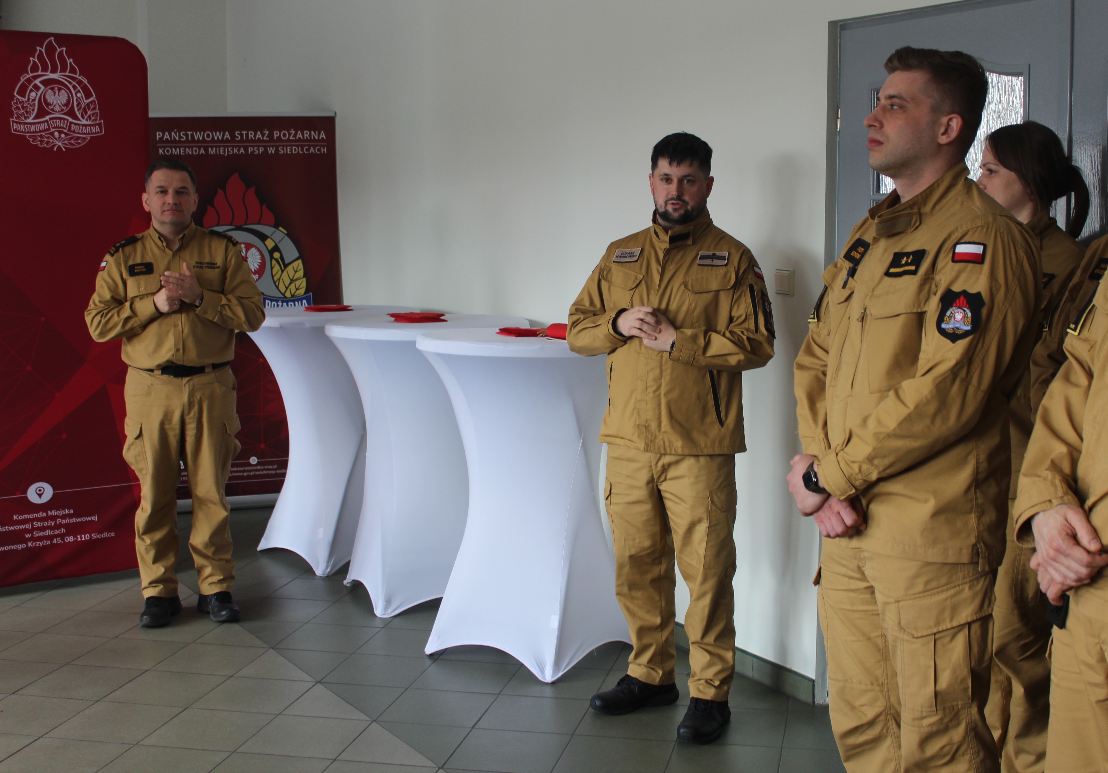 Komendant Miejski - st. bryg. Waldemar Rostek wraz ze swoim Zastępcą - bryg. Pawłem Kulickim powitali wszystkich obecnych, składając życzenia funkcjonariuszom i pracownikom cywilnym oraz podkreślając znaczenie strażackiej służby dla bezpieczeństwa obywateli.
