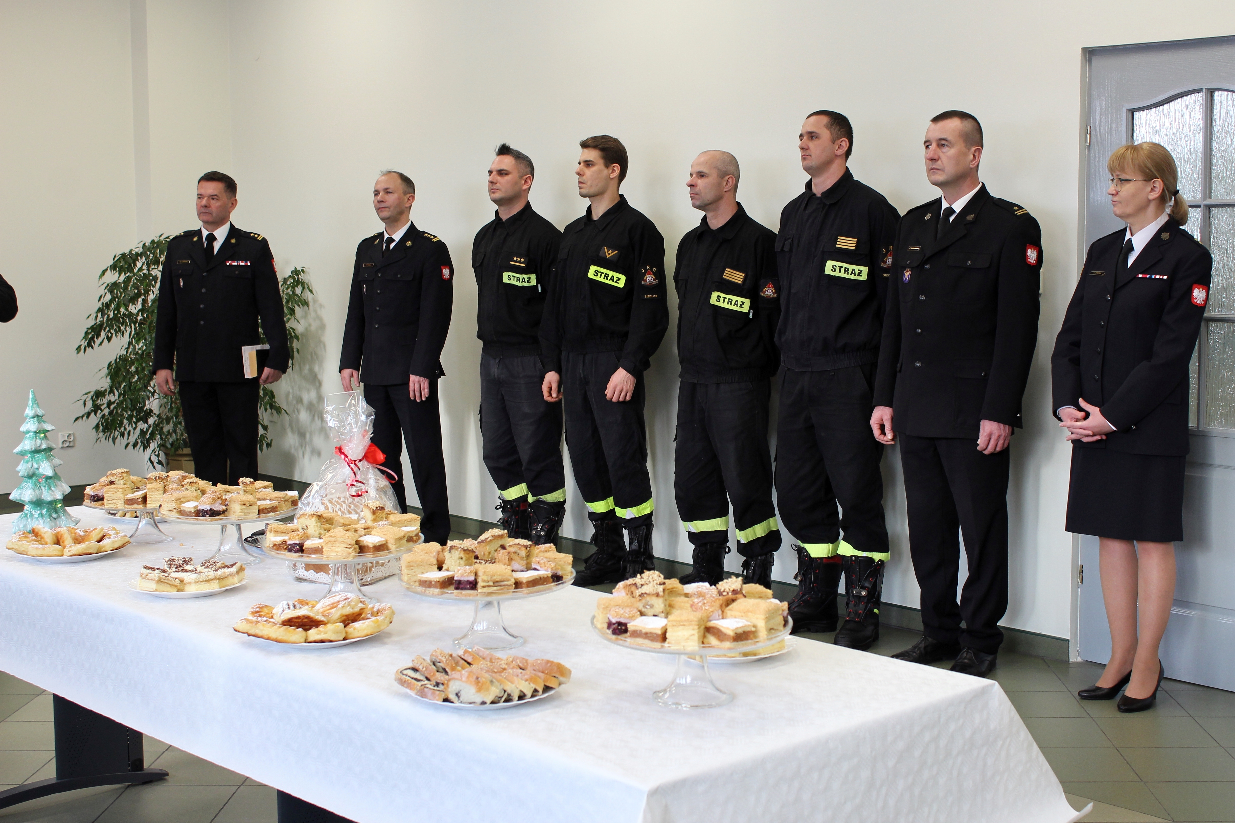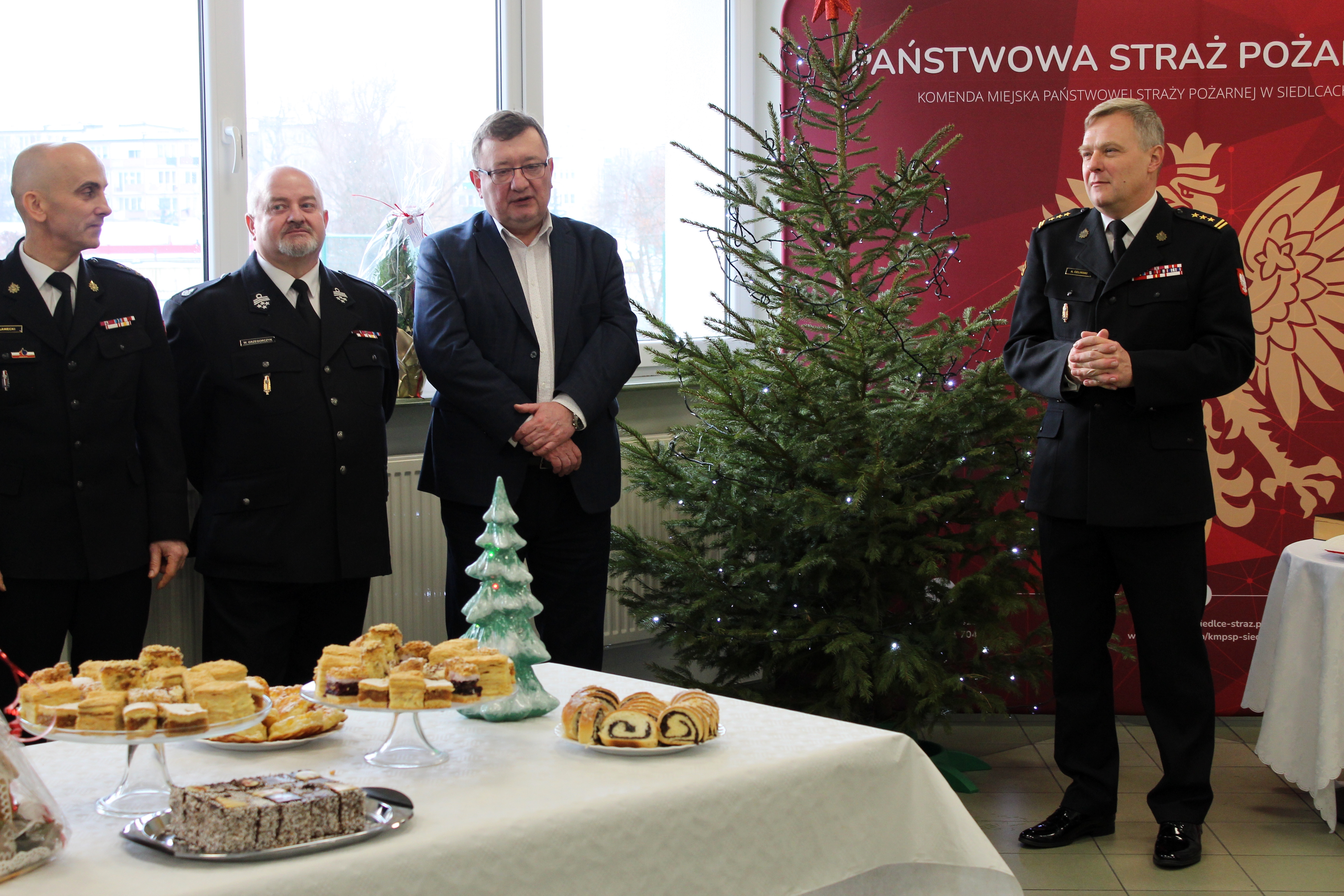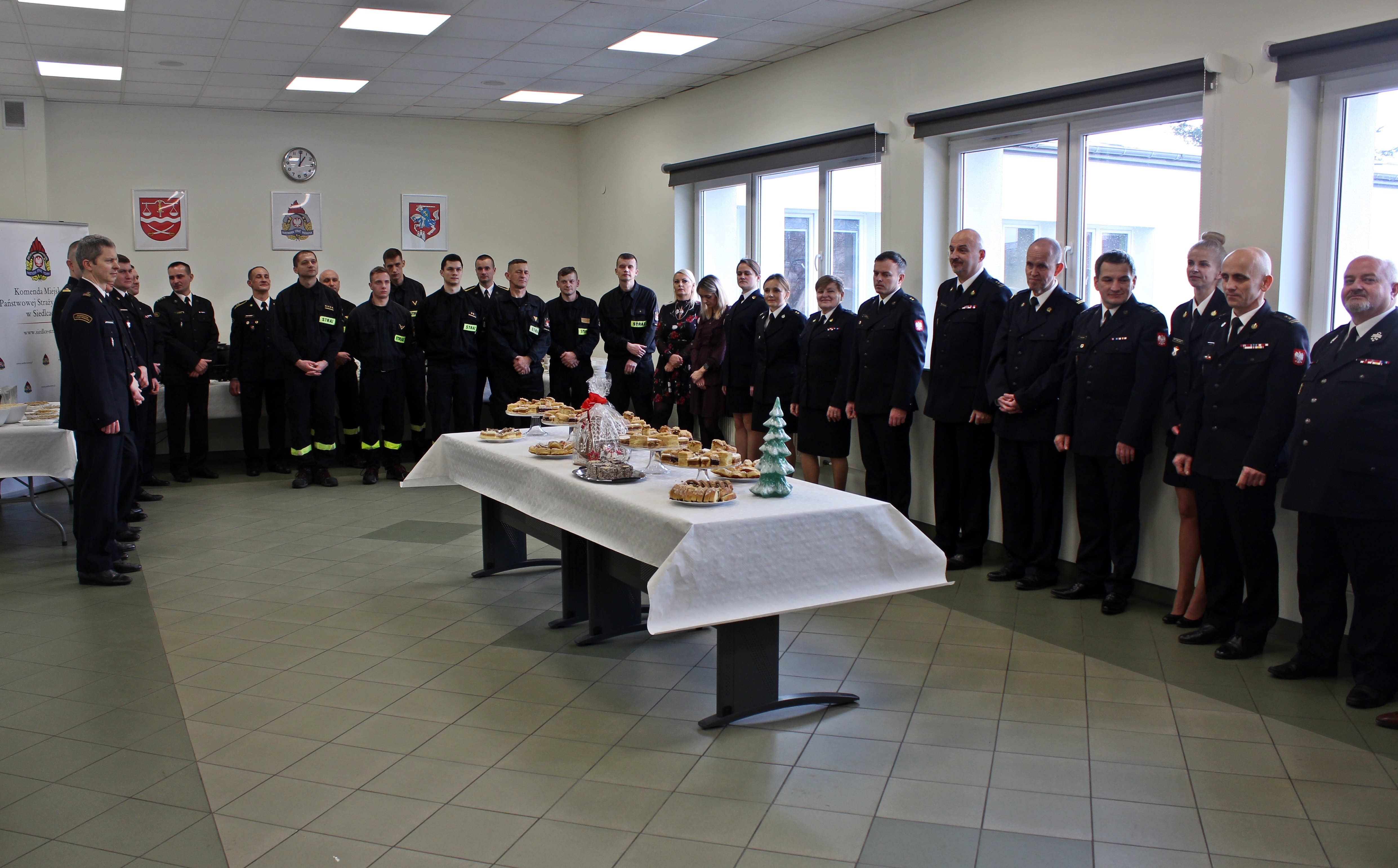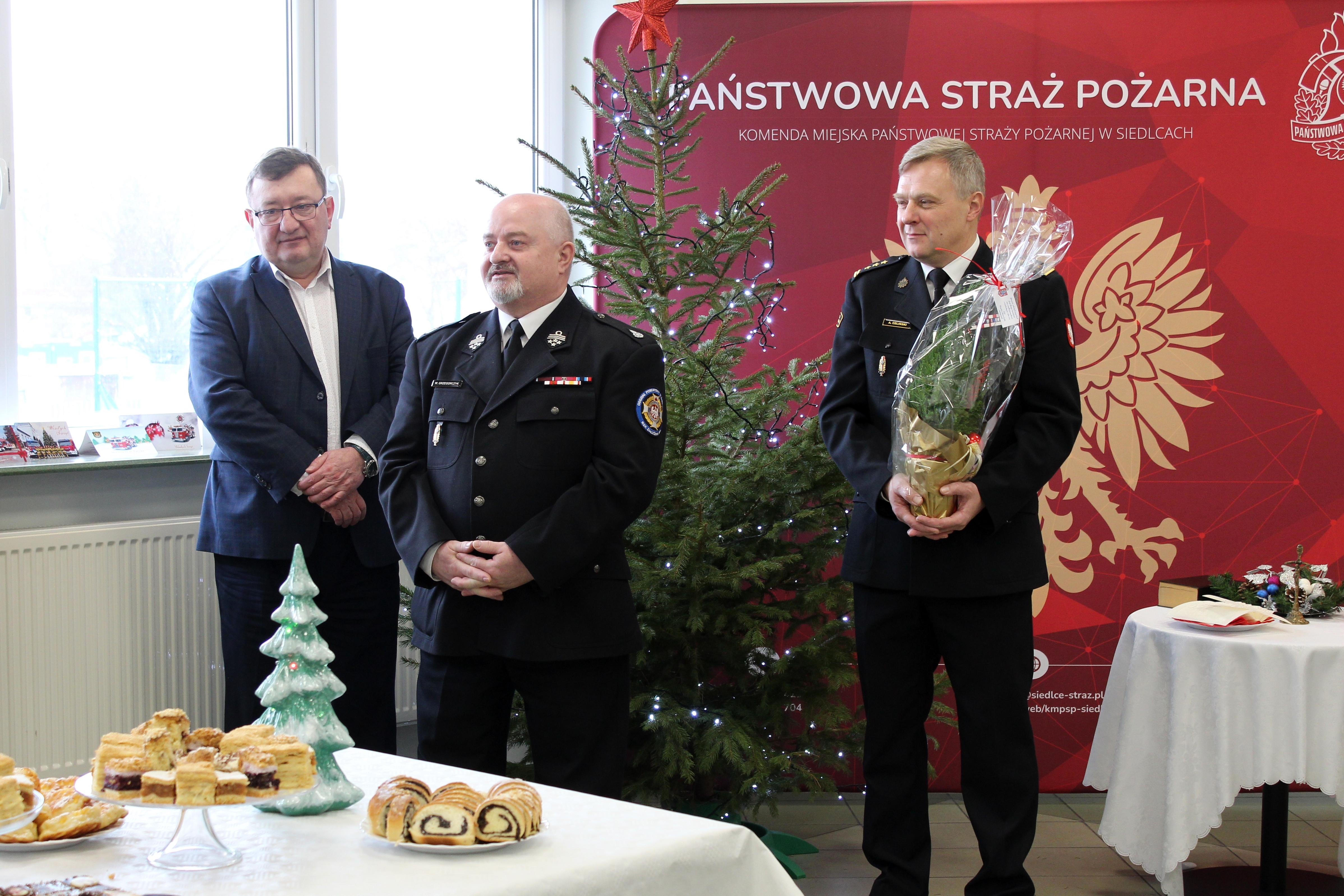 Na spotkanie przybyli Pan Robert Szczepanik – Wiceprezydent Miasta Siedlce, druh Wojciech Grzegorczyk – Prezes Zarządu Oddziału Powiatowego Związku OSP RP w Siedlcach, bryg. w st. spocz. Alina Piekart – Prezes Zarządu Koła Emerytów i Rencistów Pożarnictwa przy KM PSP Siedlce oraz strażacy i pracownicy cywilni komendy.