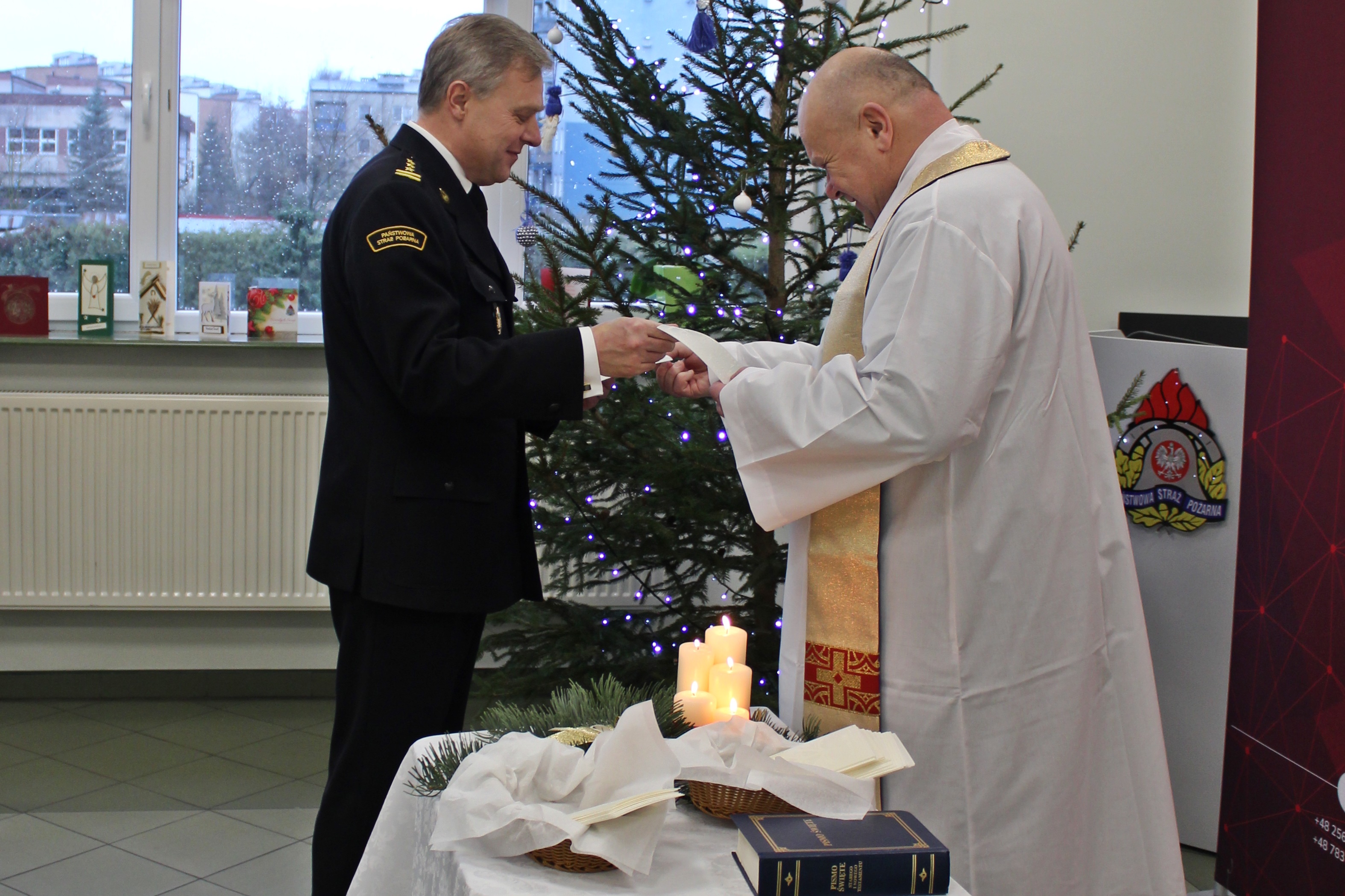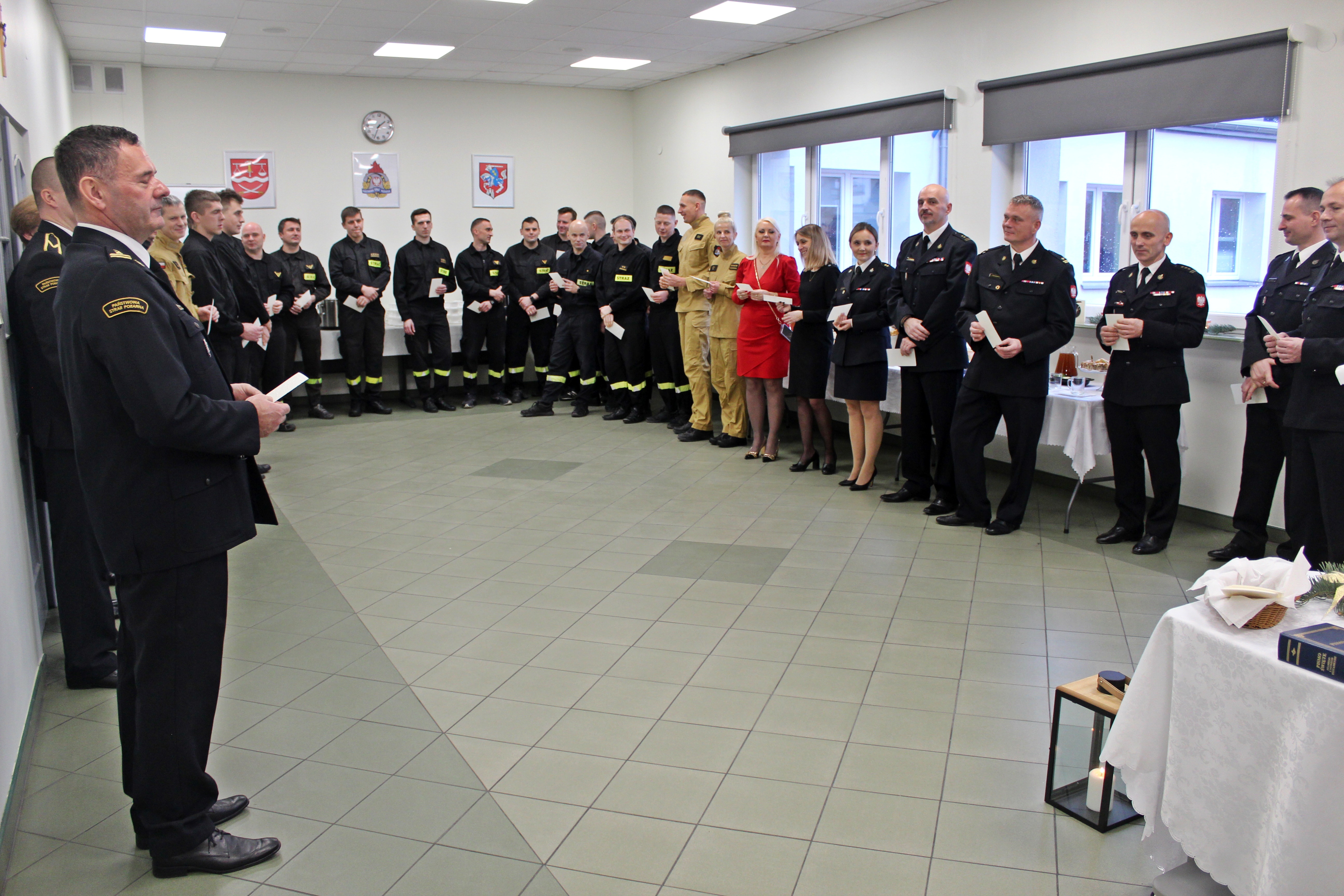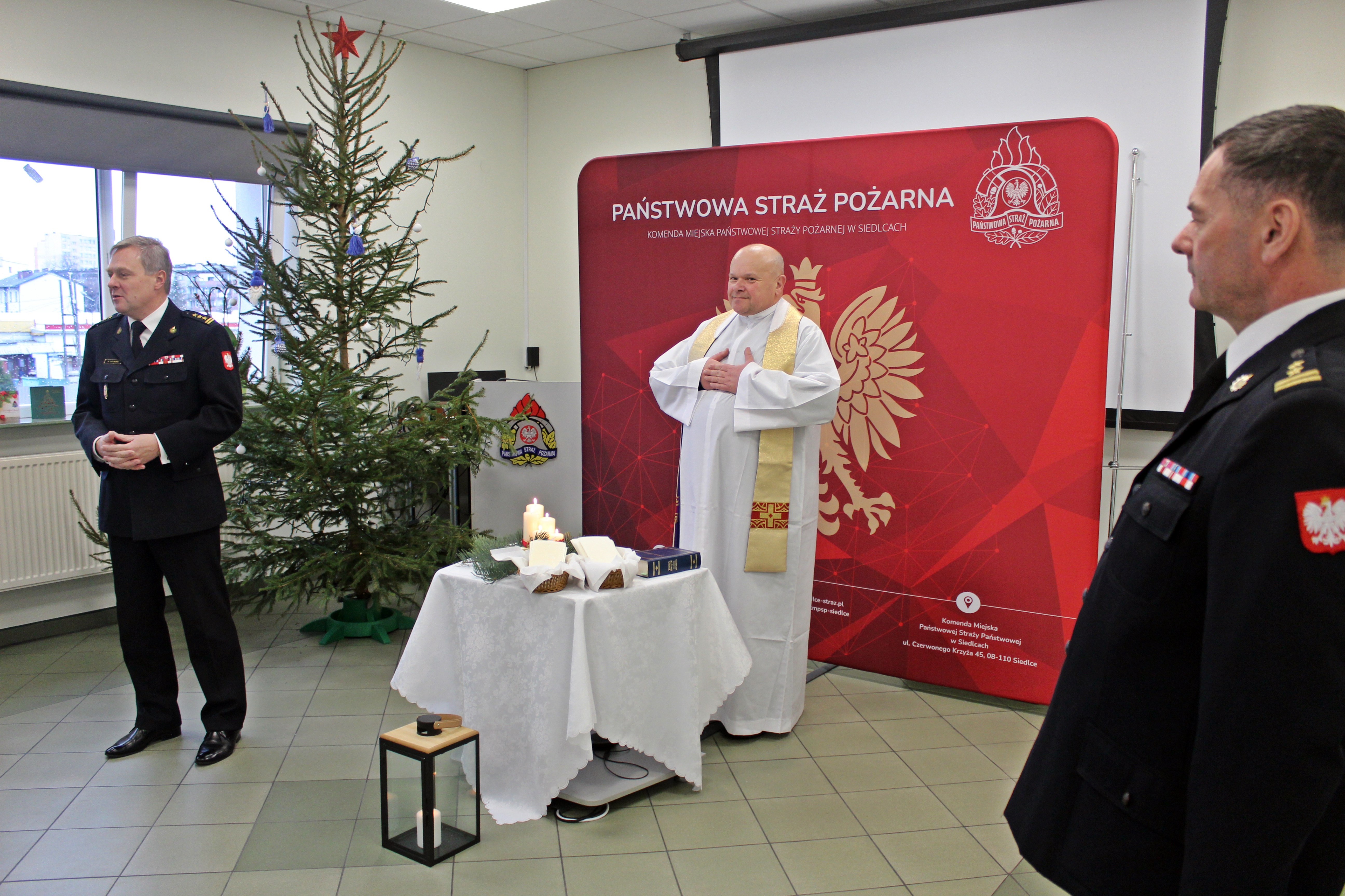 21 grudnia 2023 roku w Komendzie Miejskiej Państwowej Straży Pożarnej w Siedlcach odbyło się spotkanie opłatkowe, które było okazją do wspólnego przeżywania wyjątkowego nastroju Świąt Bożego Narodzenia, a spotkaniu towarzyszyła radosna i życzliwa atmosfera.