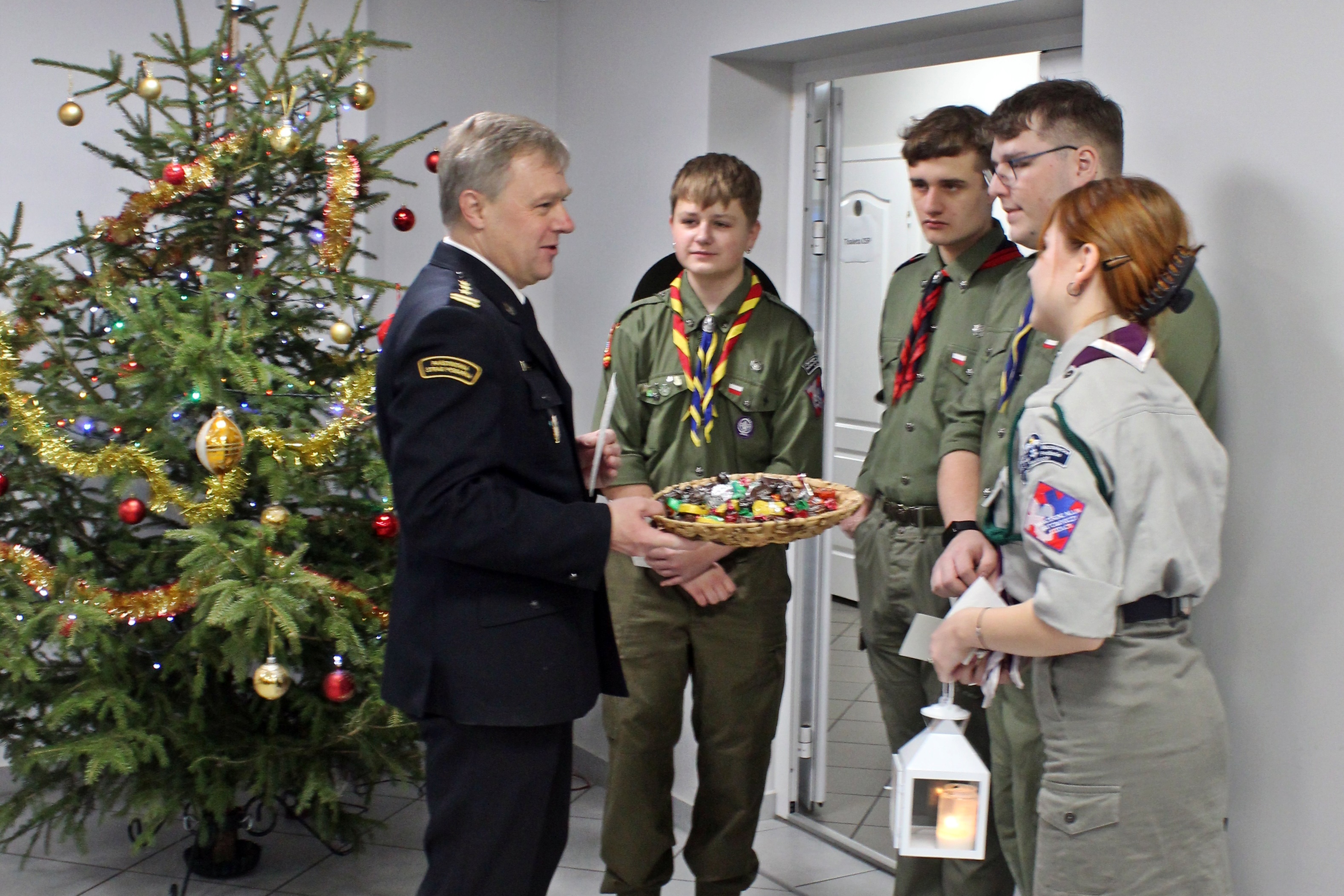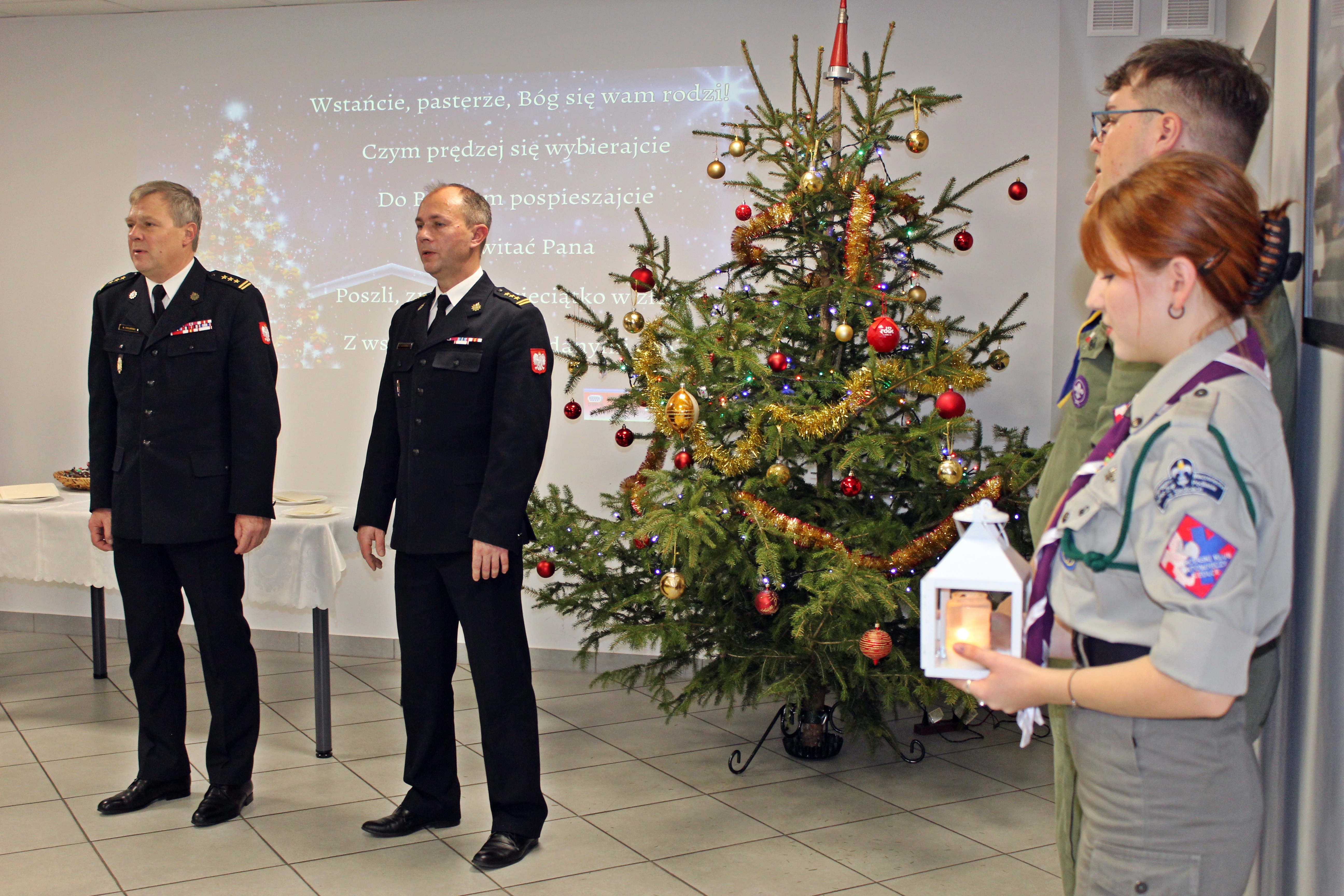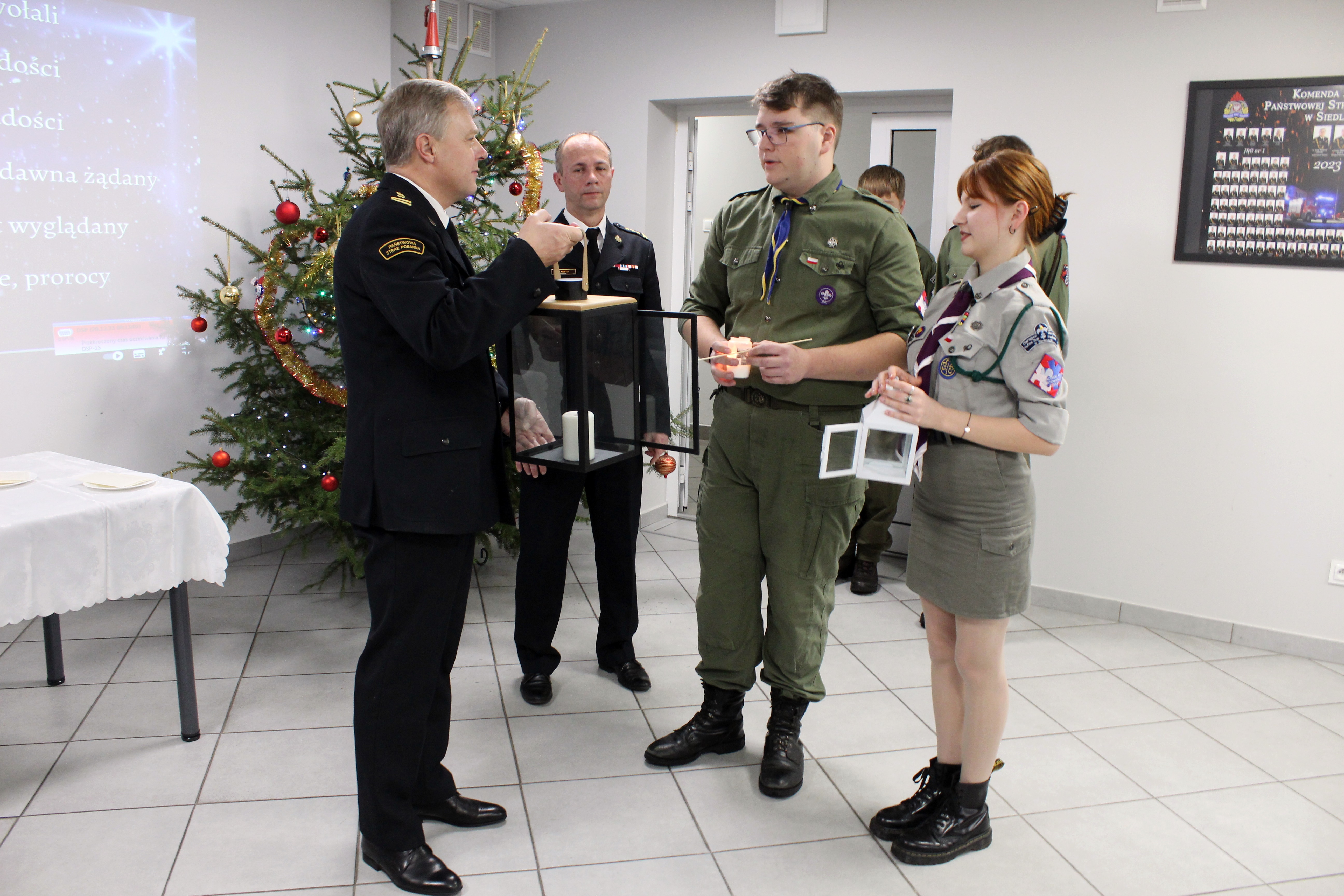 Uroczystość uświetnili harcerze z Hufca ZHP „Podlasie”, którzy 20 grudnia przynieśli do strażaków Betlejemskie Światło Pokoju – symbol nadziei na pokonanie barier i problemów między ludźmi.